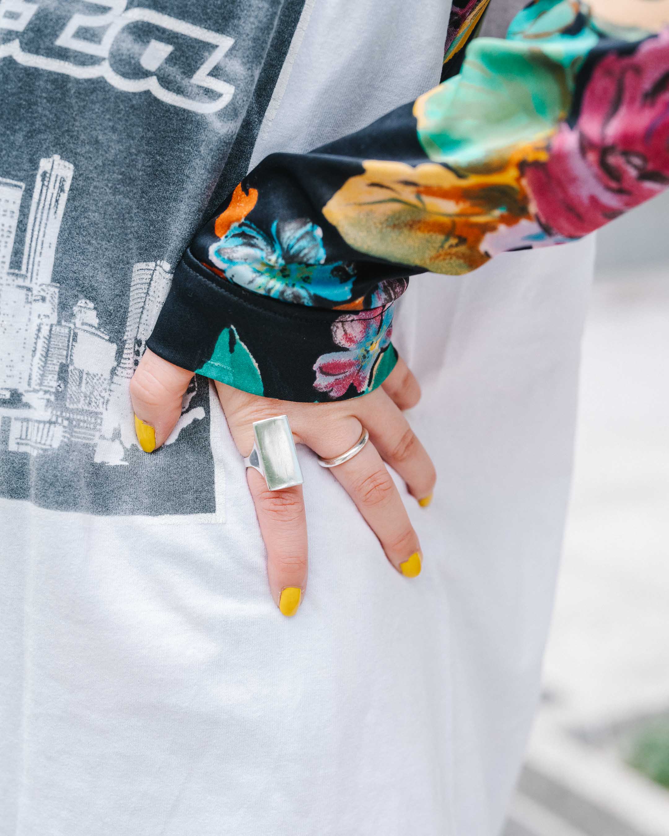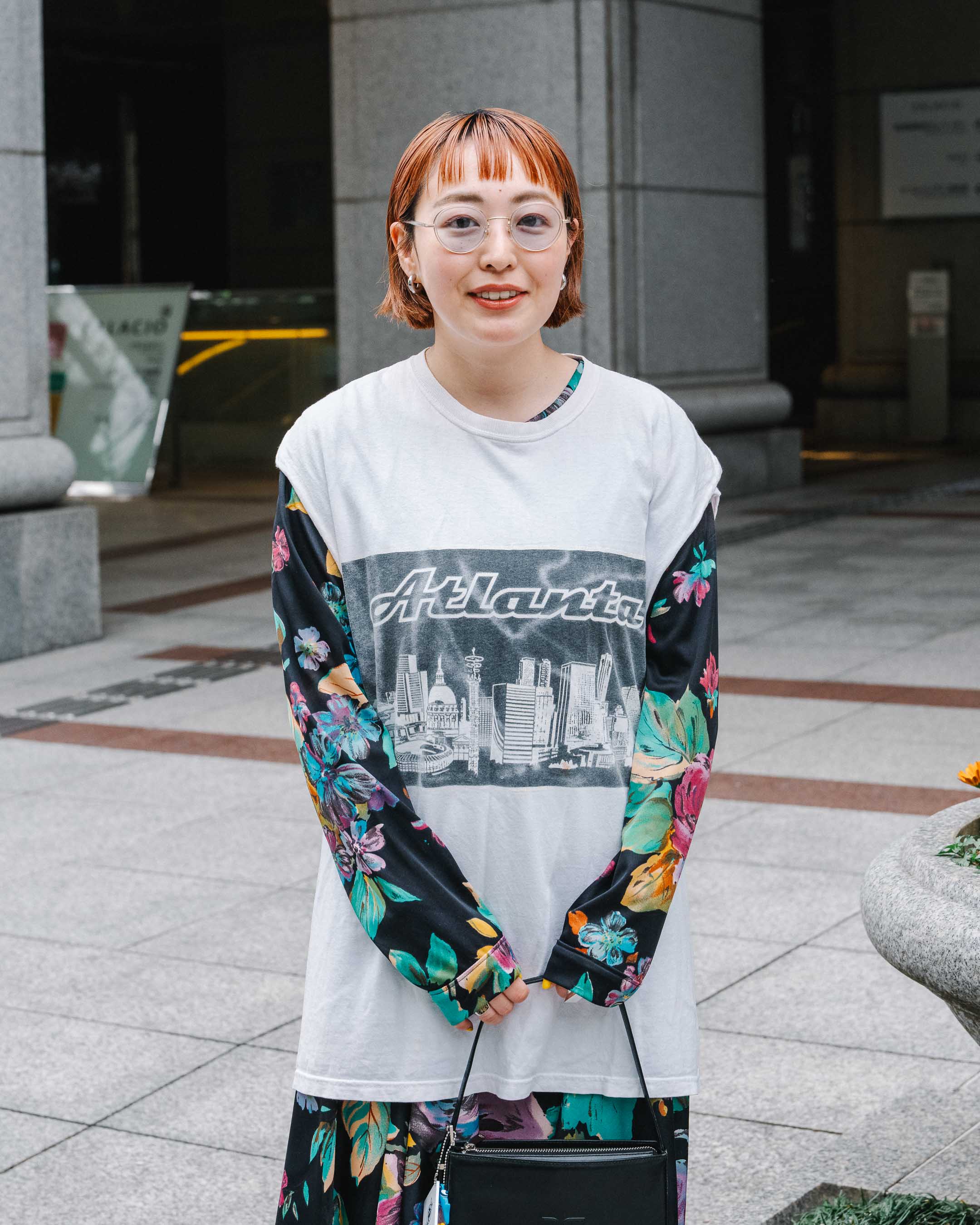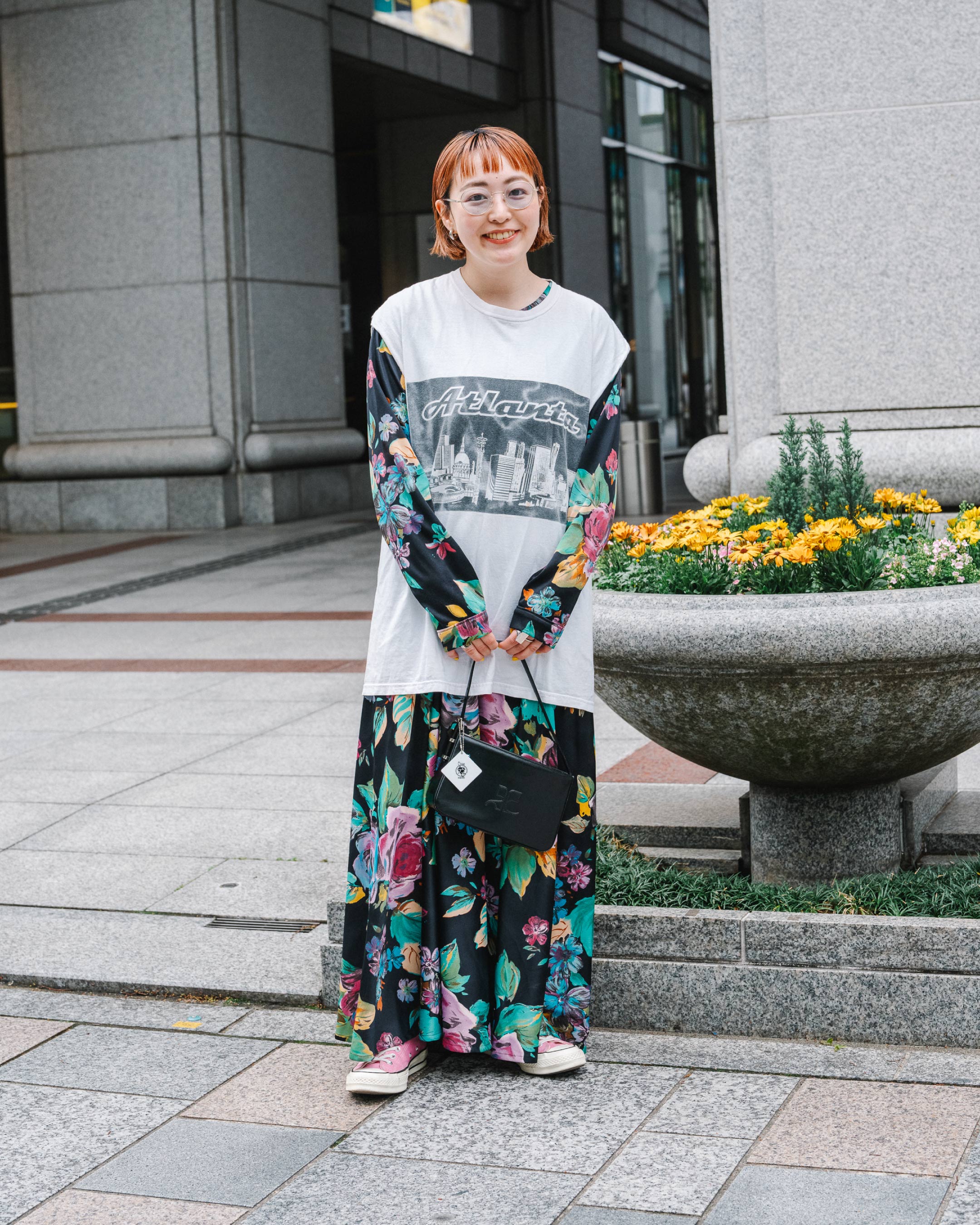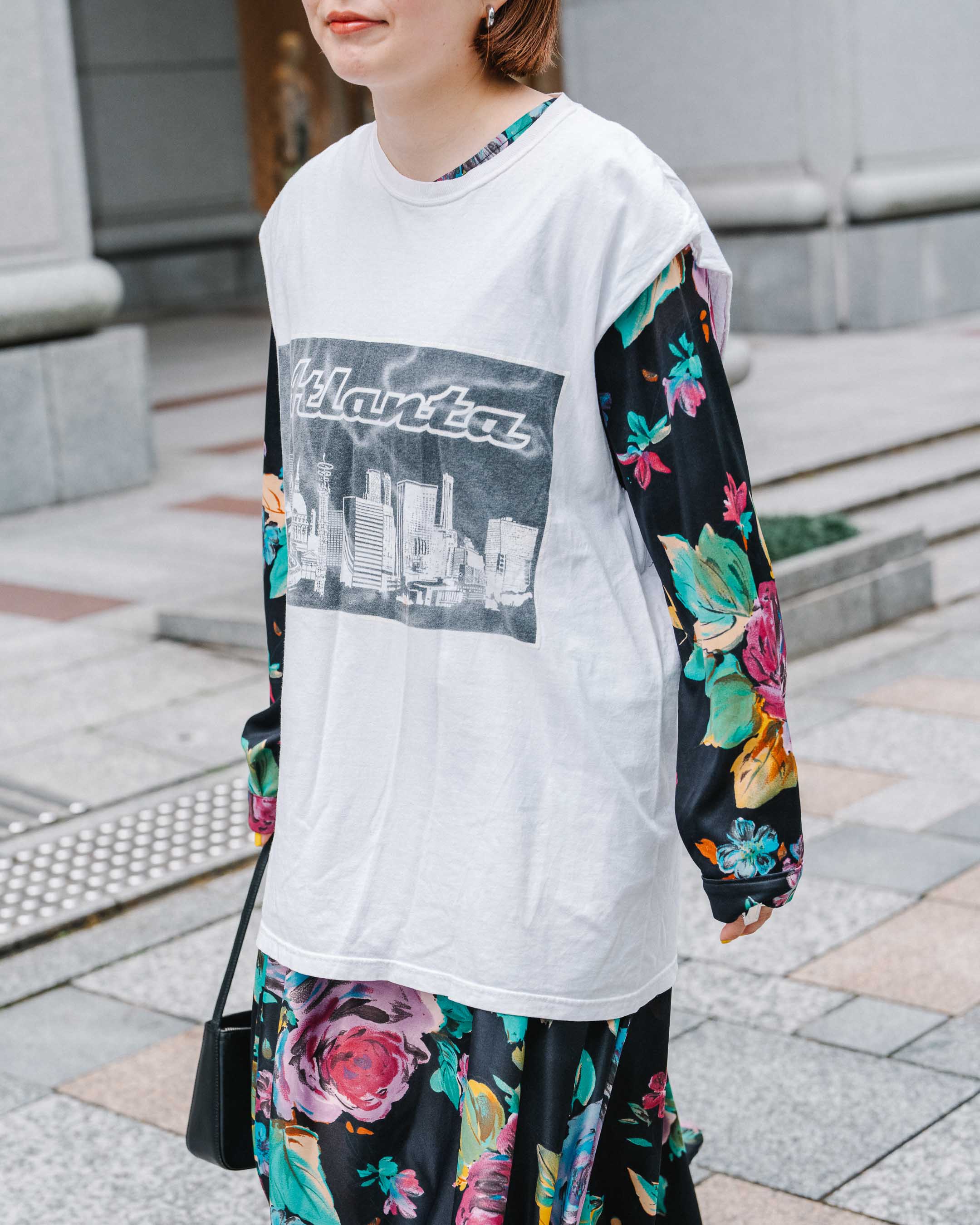 柄ワンピにTシャツをON!カラフル古着mixカジュアルコーデ。