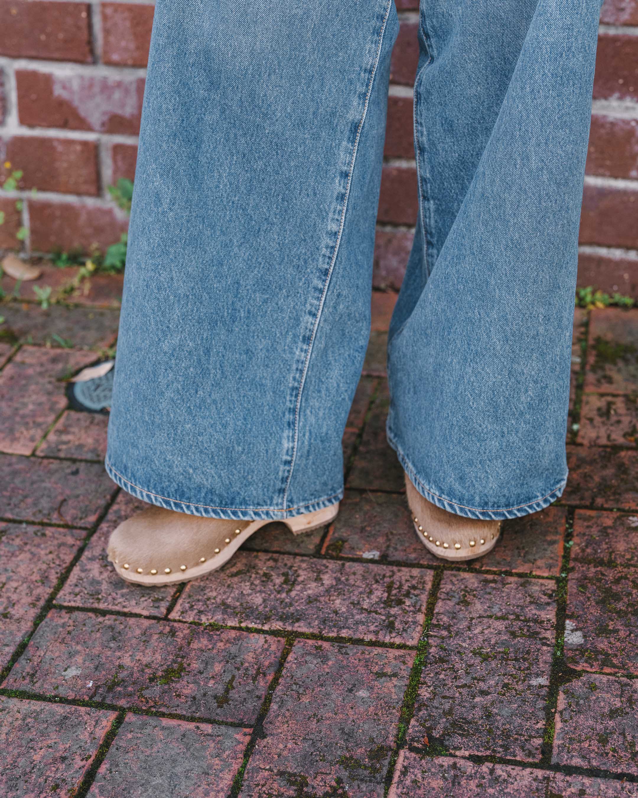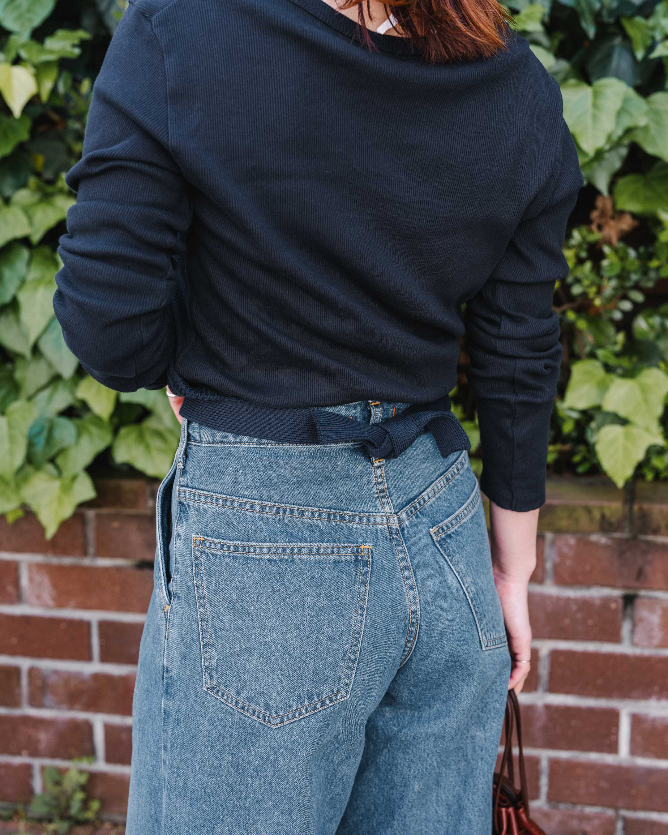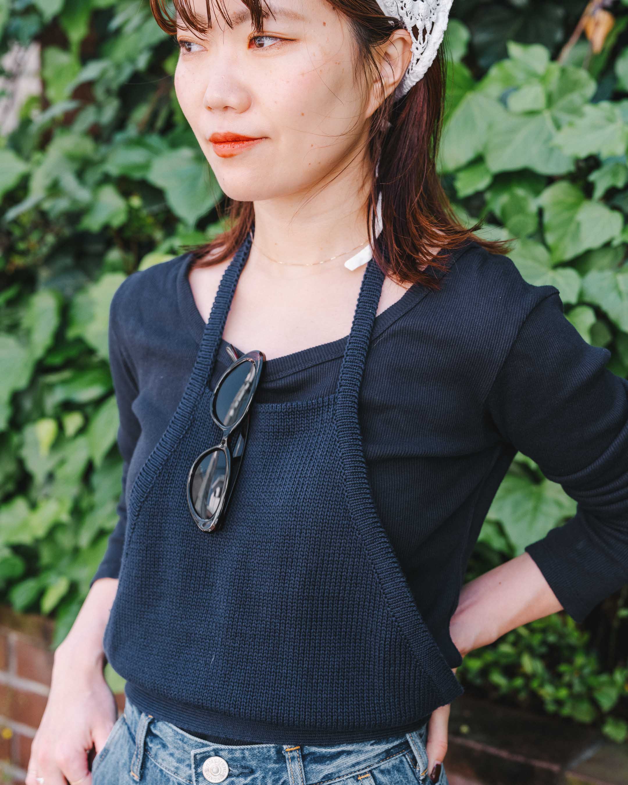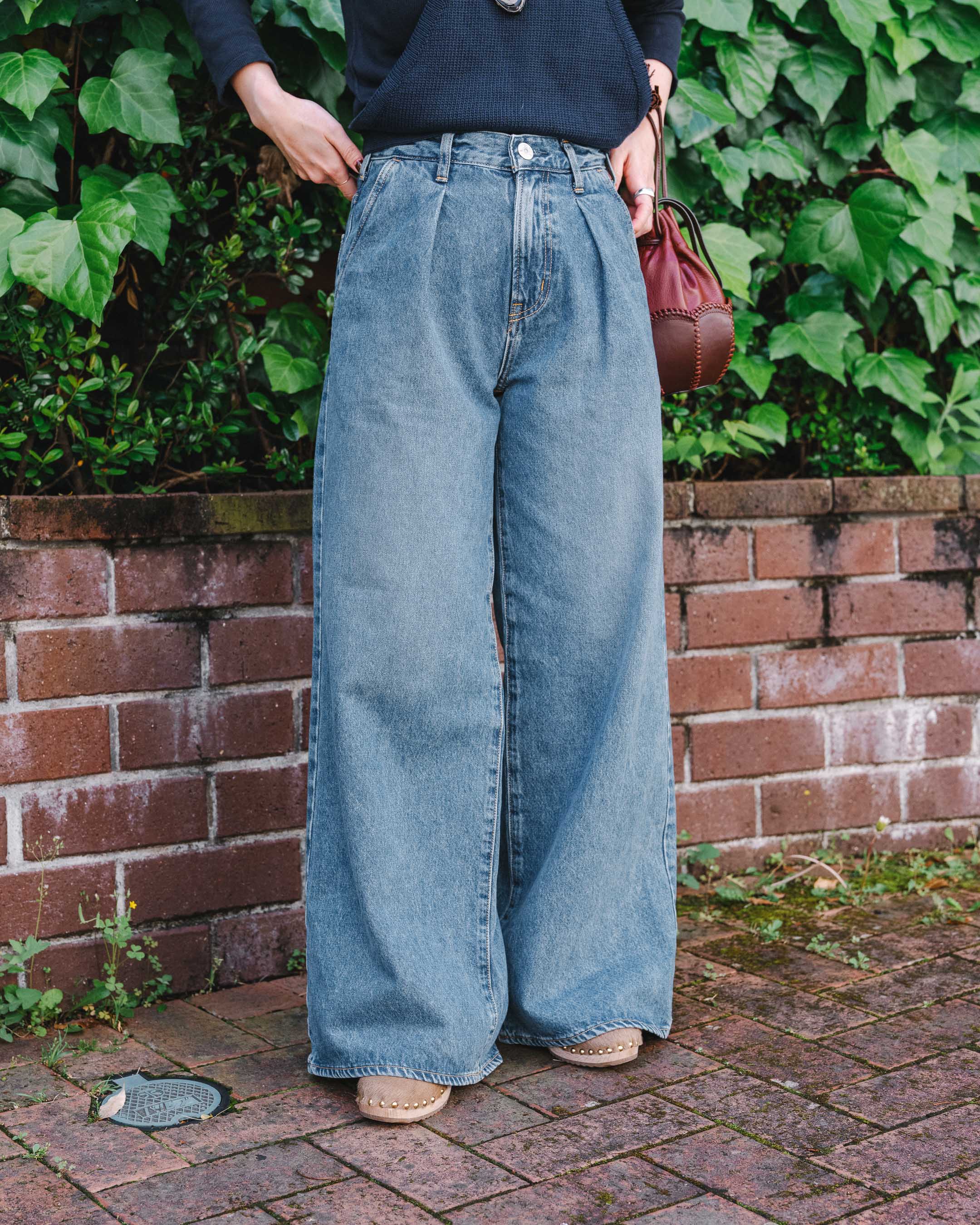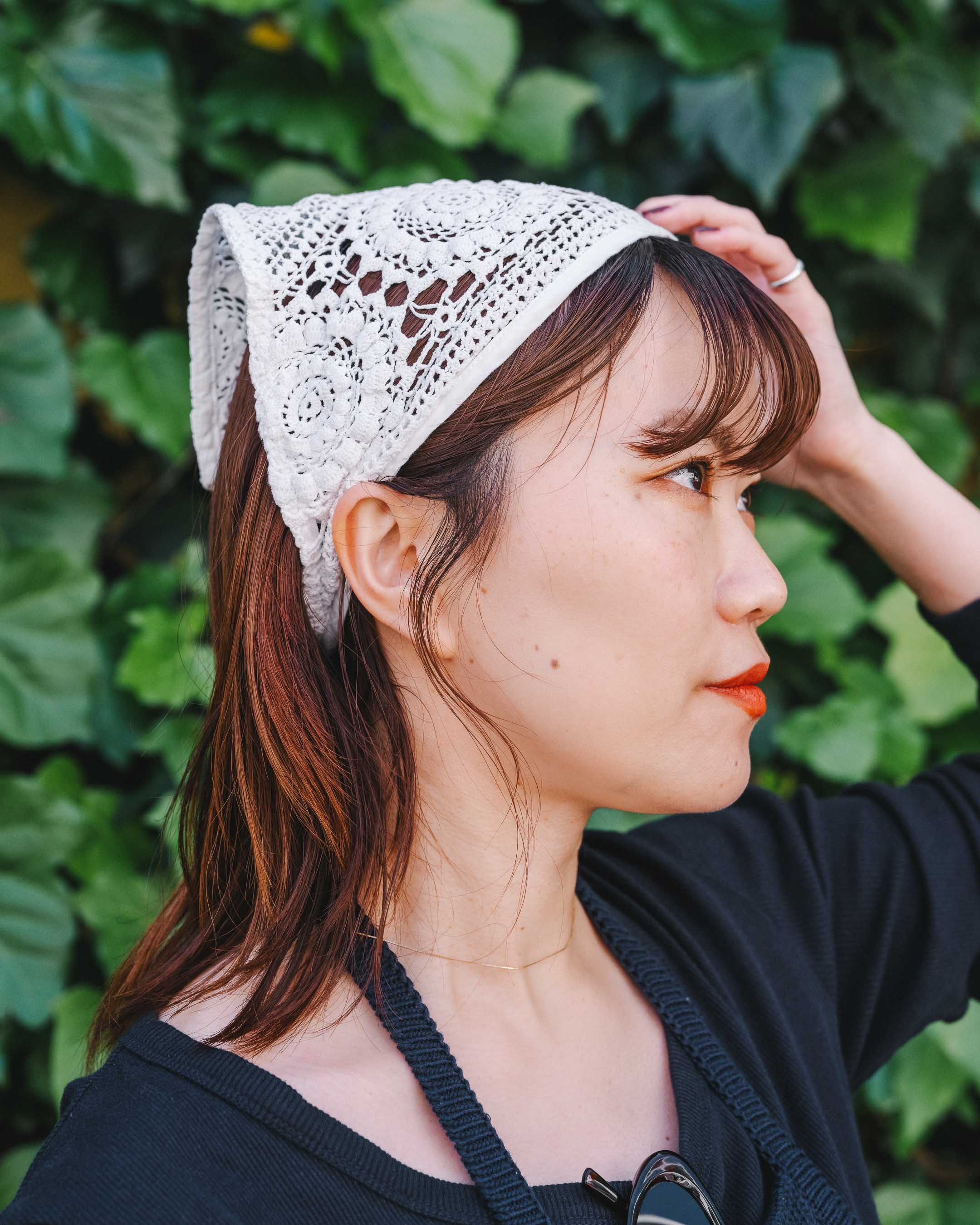 シンプルデニムコーデはバブーシュカを合わせて遊び心をON!