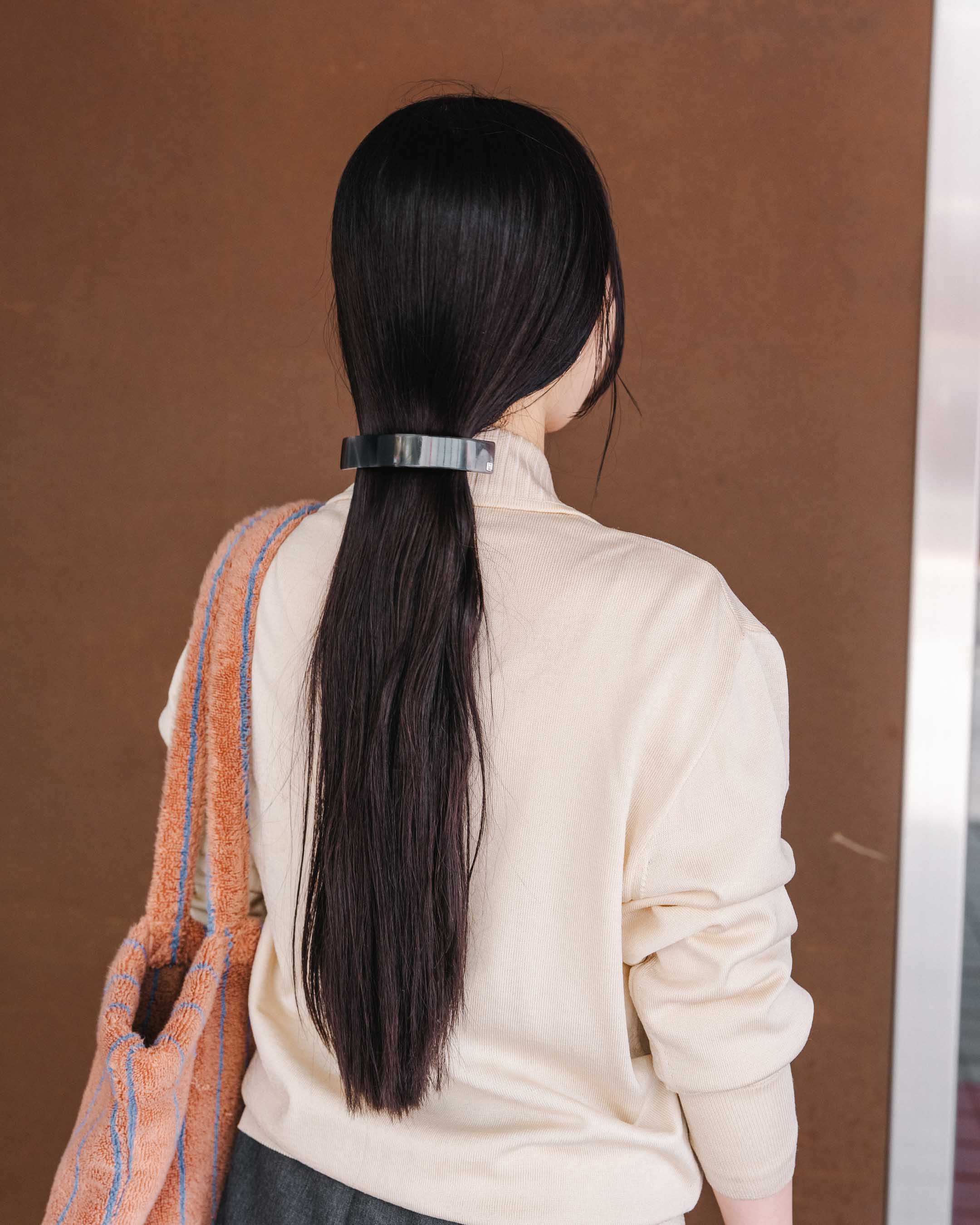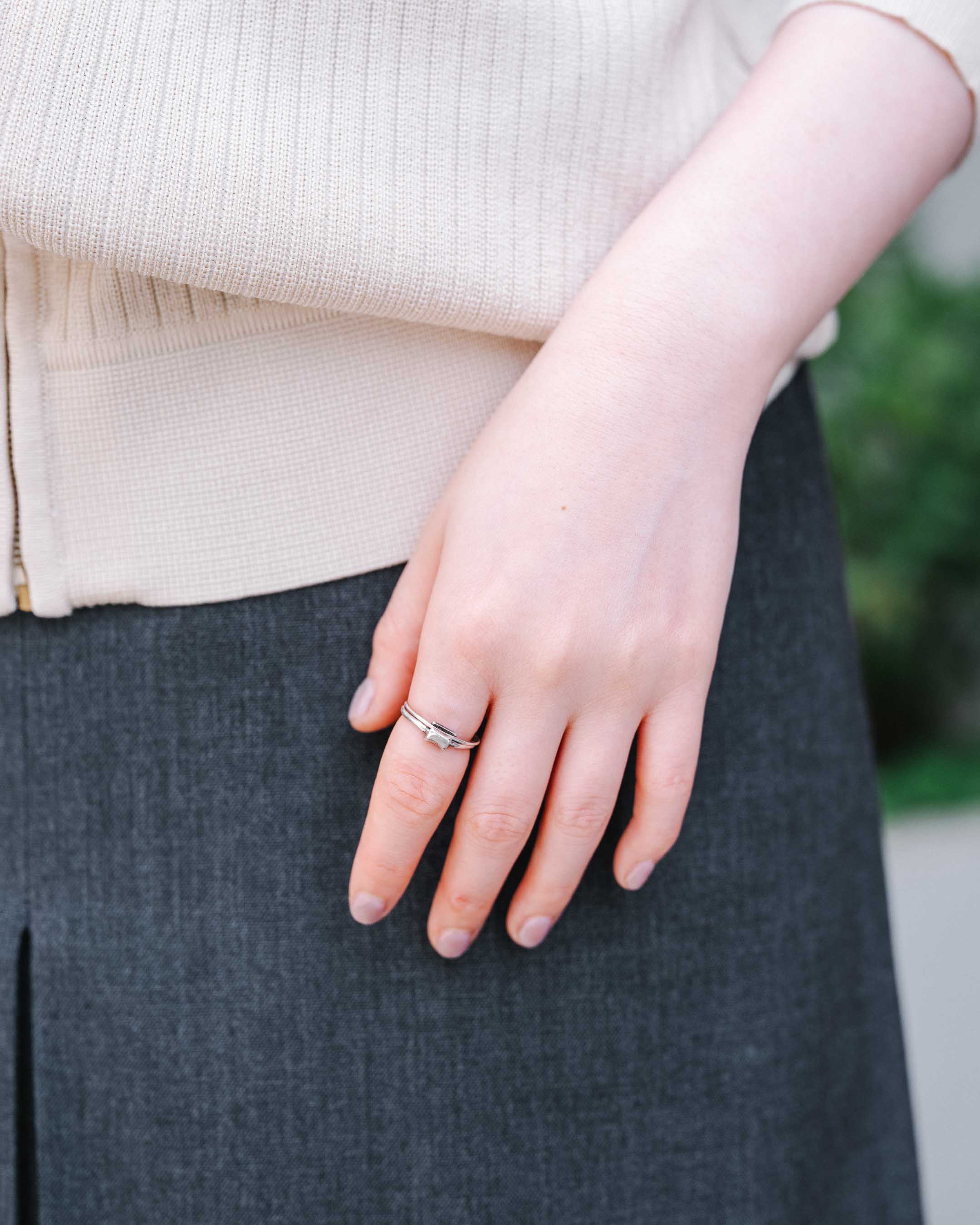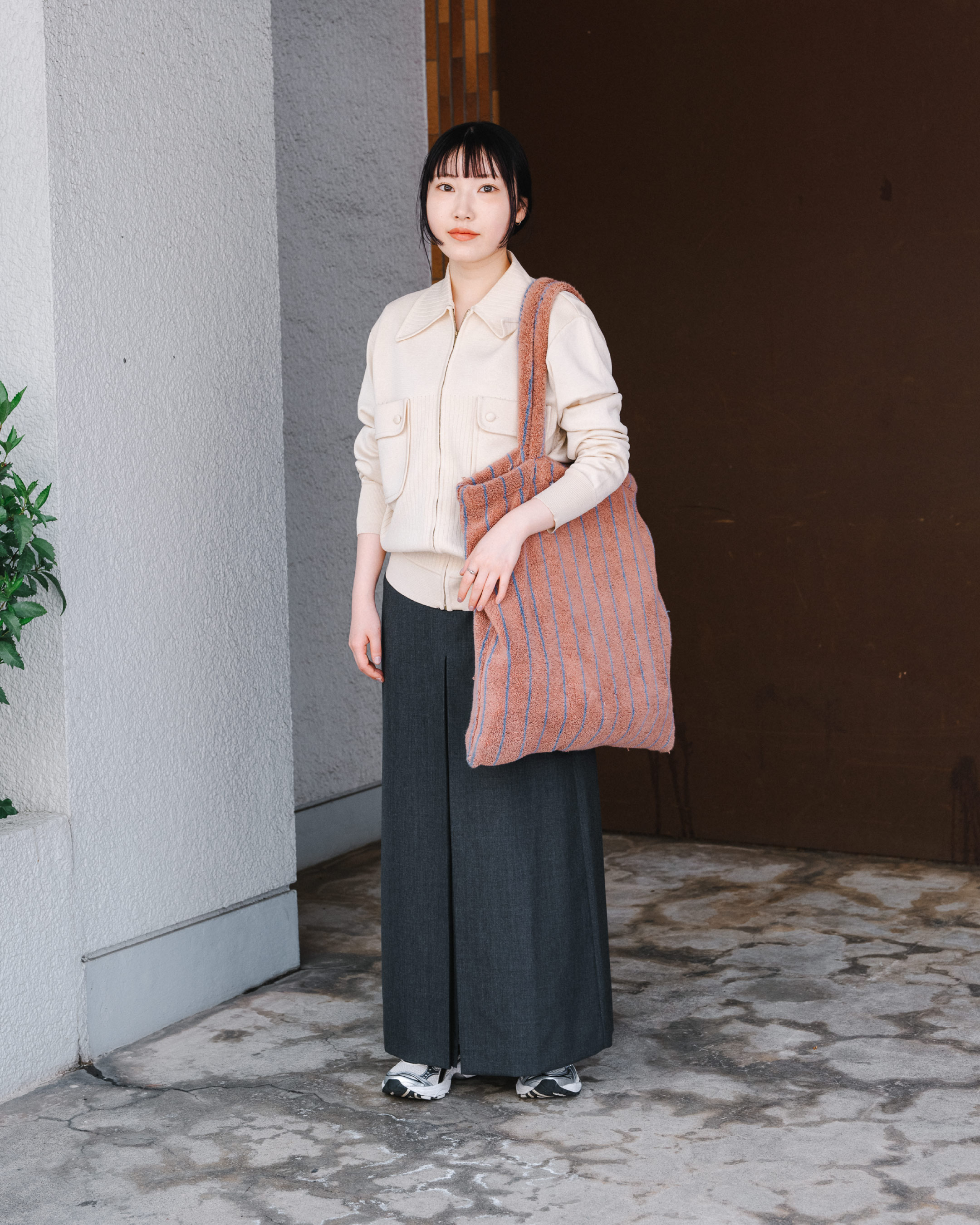 少しバレエコアを取り入れたカジュアルスタイルに仕上げる。