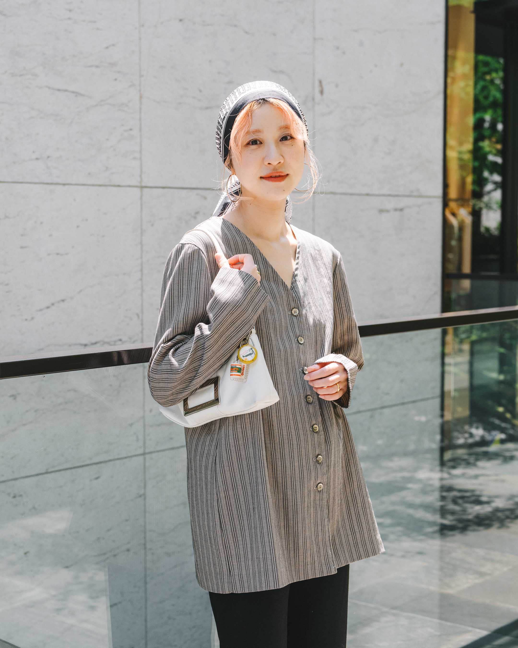 スカーフをポイントにモノトーンで合わせた古着Mixコーデ!