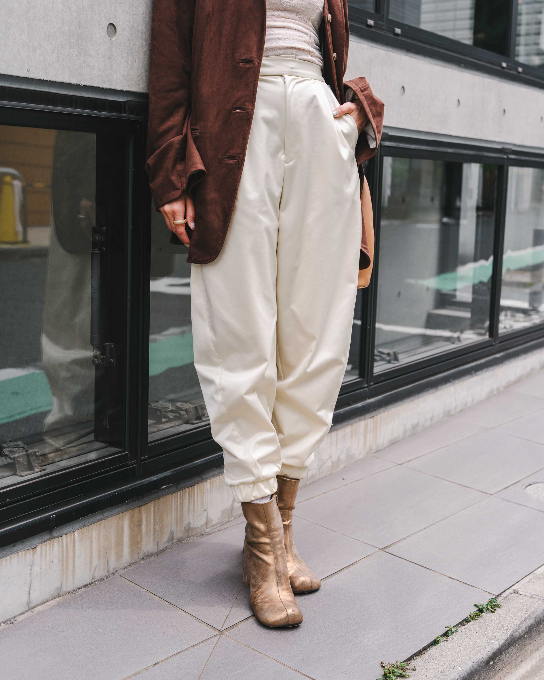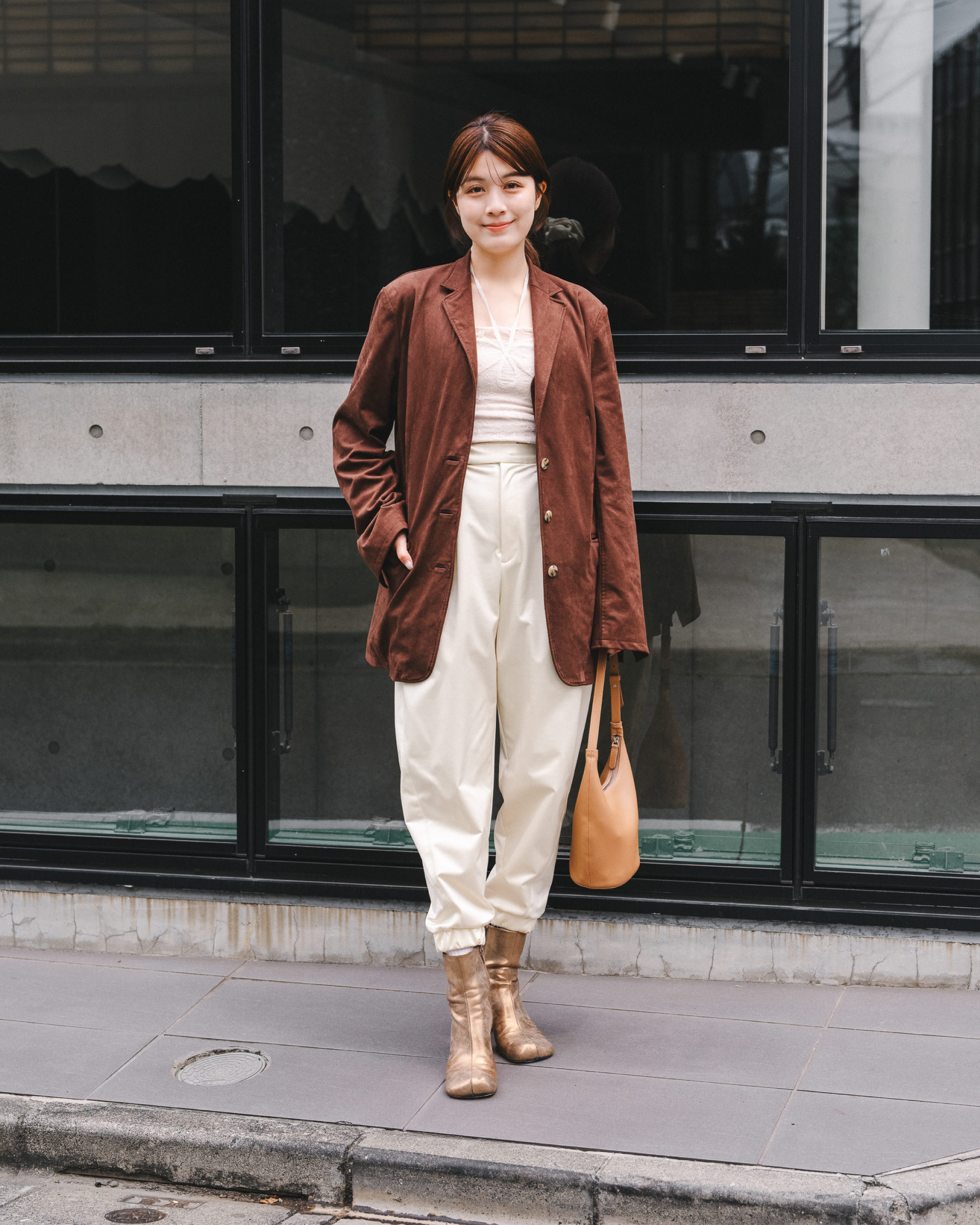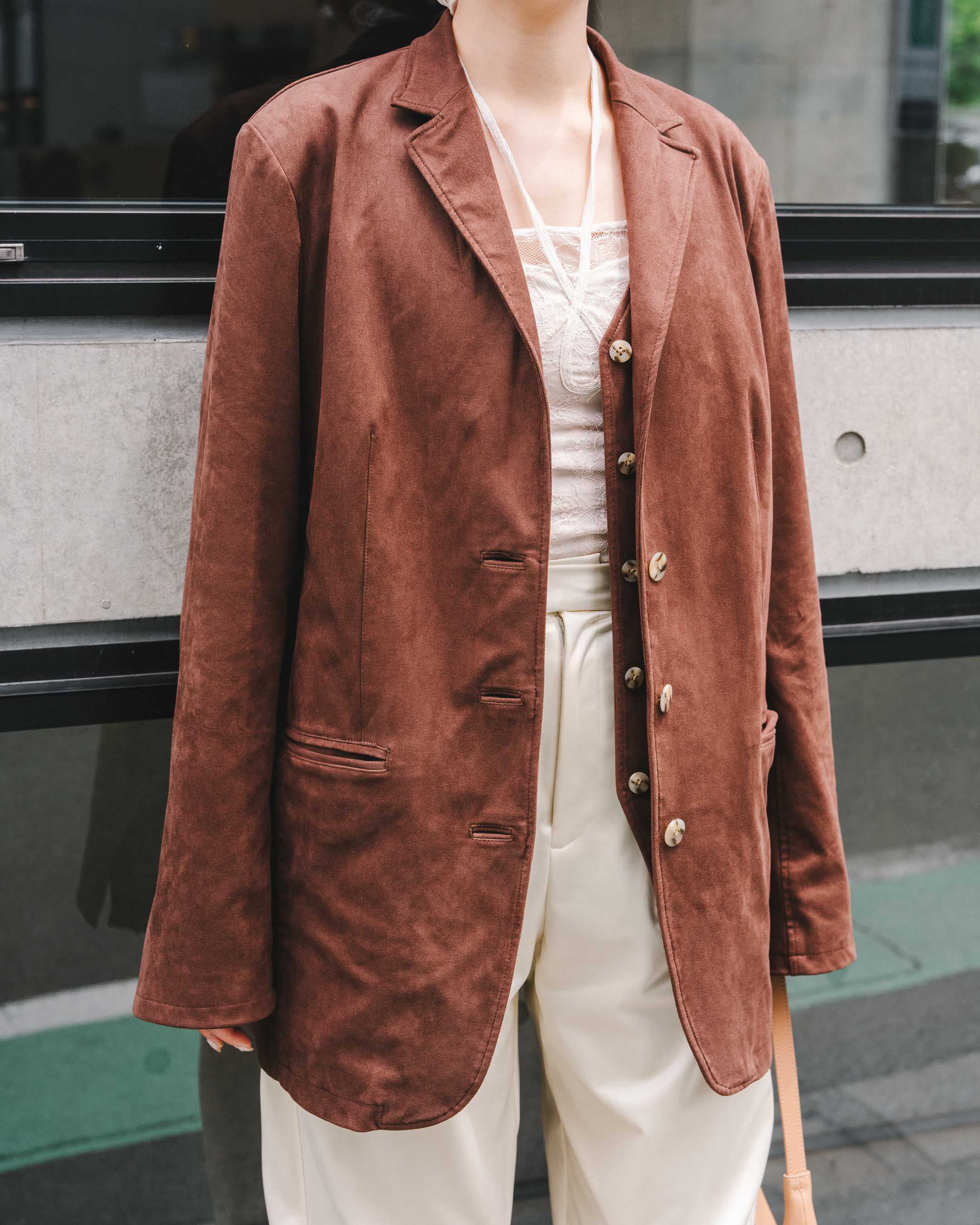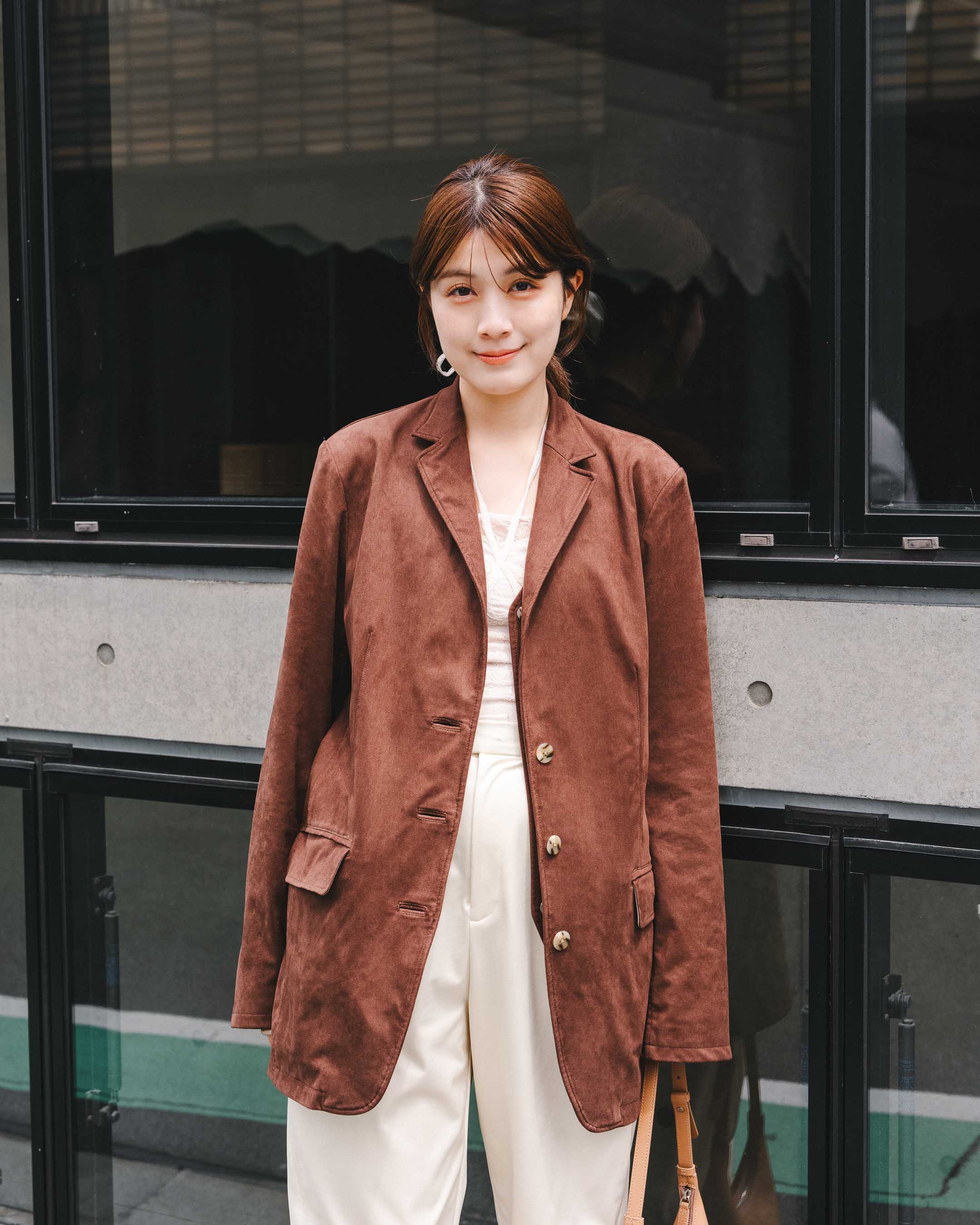 スウェードのジャケットを主役に素材違いのアイテムで遊ぶ。