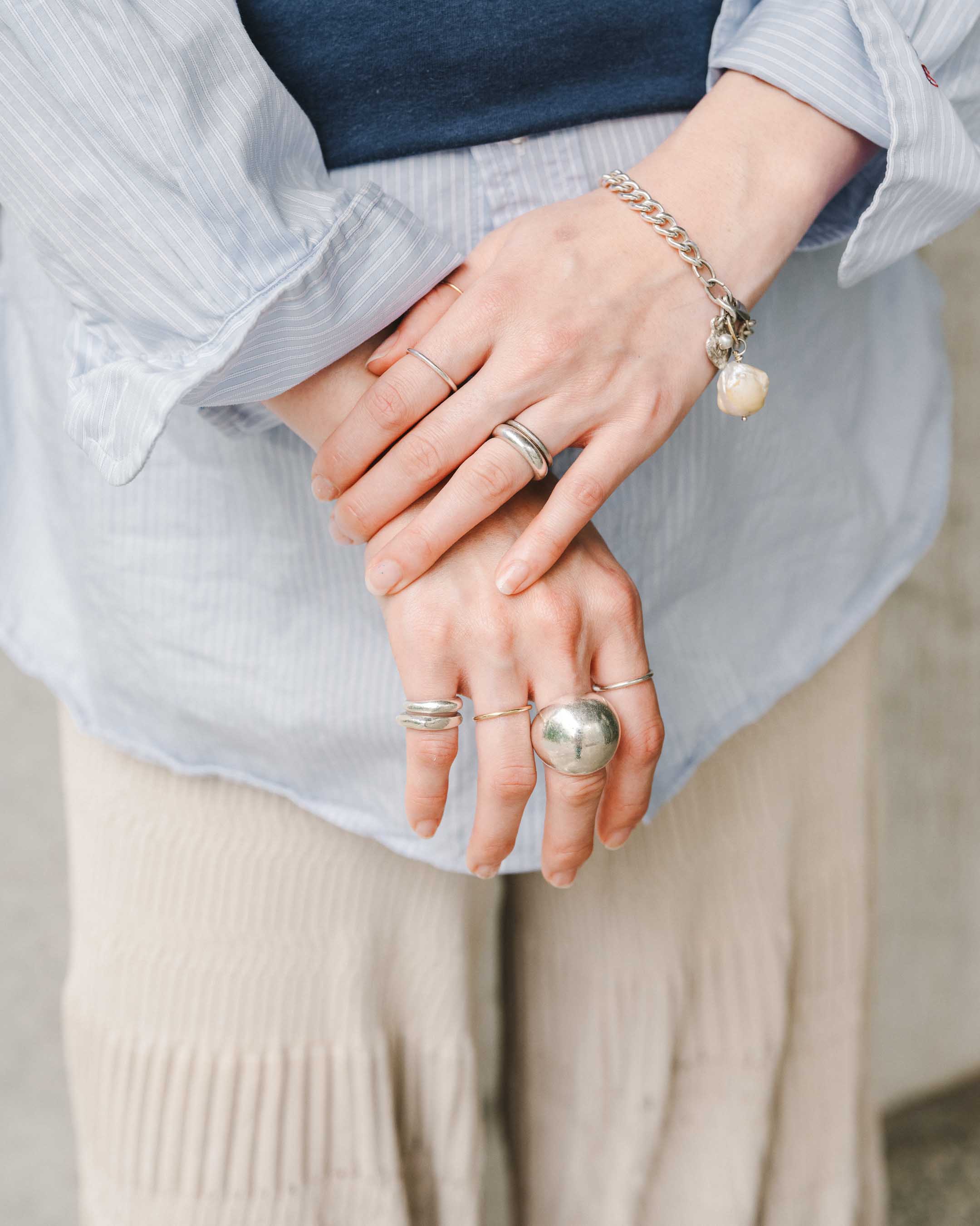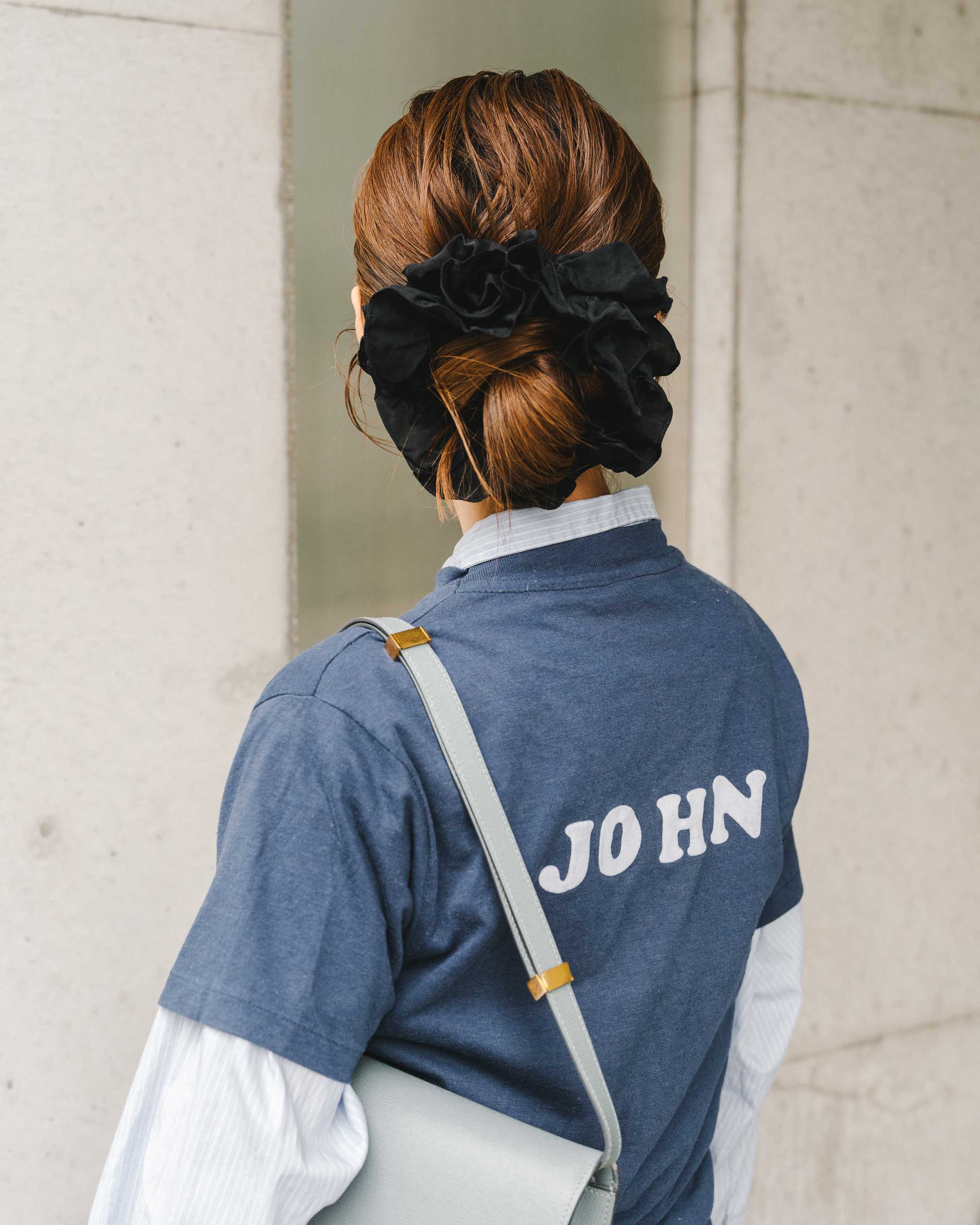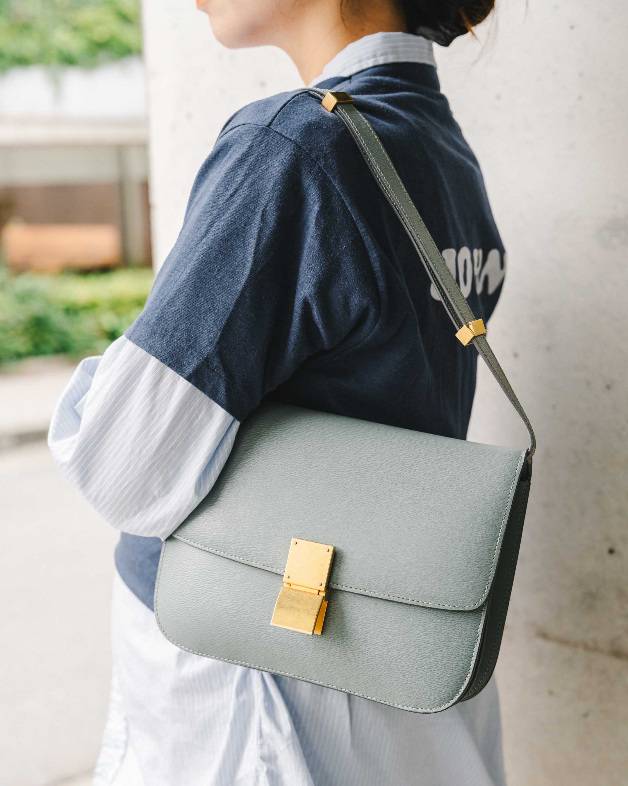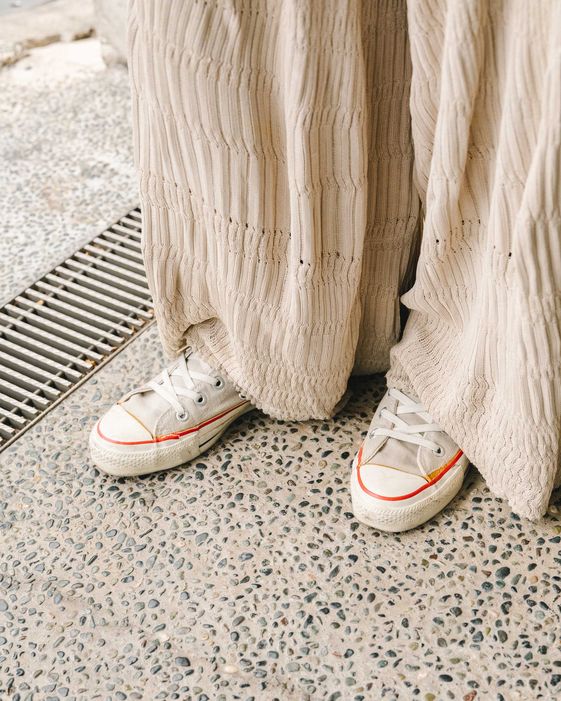 シャツをメインに、淡いトーンで少しリラックス感のあるコーディネートに仕上げる。