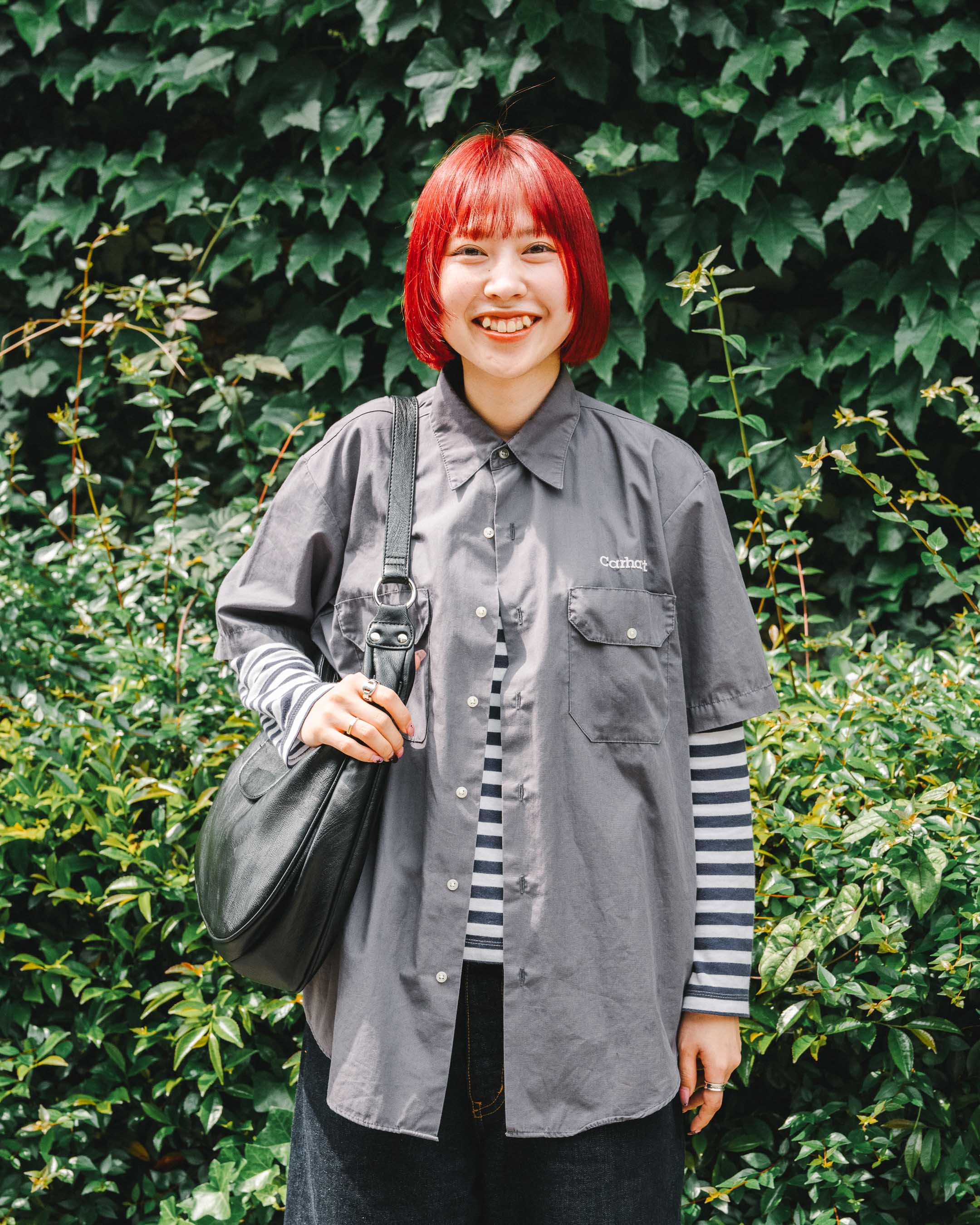 ( WORLD SNAP )上品なブラウスは真っ赤でアクセント。ボトムはシンプルで決まり