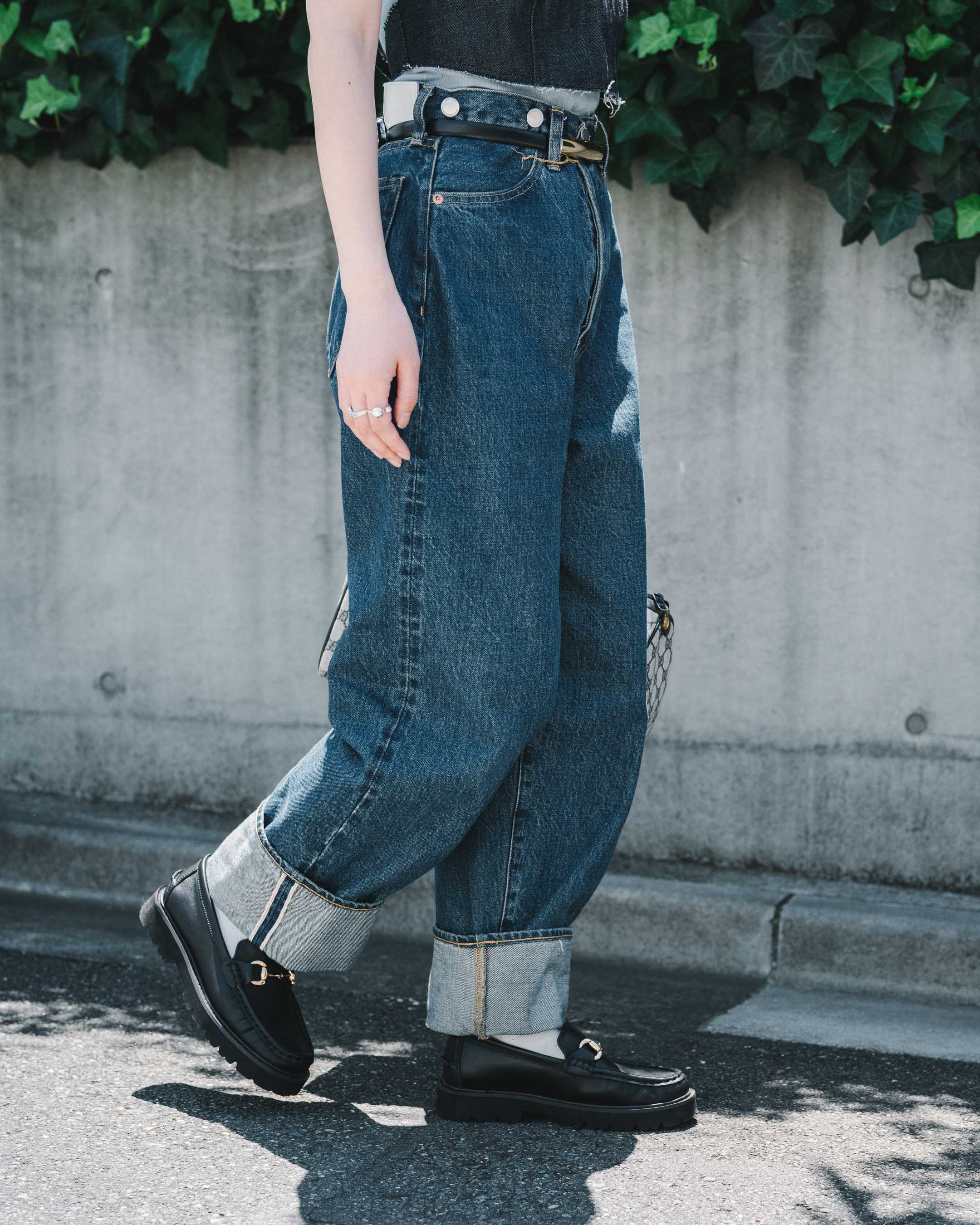 ローファーやベルトで引き締めながらバランスをとる、初夏のデニムレイヤードスタイル!