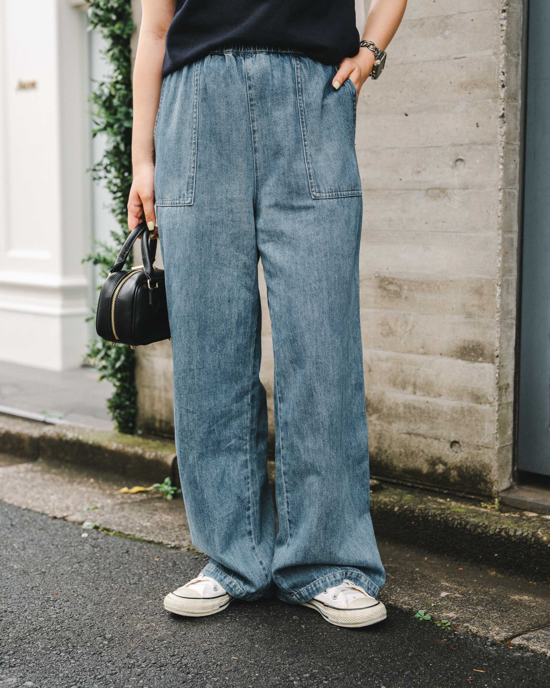 ( WORLD SNAP )アイスブルーのきれいめスラックスで白ワンピのガーリーを抑...