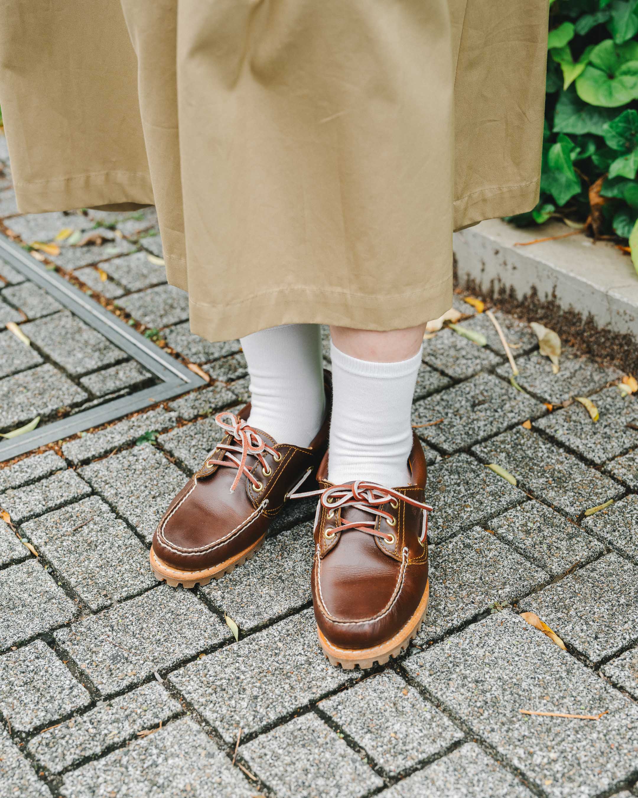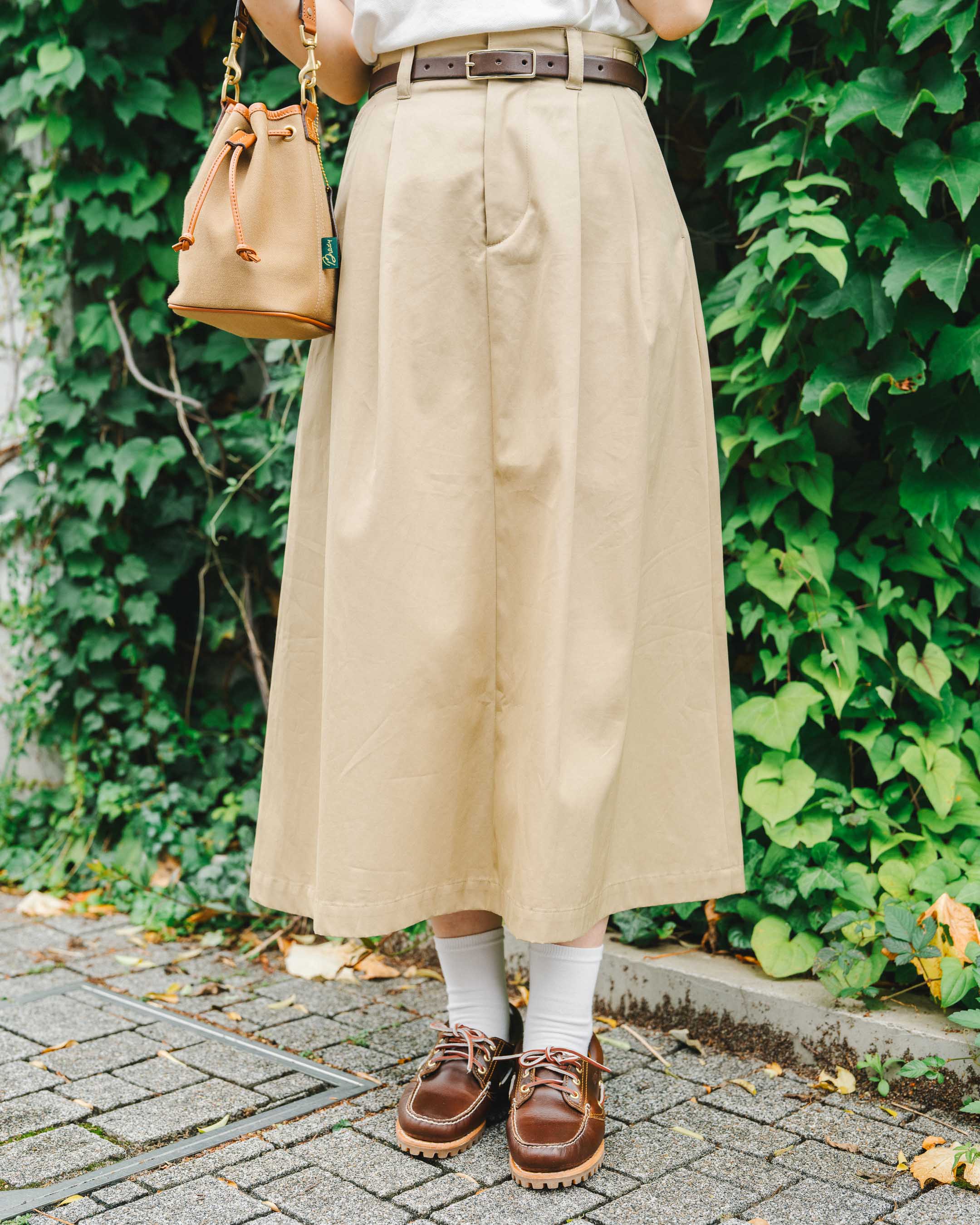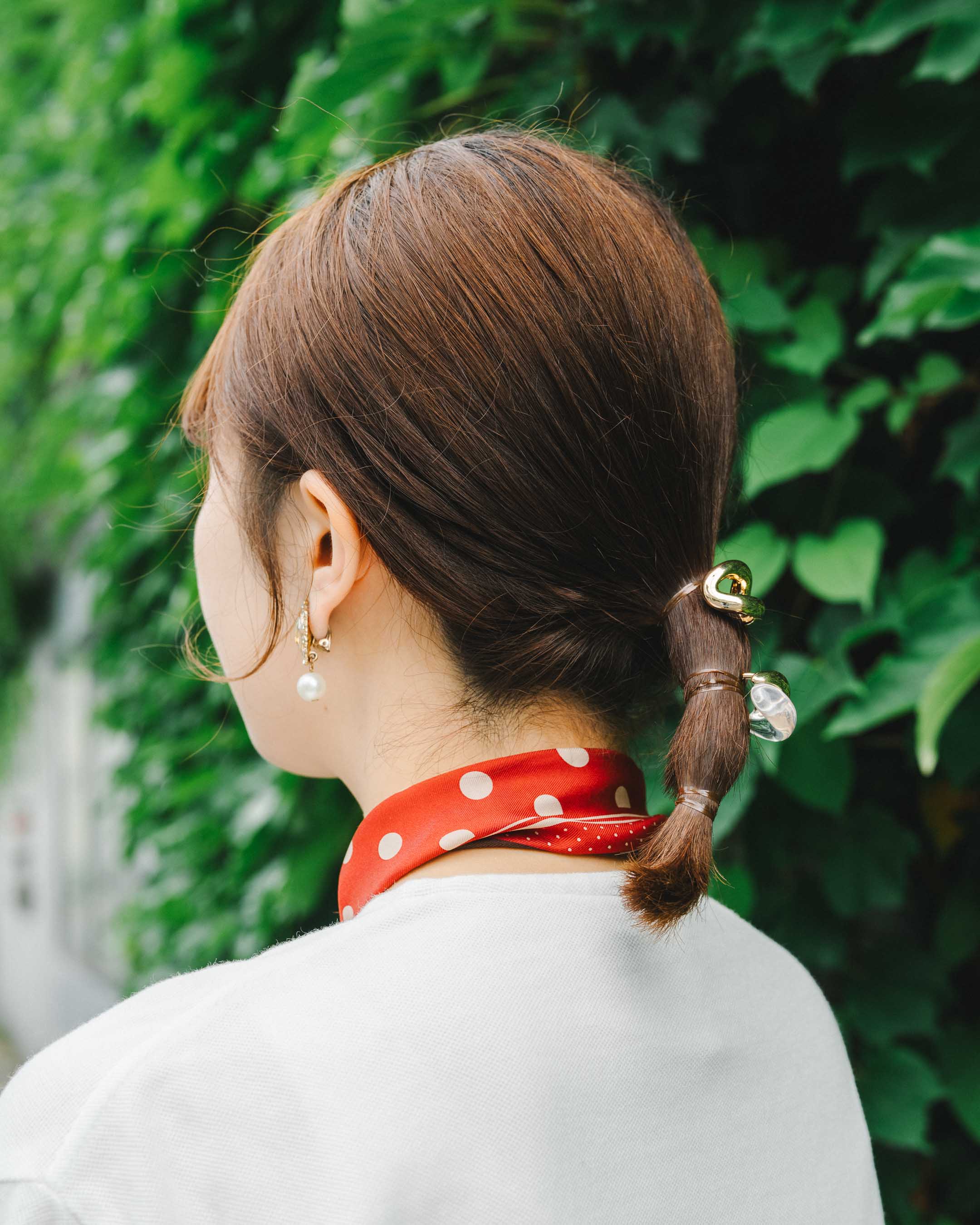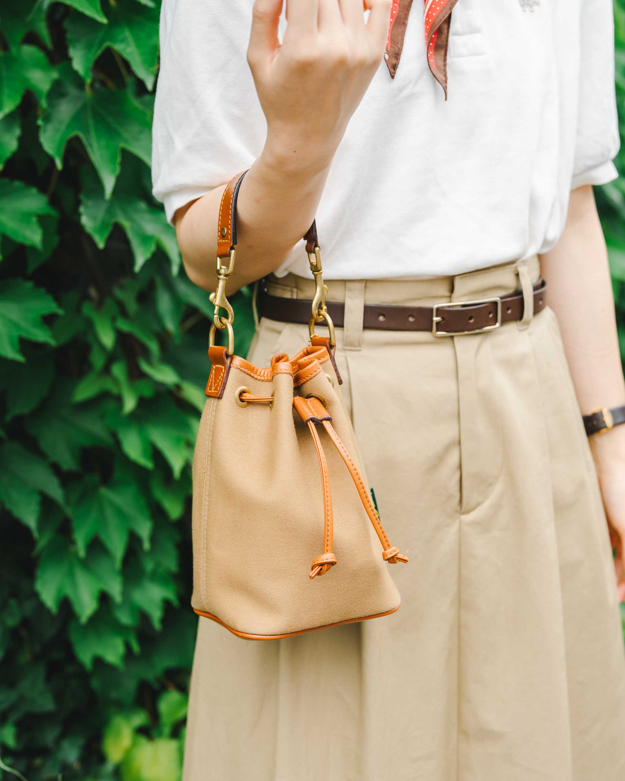 スカーフやバッグなどでアクセントを加えて、マンネリ化する夏コーデをトラディショナルに仕上げる。