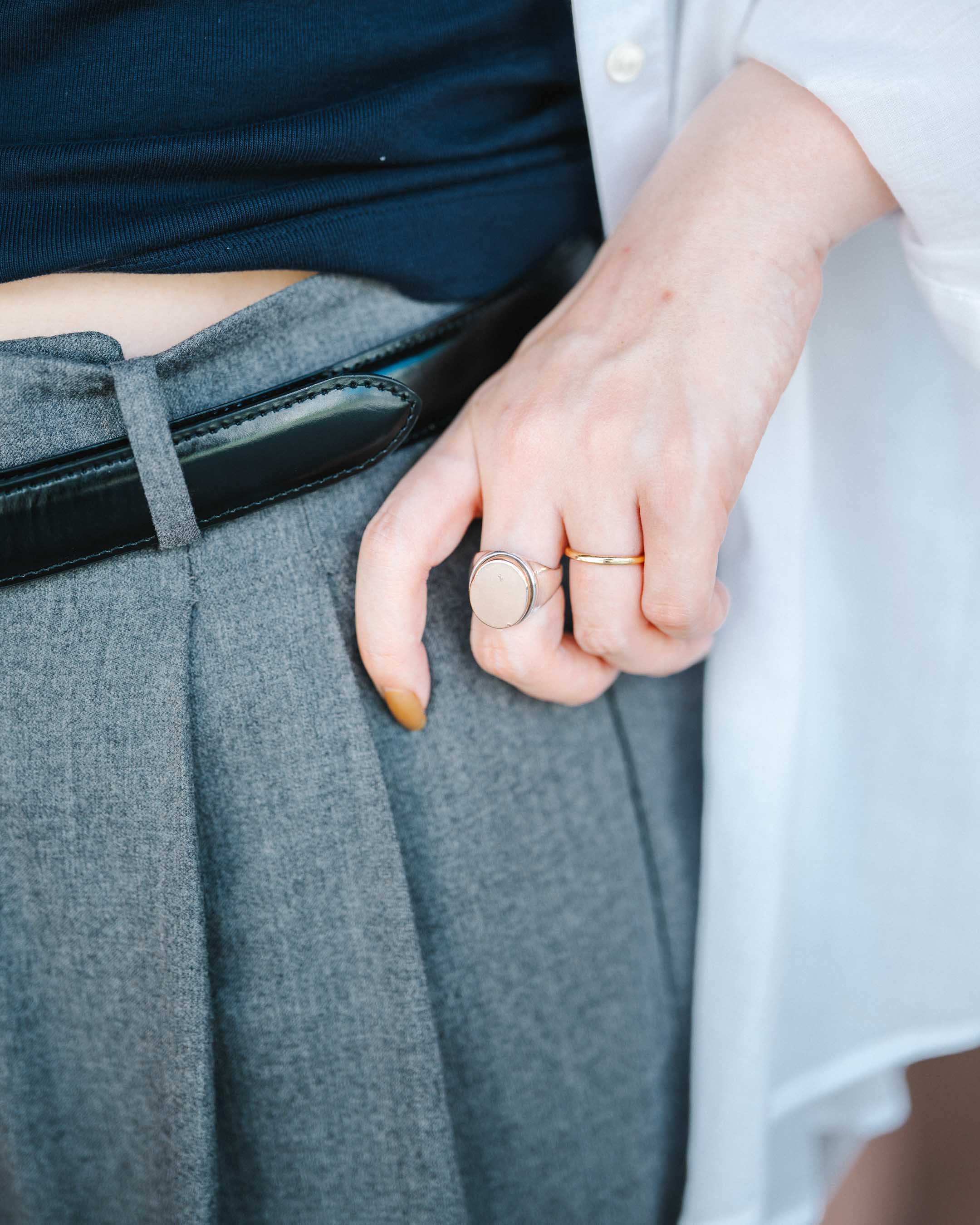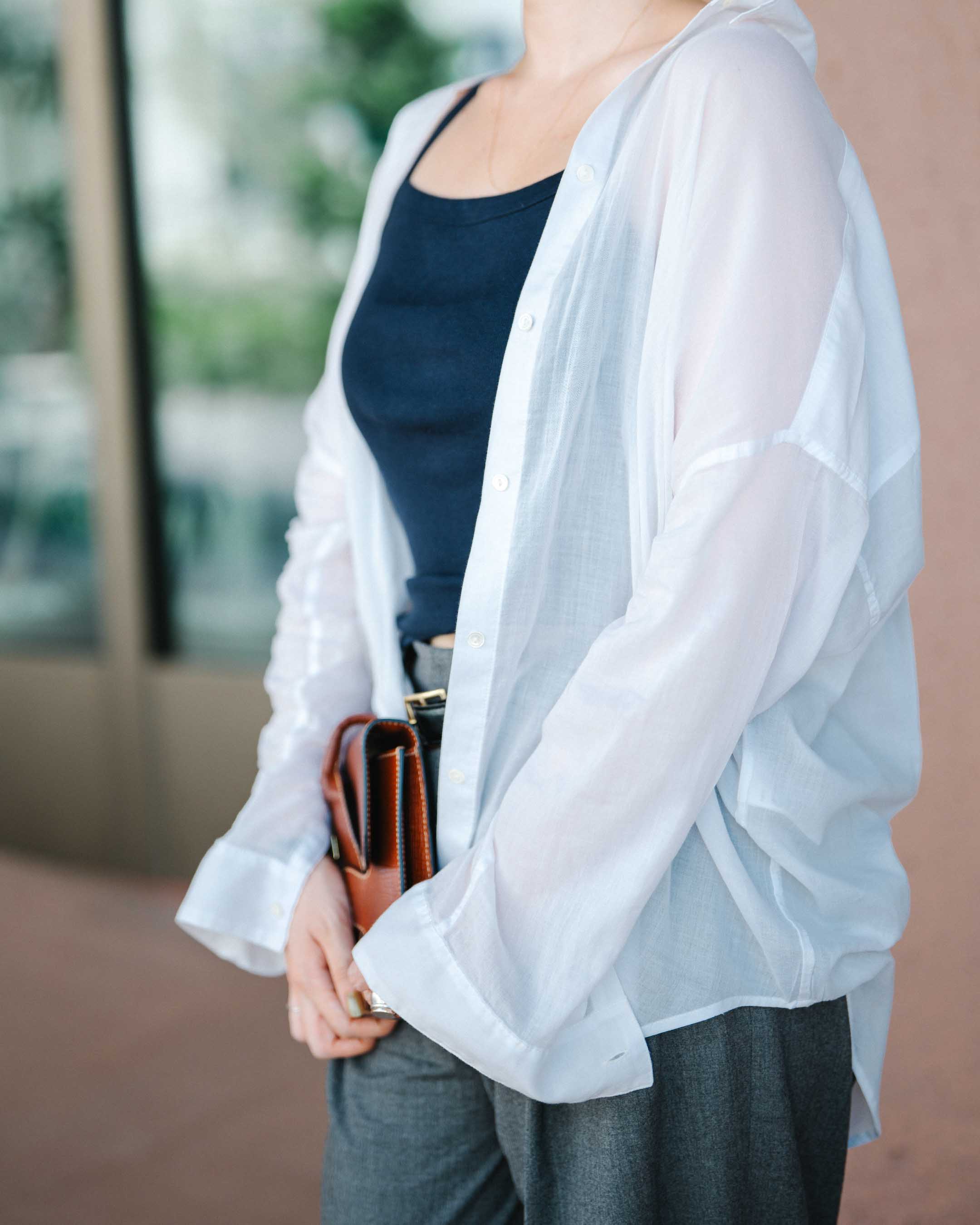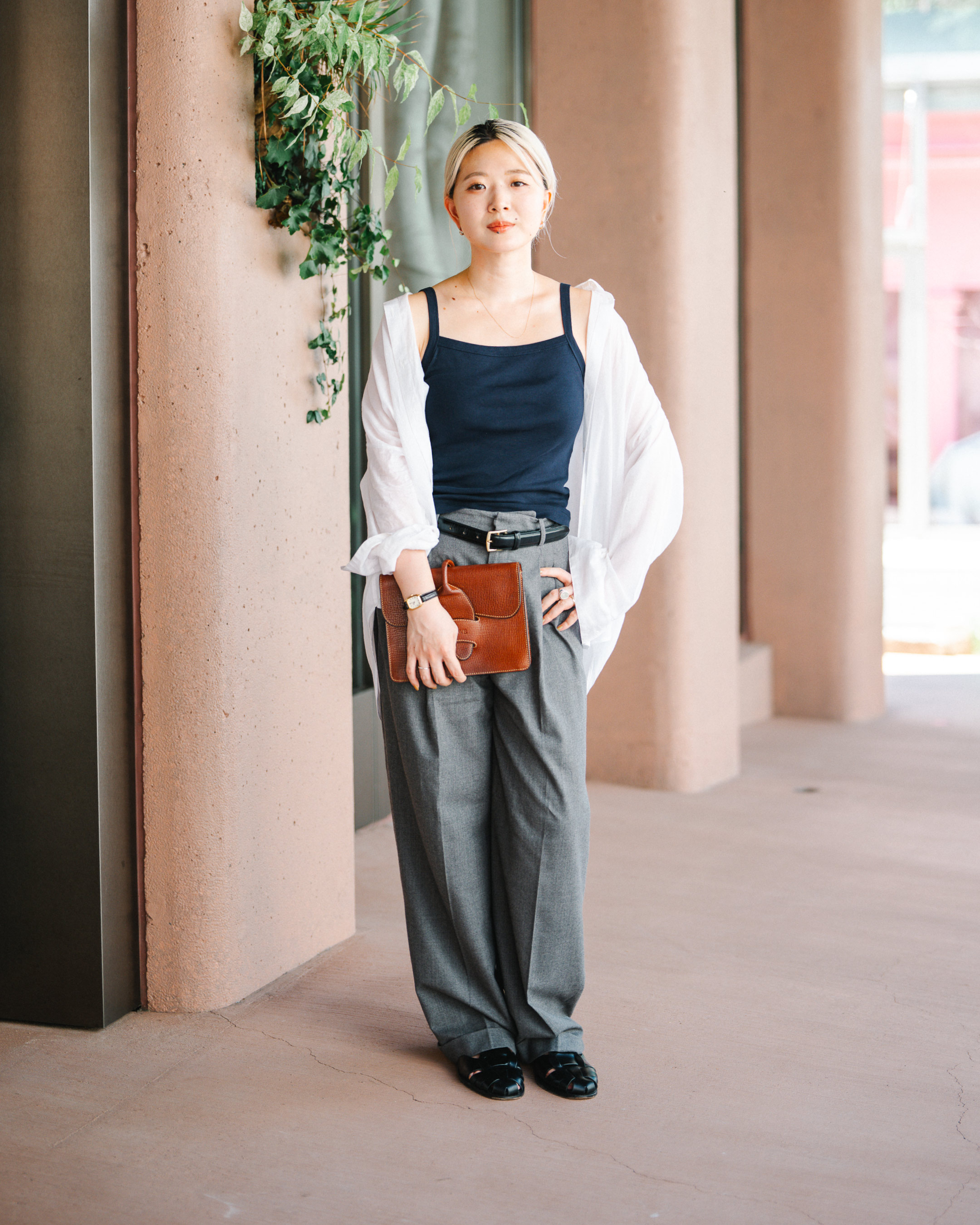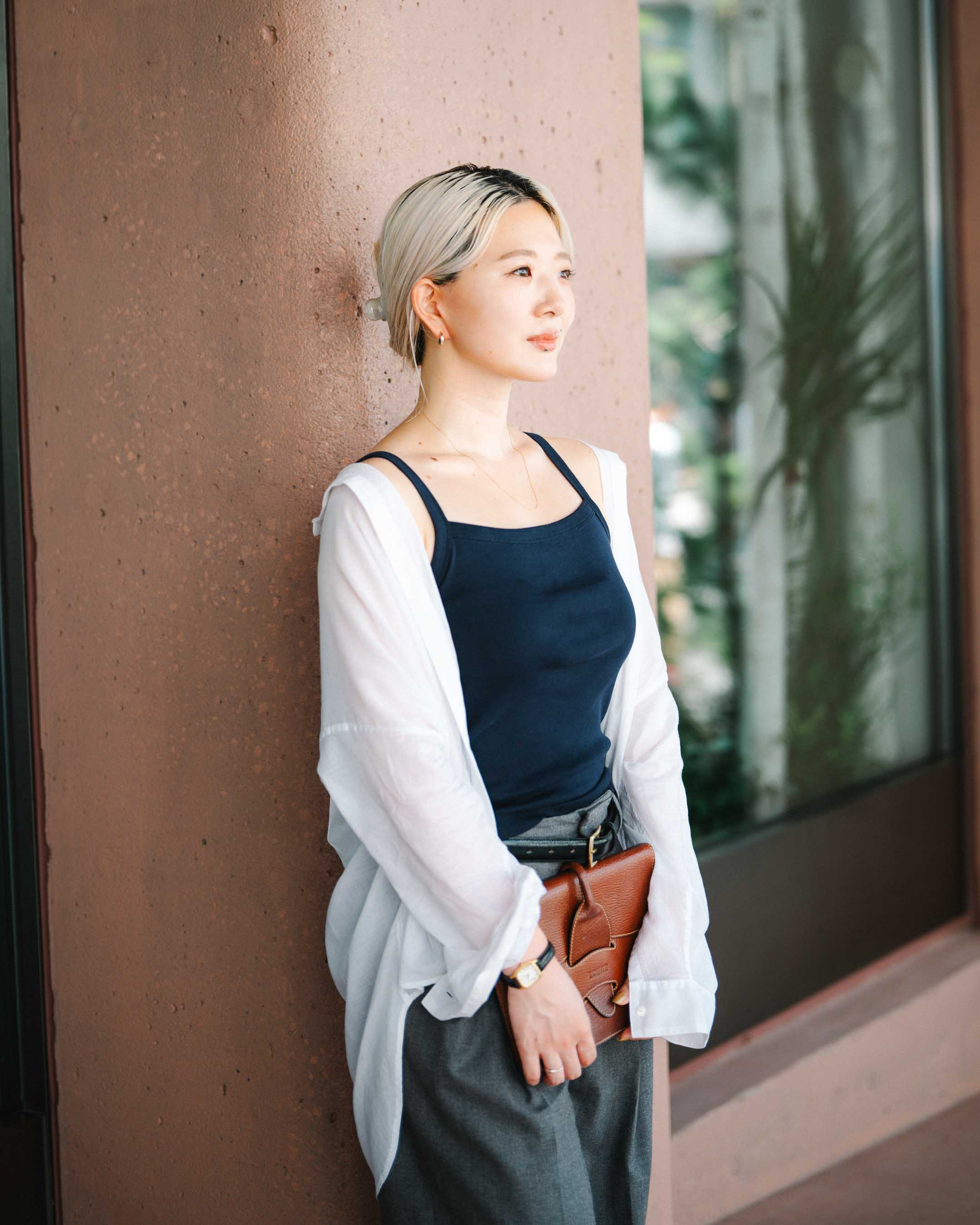 モノトーンのきれいめコーデは、アイテム使いで大人っぽく。