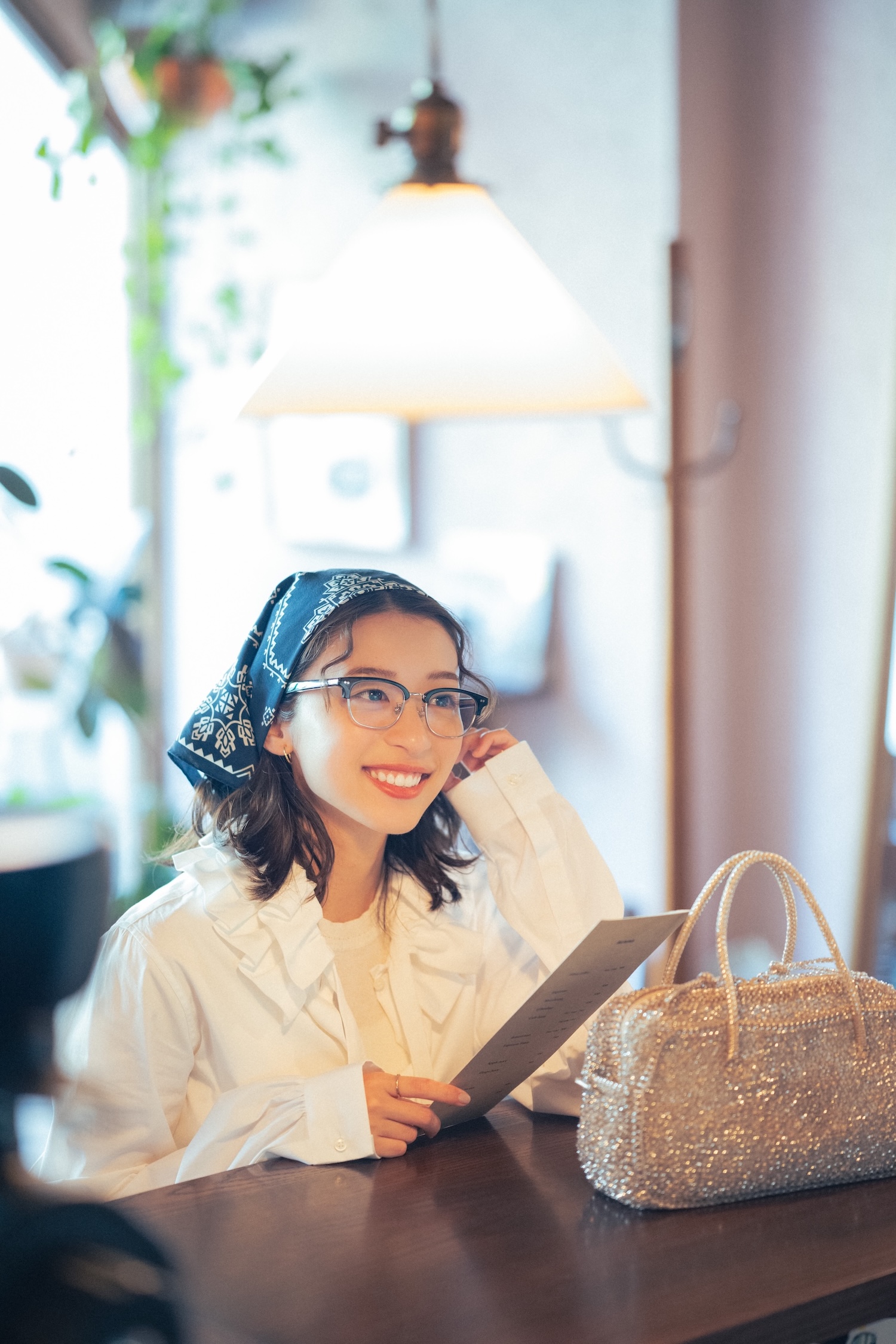 俳優の鳴海唯さんが選んだのは、可愛らしさと大人っぽさを兼ね備えたキャメルシルバー。繊細なニュアンスカラーが、秋のデニムスタイルに輝きを添え、ぐっと洗練された印象に引き上げてくれる。