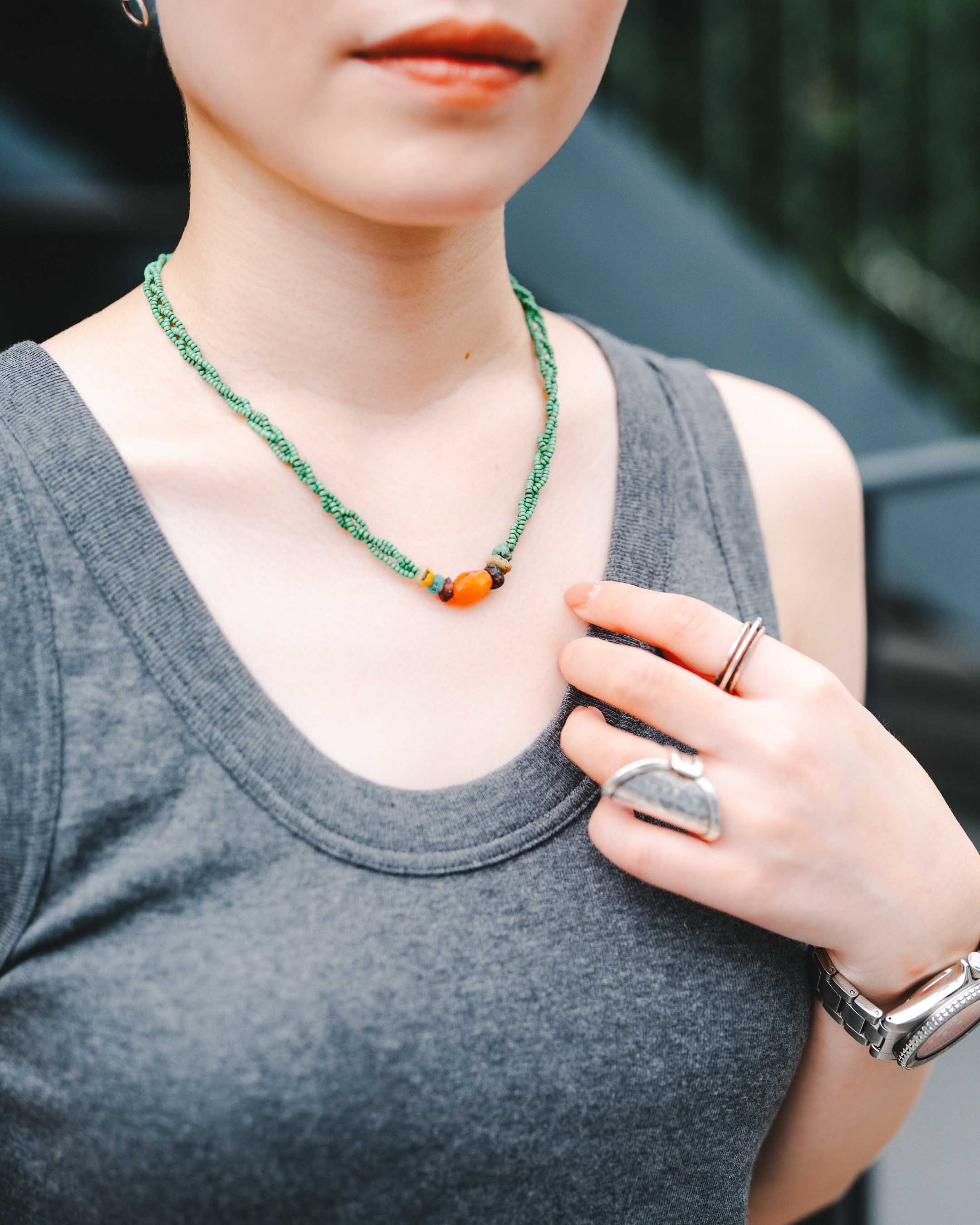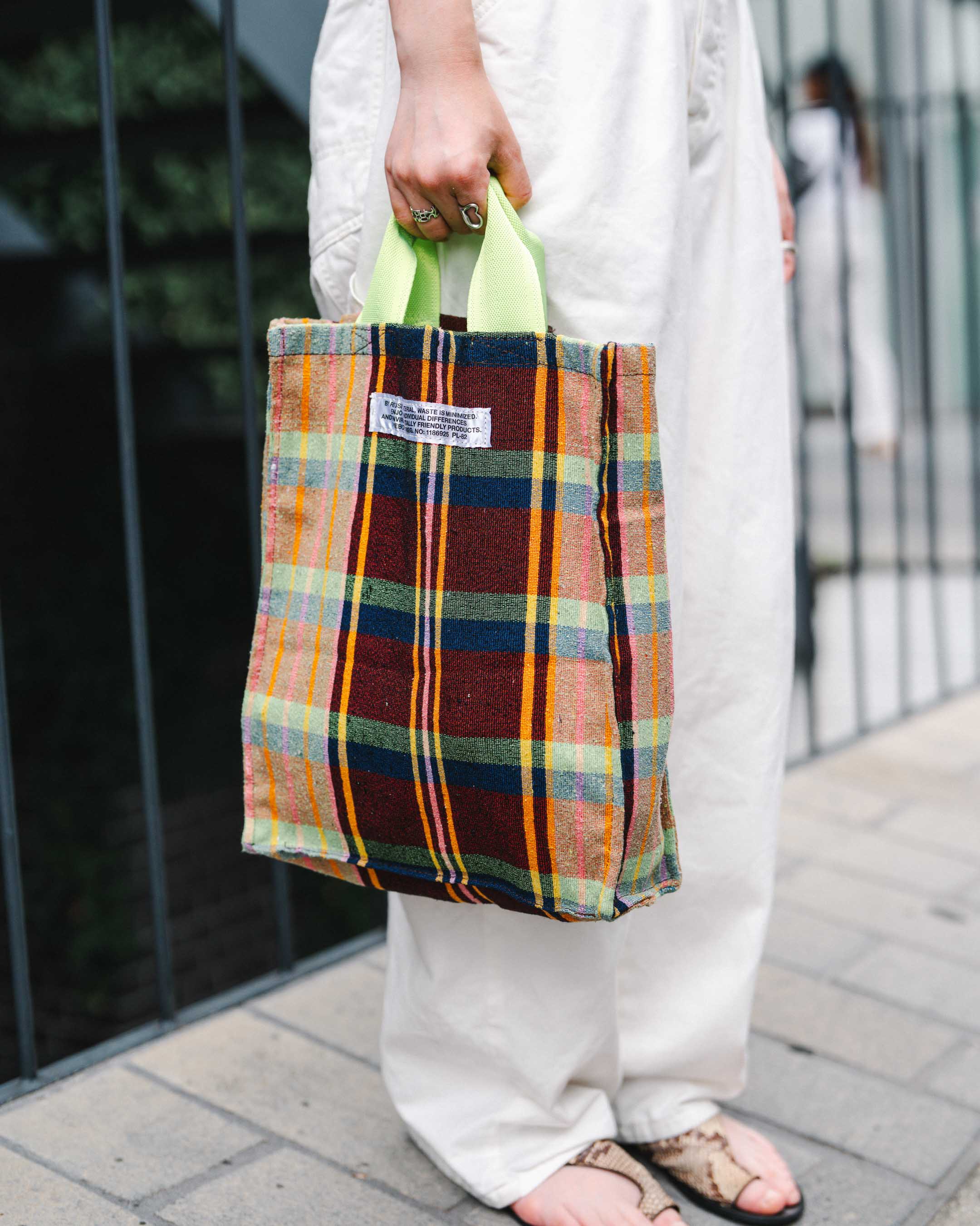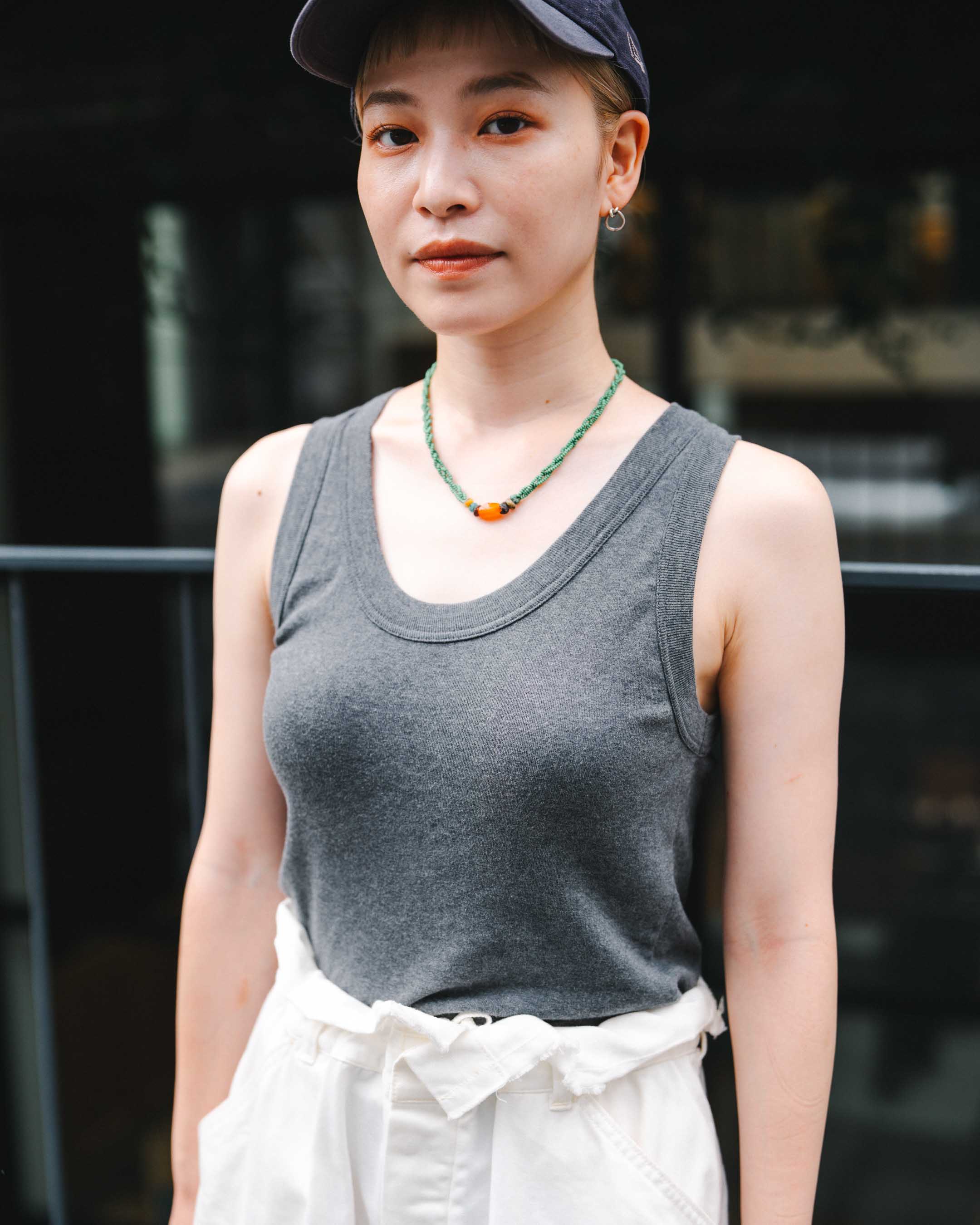 おもための素材感のバッグとツートーンのキャップを取り入れて秋を感じさせて。