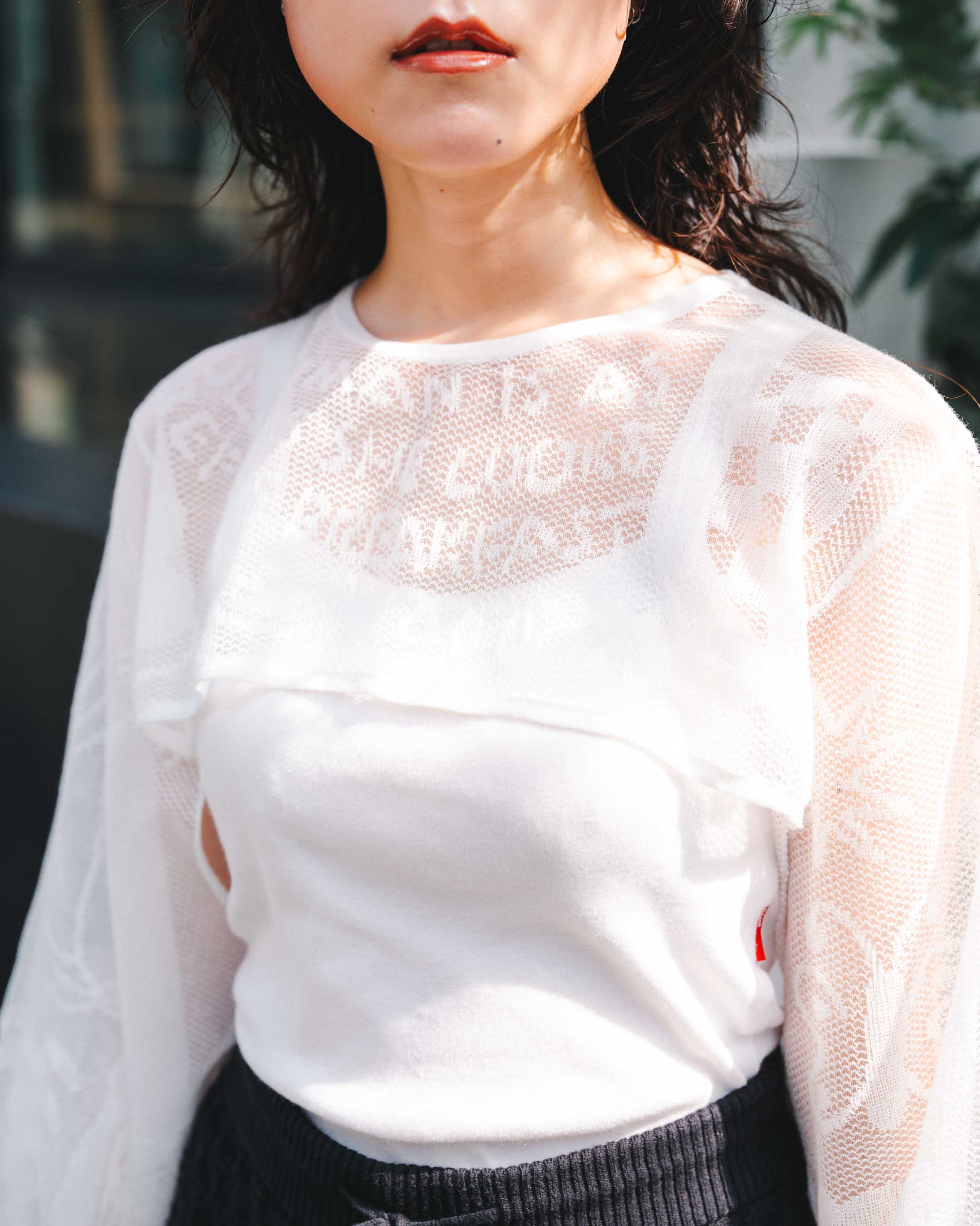ジャカードで表現された繊細な柄の素敵なニット!胸元もメッセージが。