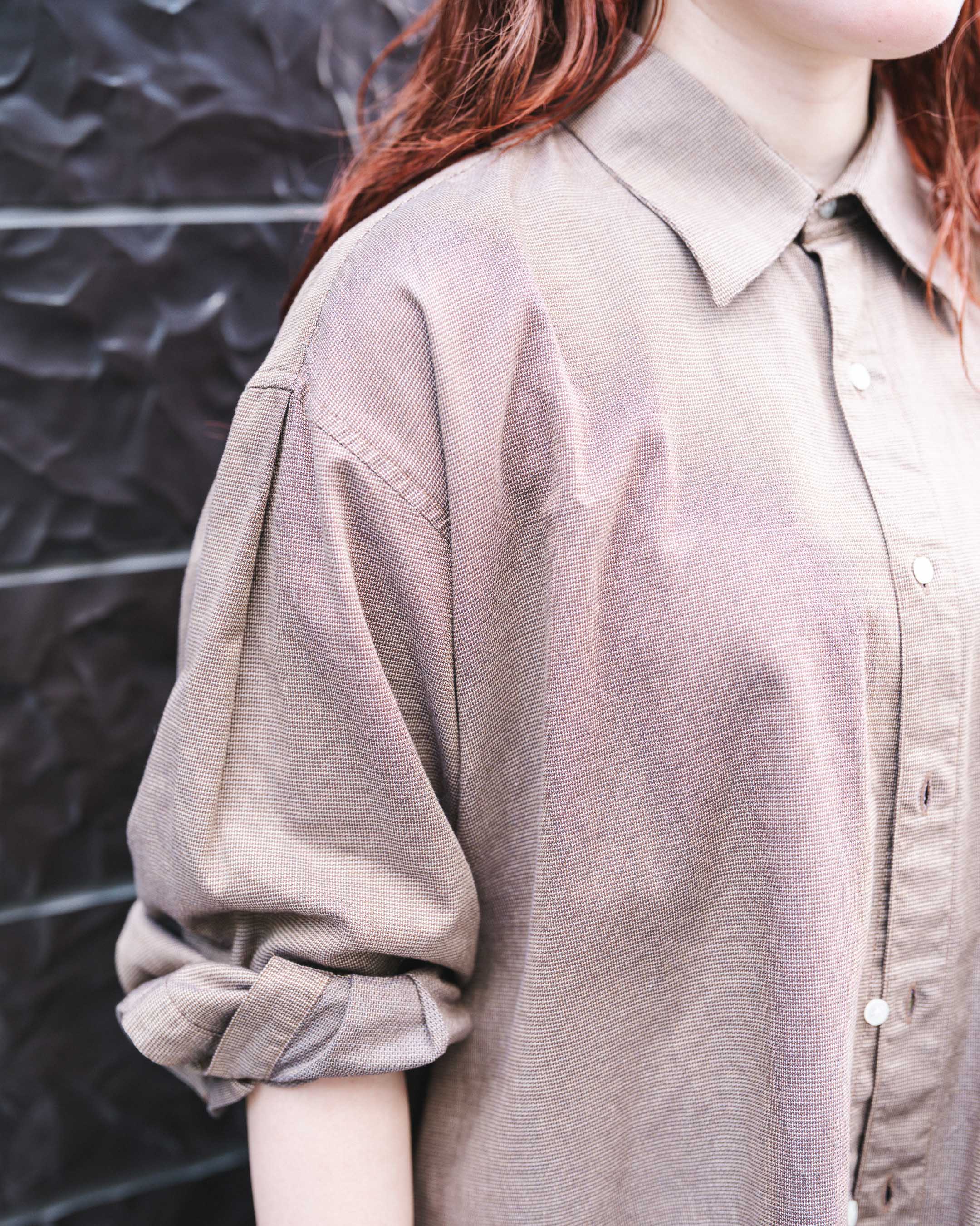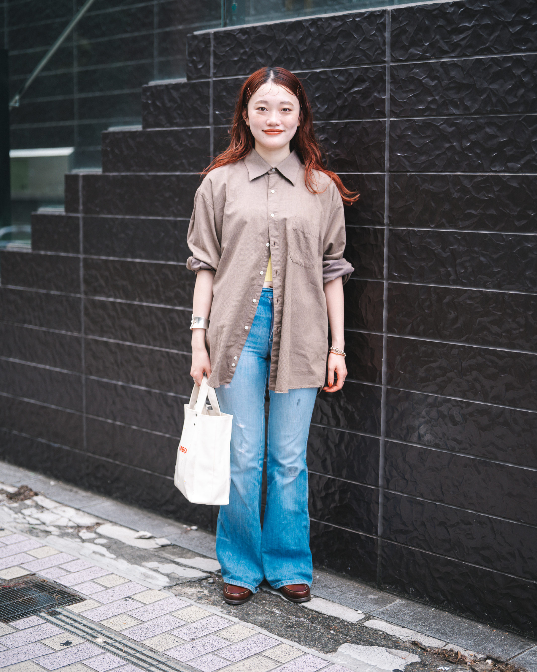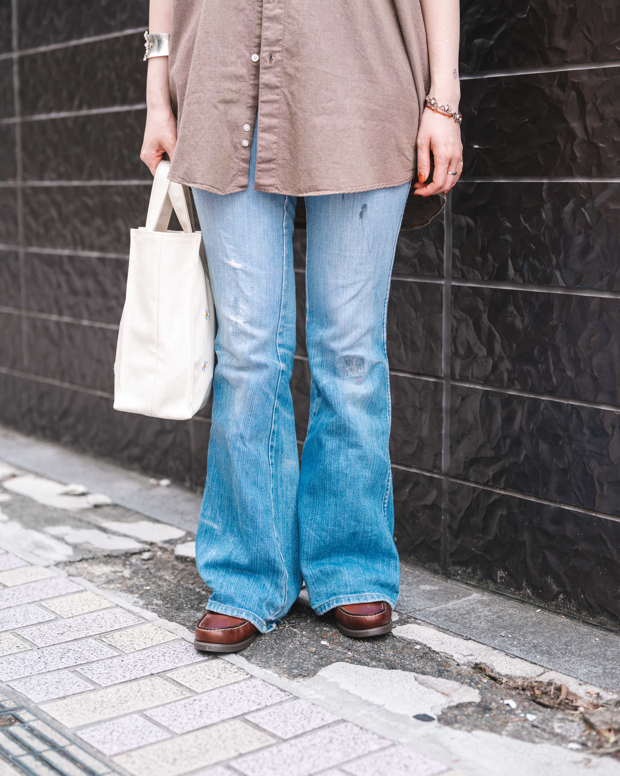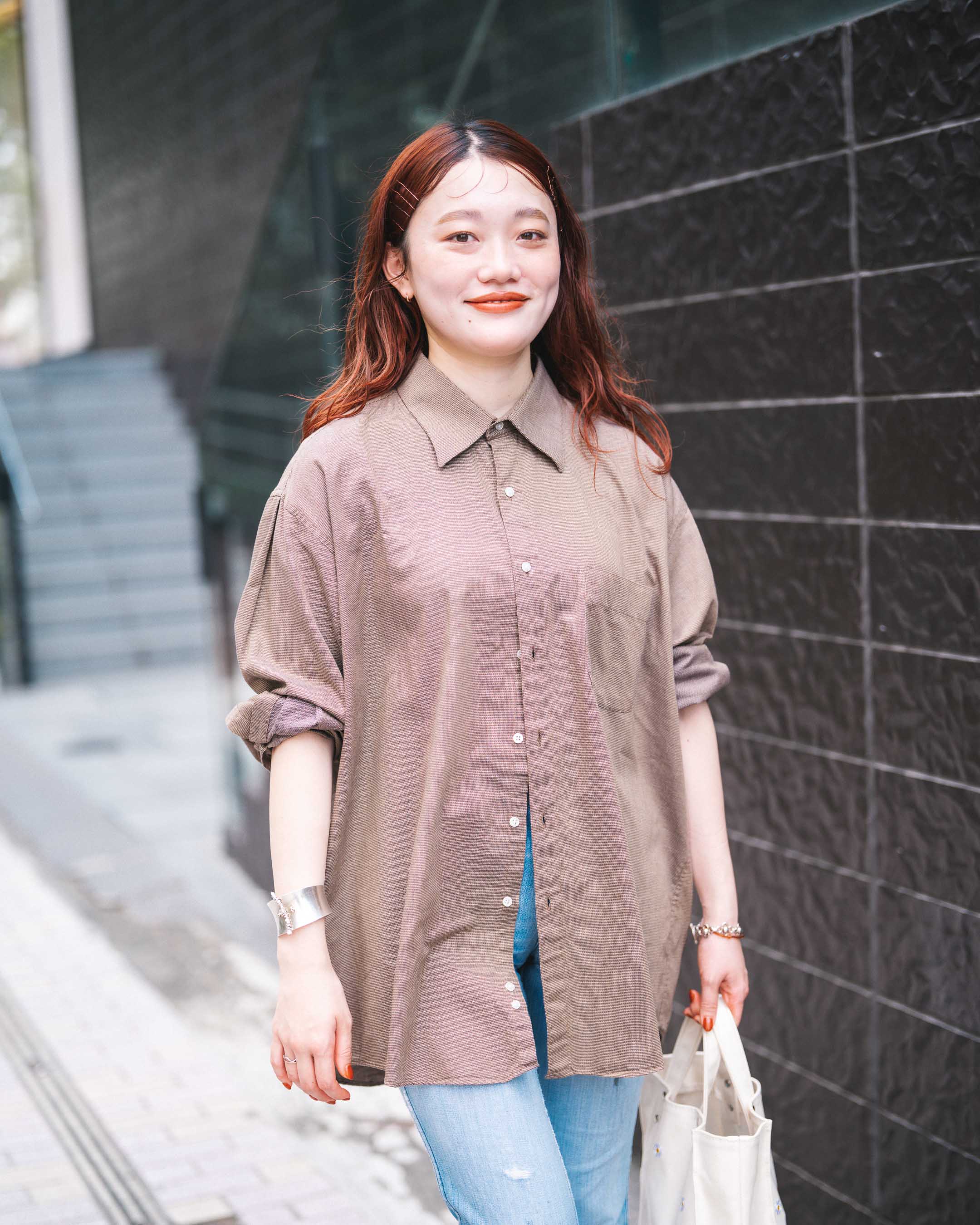 ブラウンのシャツと革靴で秋っぽくまとめた古着Mixコーデ!