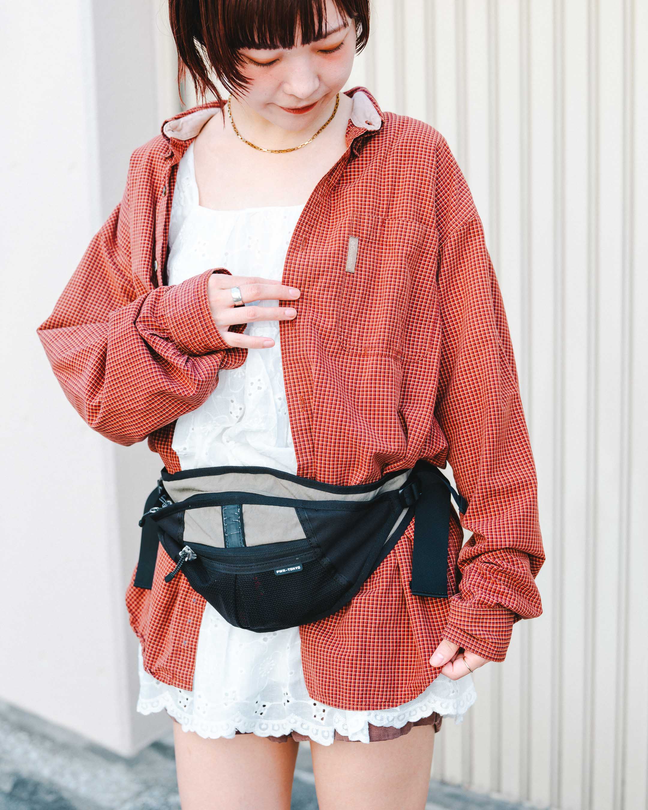 秋色シャツとウエストポーチがpointのスポーツMixコーデ!