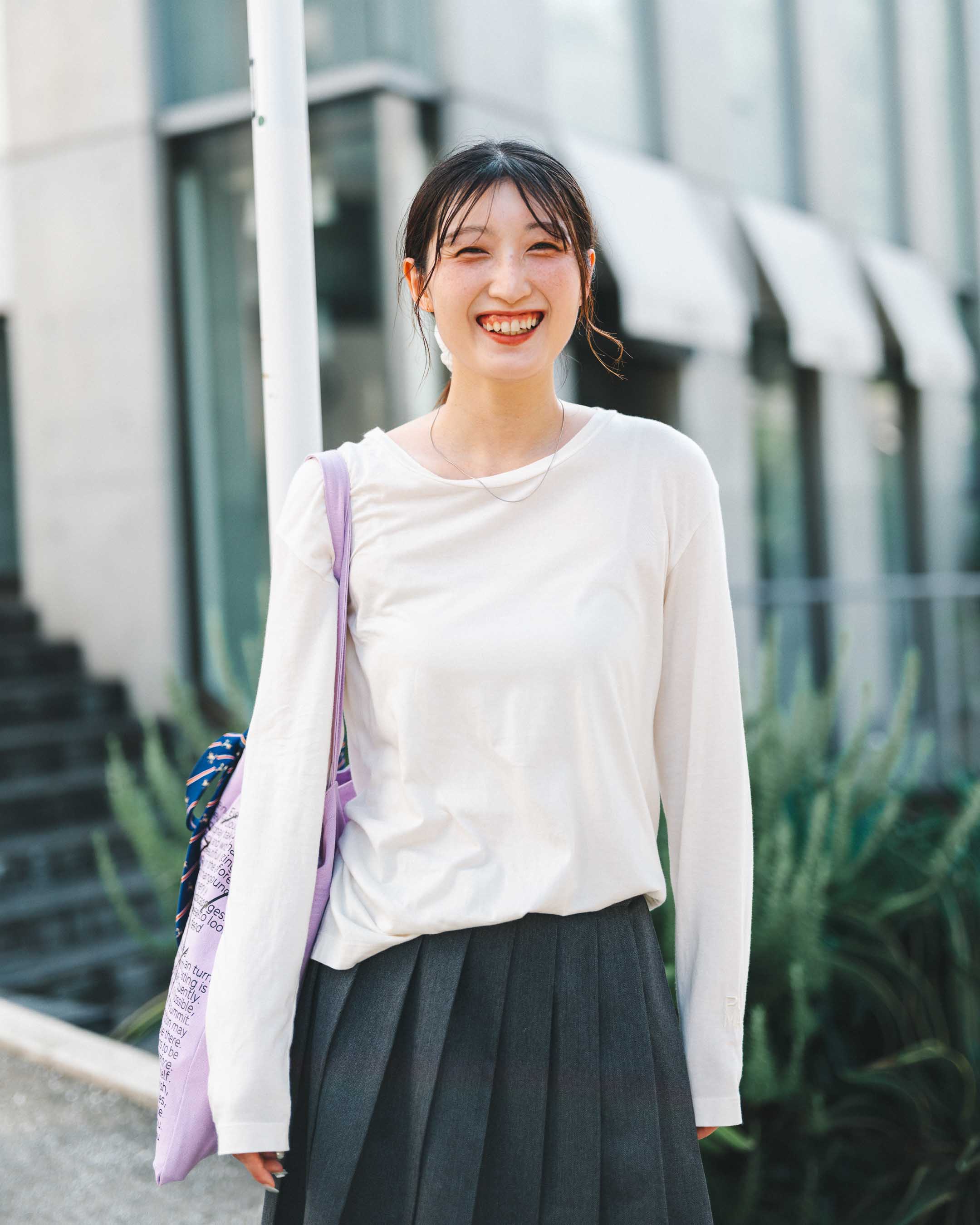 ニット×プリーツスカートやガーリーにまとめたスクールガール風コーデ。