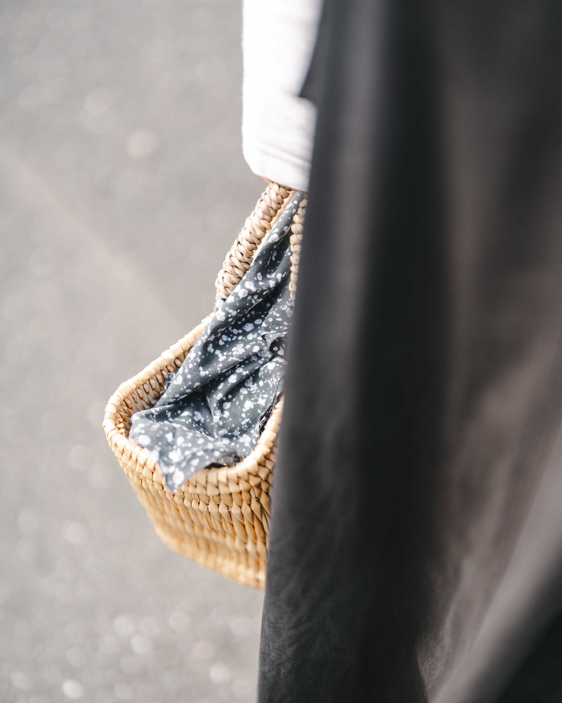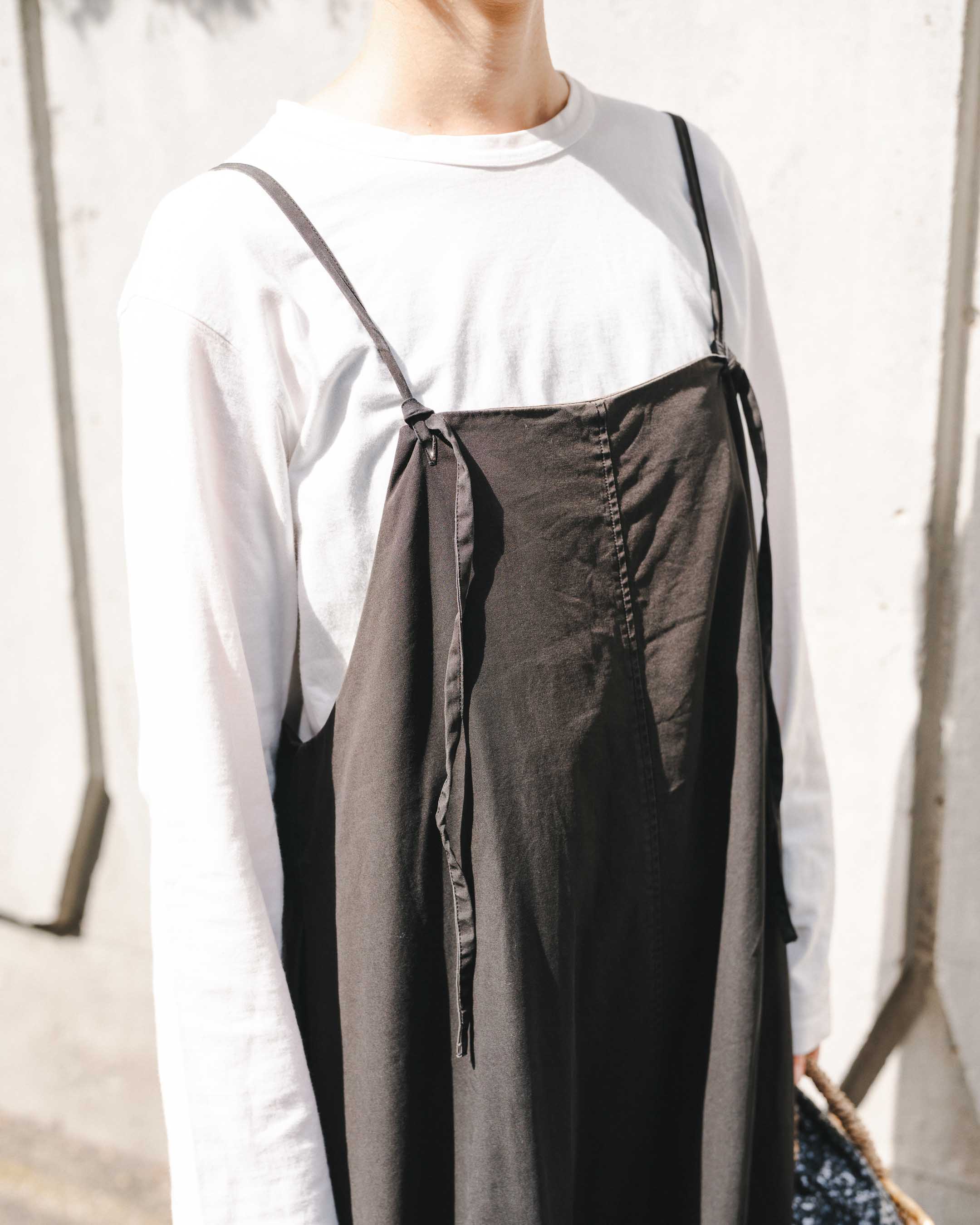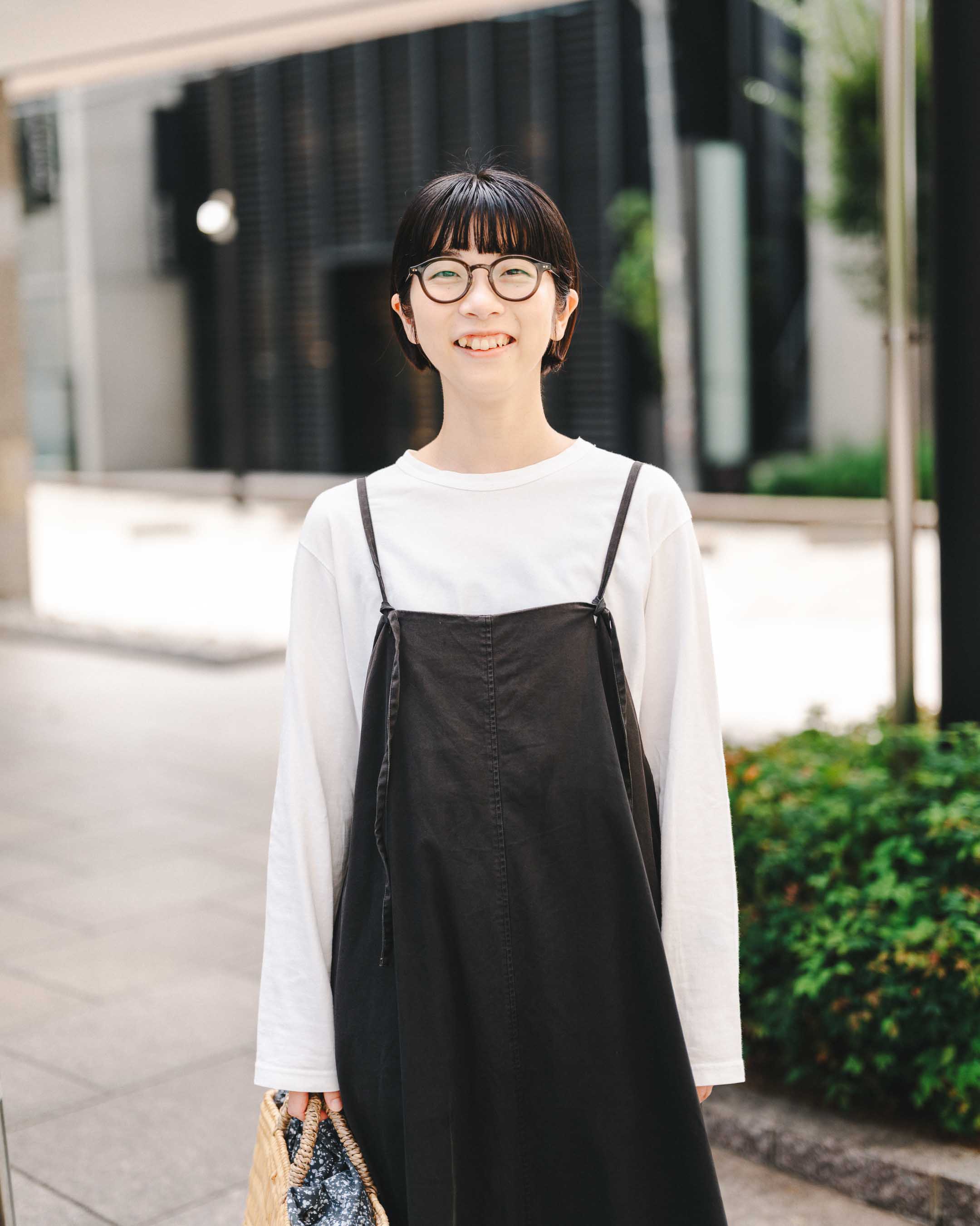 モノトーンのシンプルナチュラルコーデはアイテム使いをポイントに。