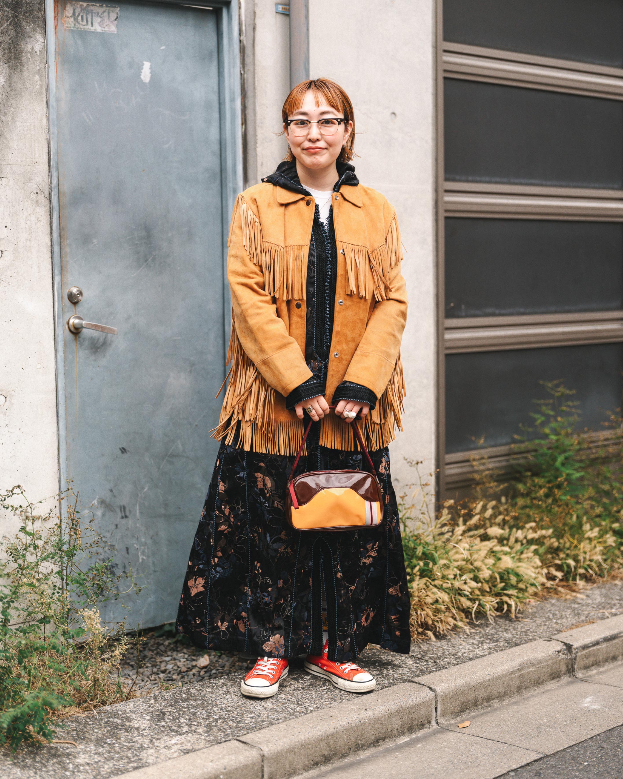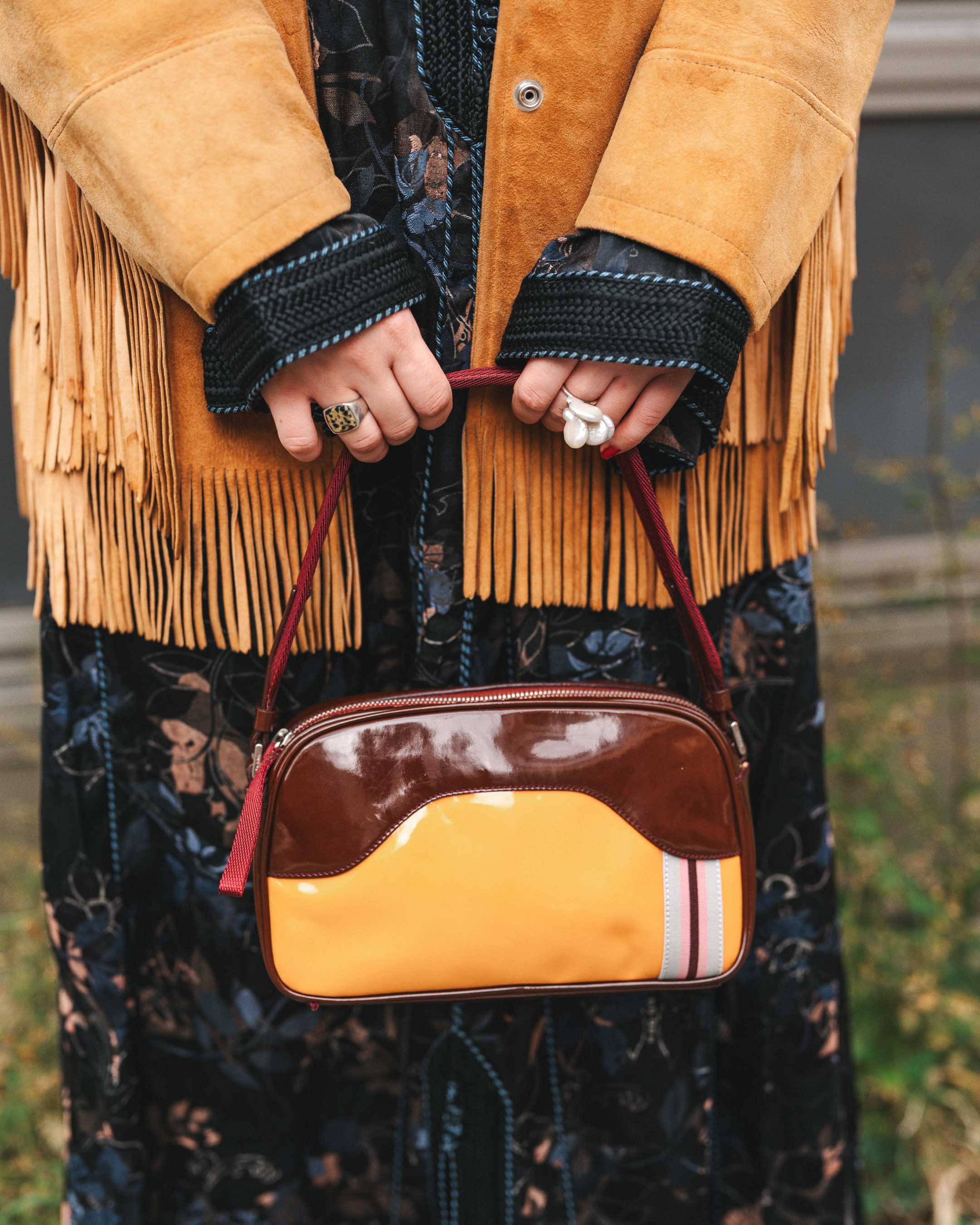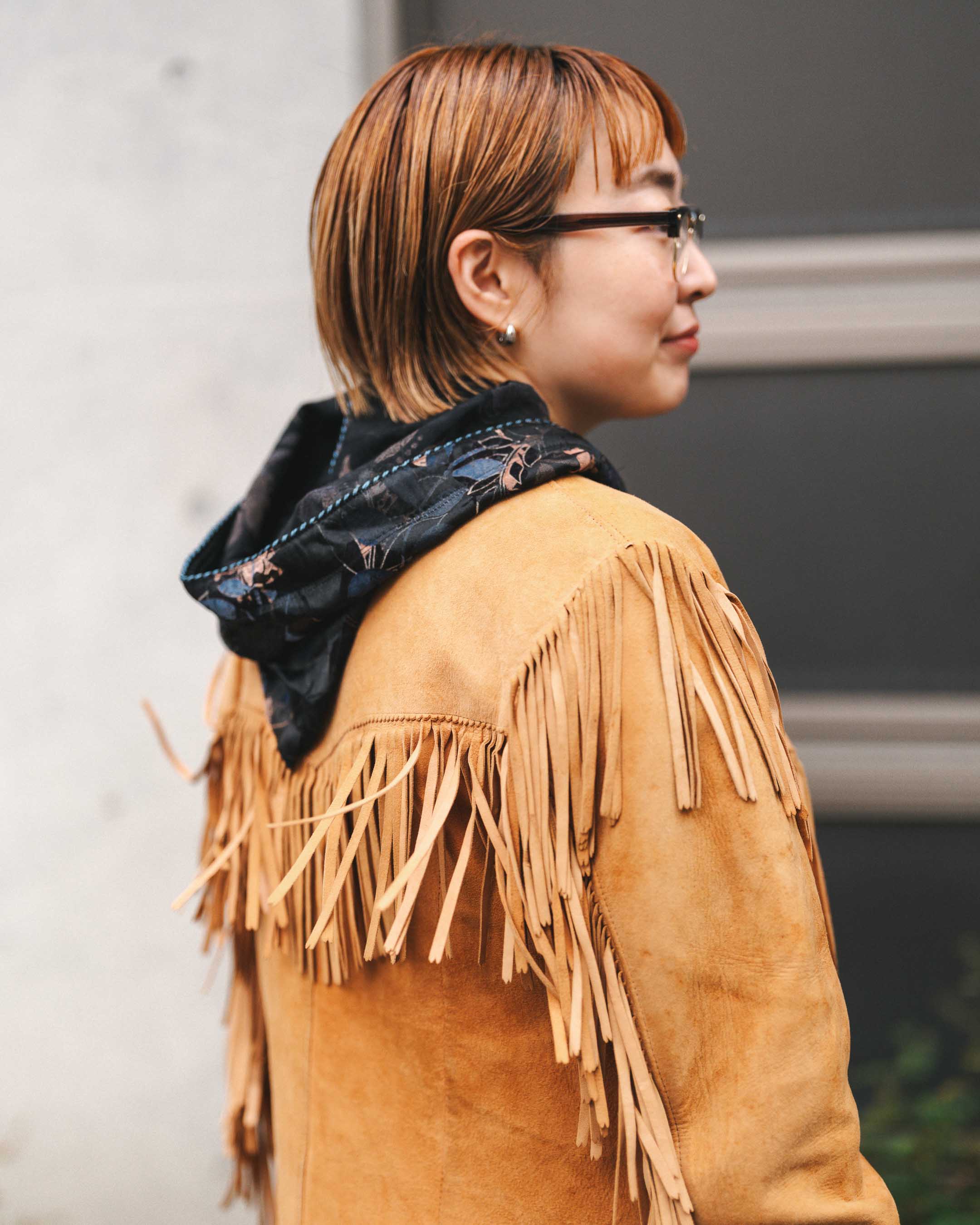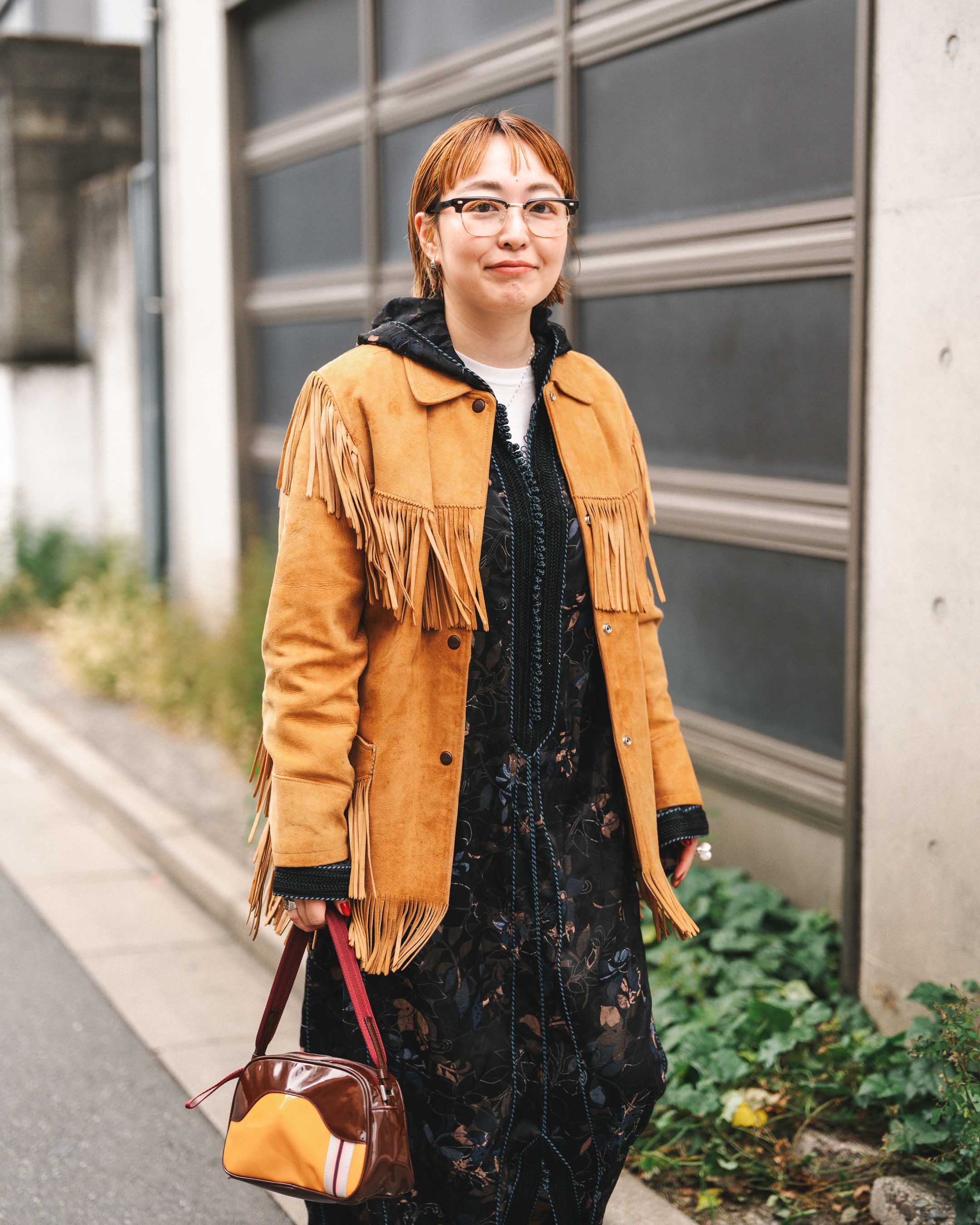 フリンジのジャケットに柄ワンピであったかボリューミィ秋コーデに!