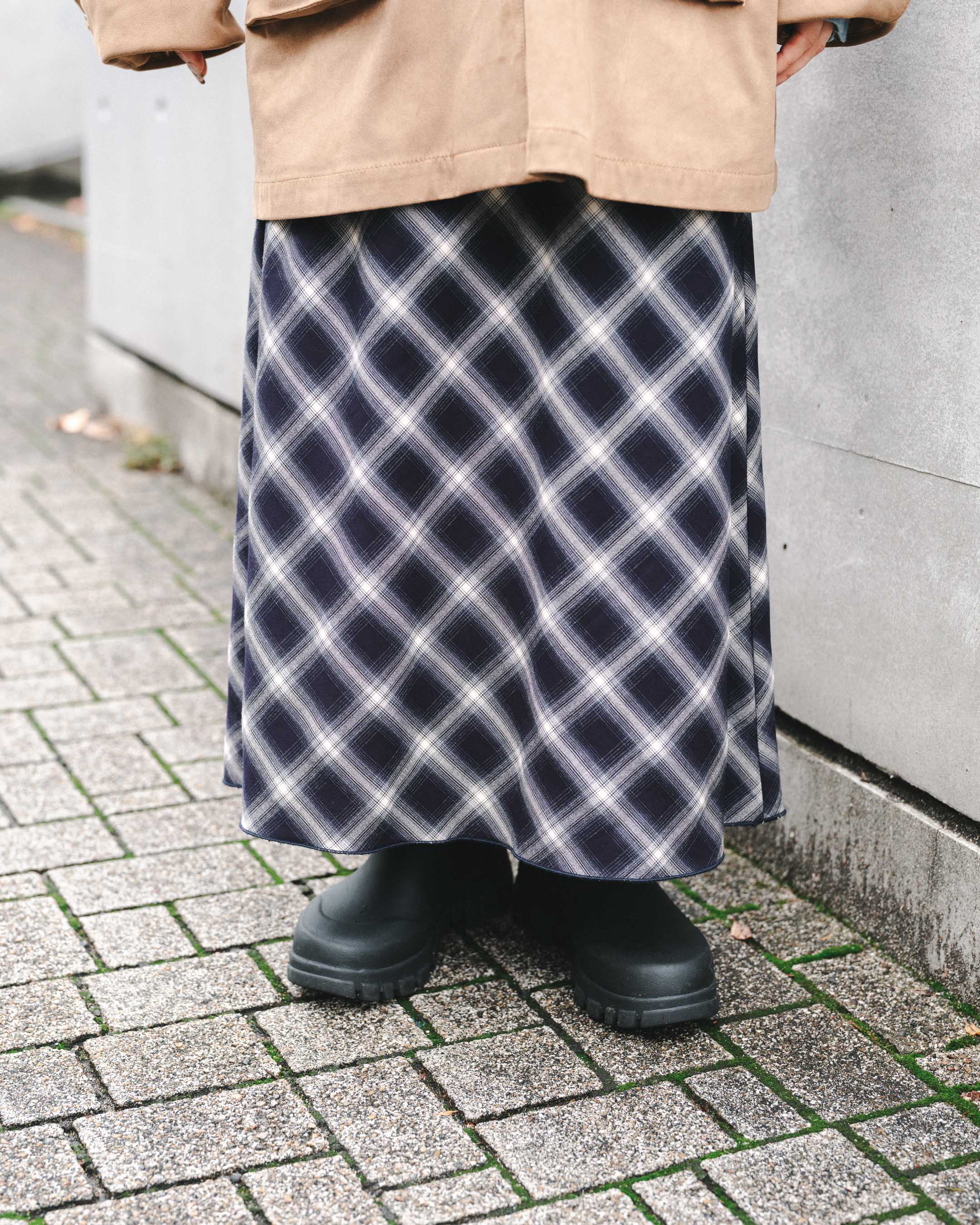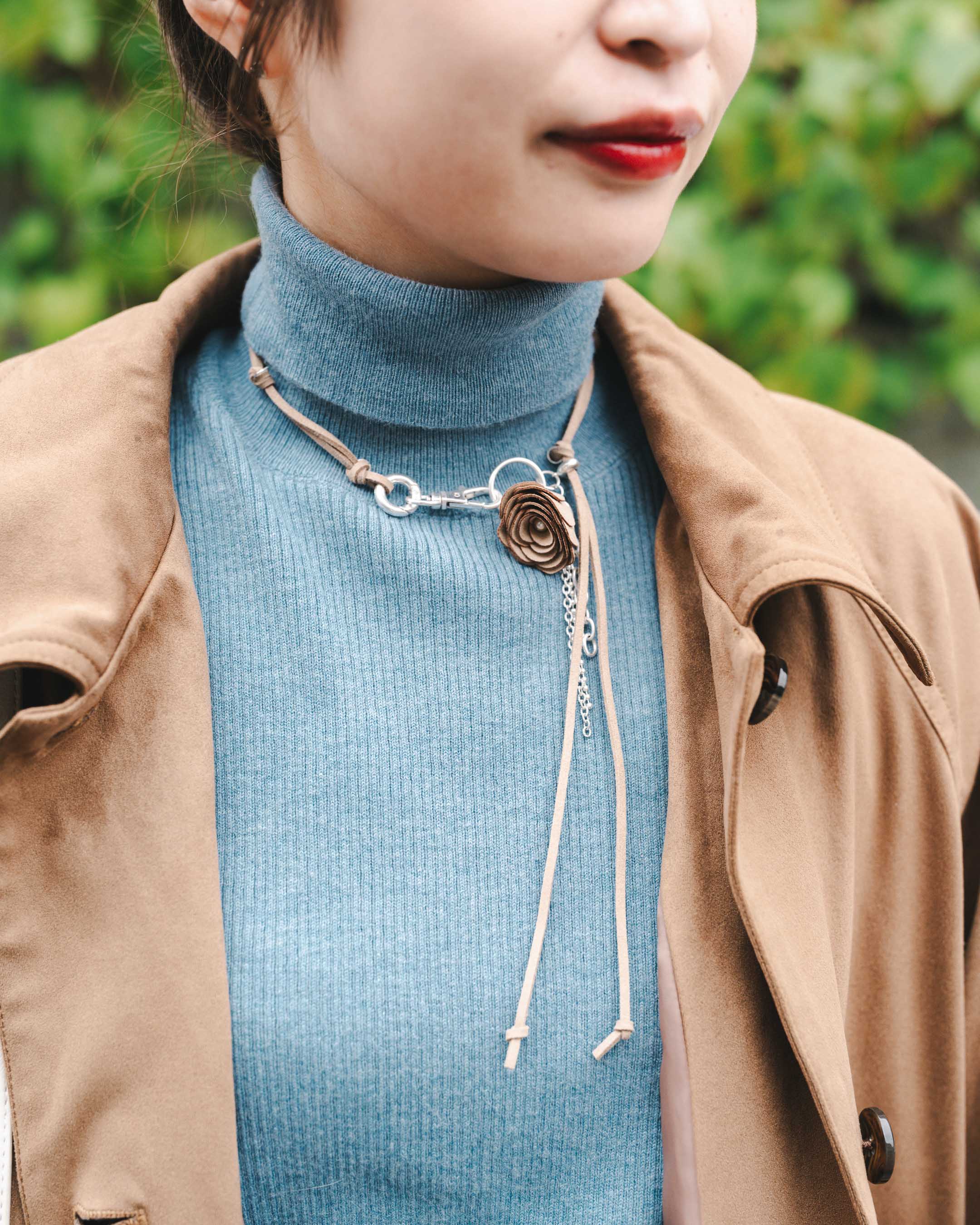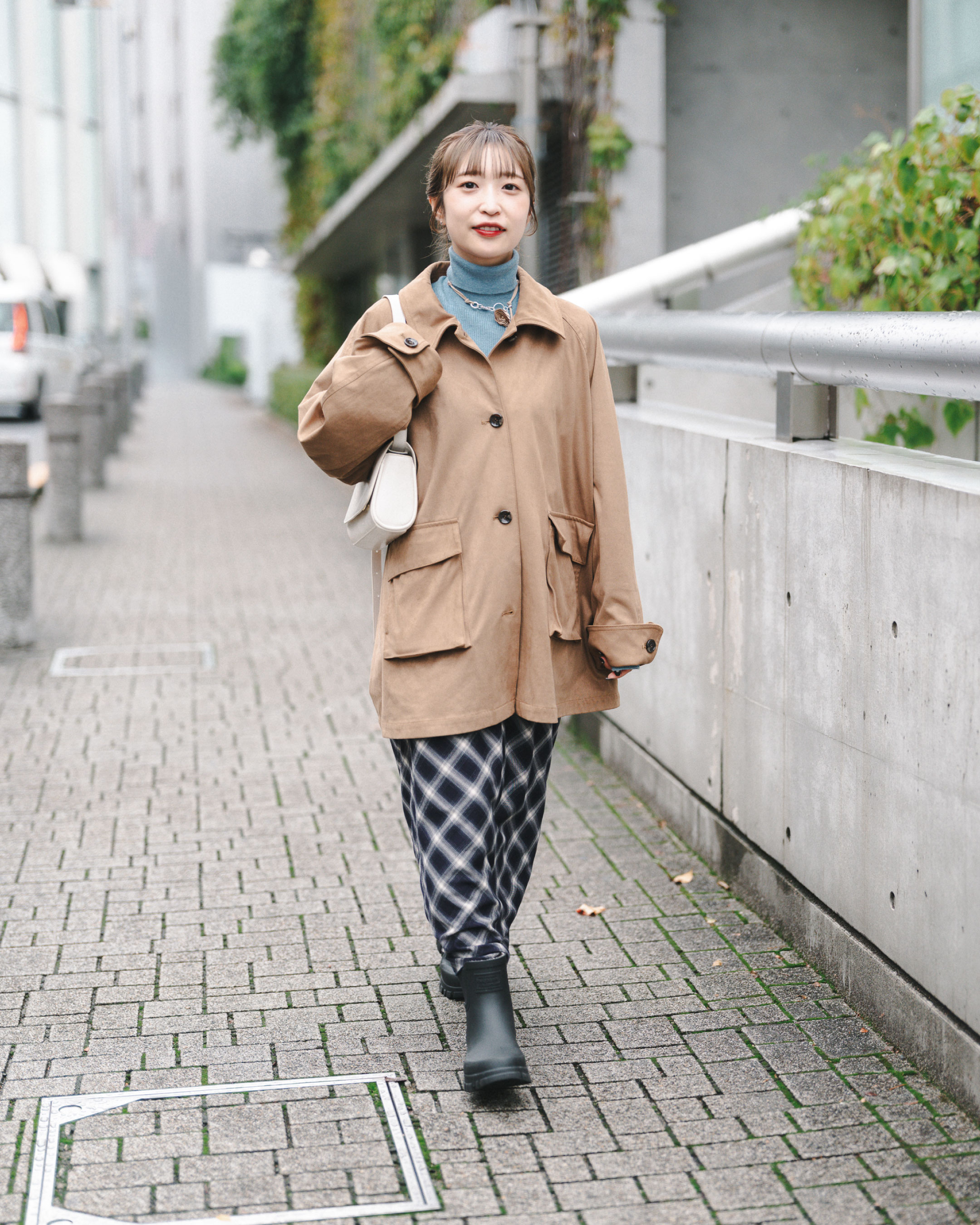 レディライクなアイテムをあわせてルーズなシルエットとのバランスをとる。