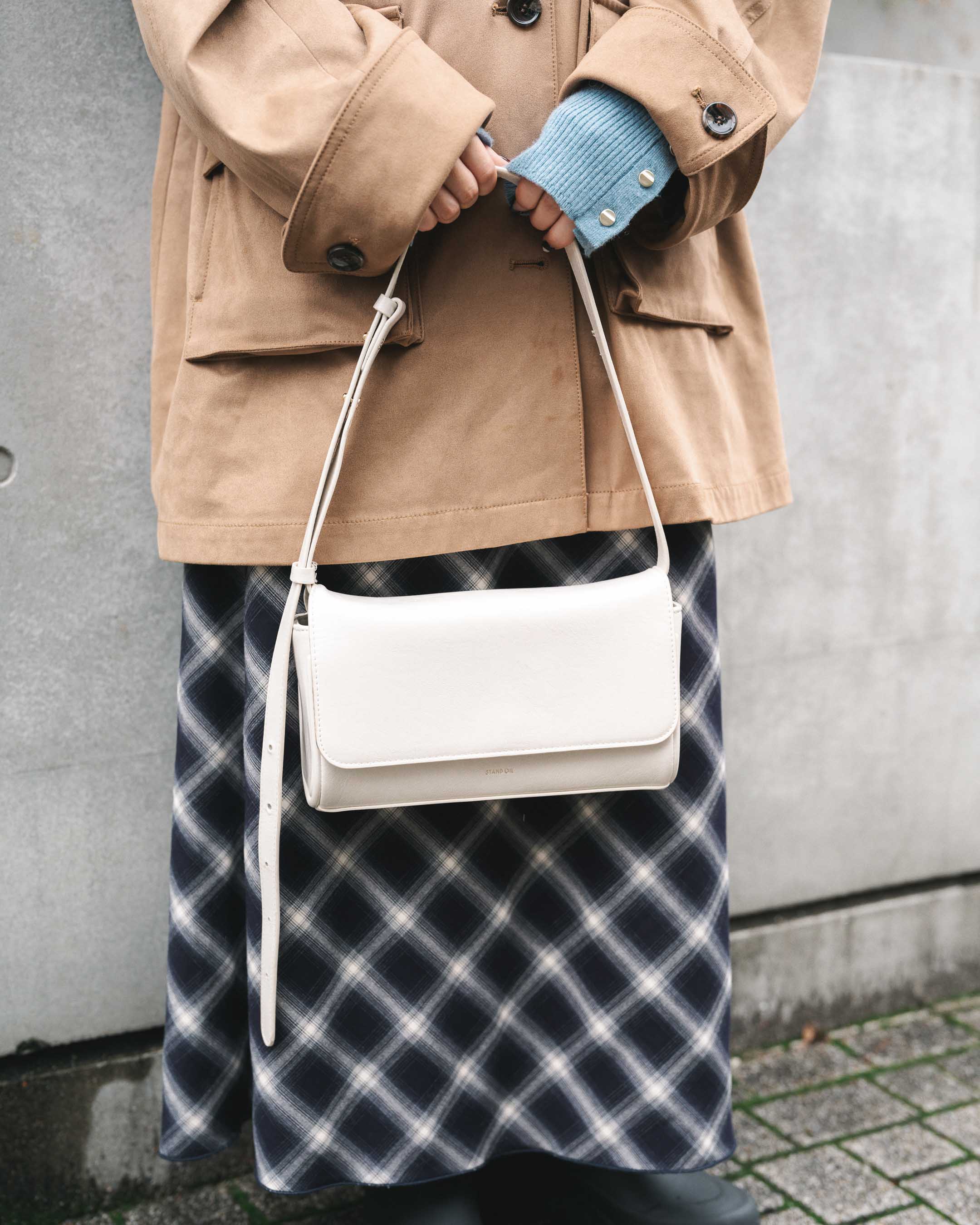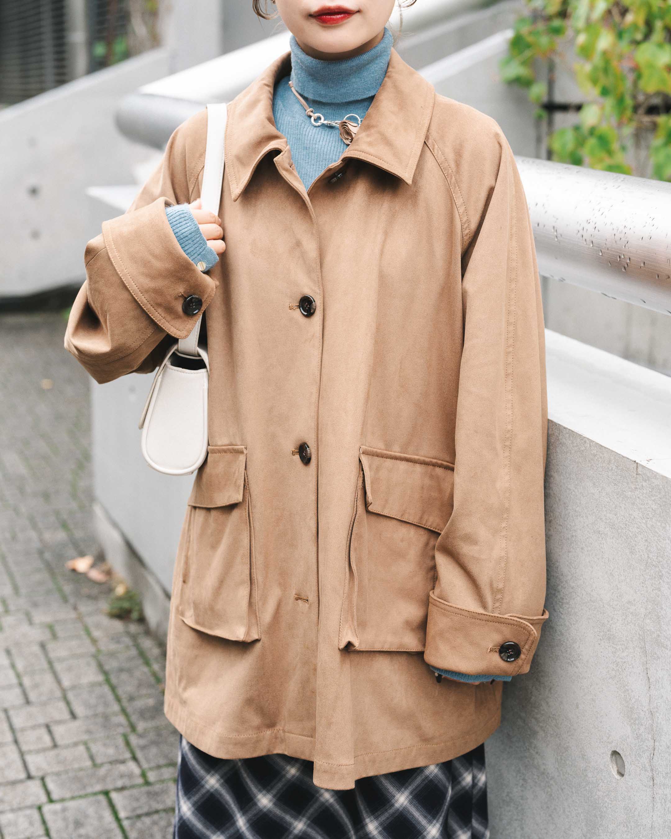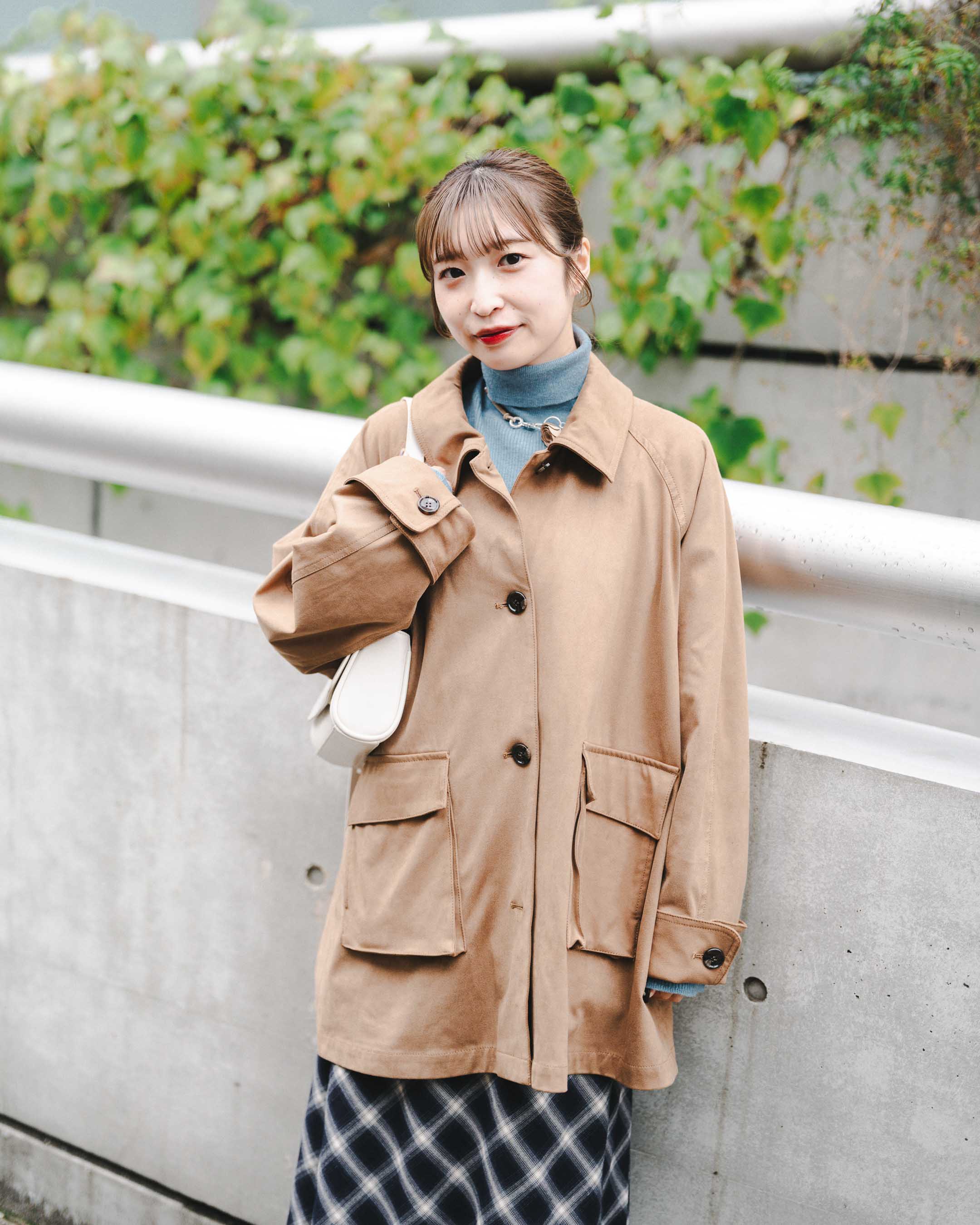 ( WORLD SNAP )ラフなホワイトコーデは、カーキの襟付きコートで大人カジュ...