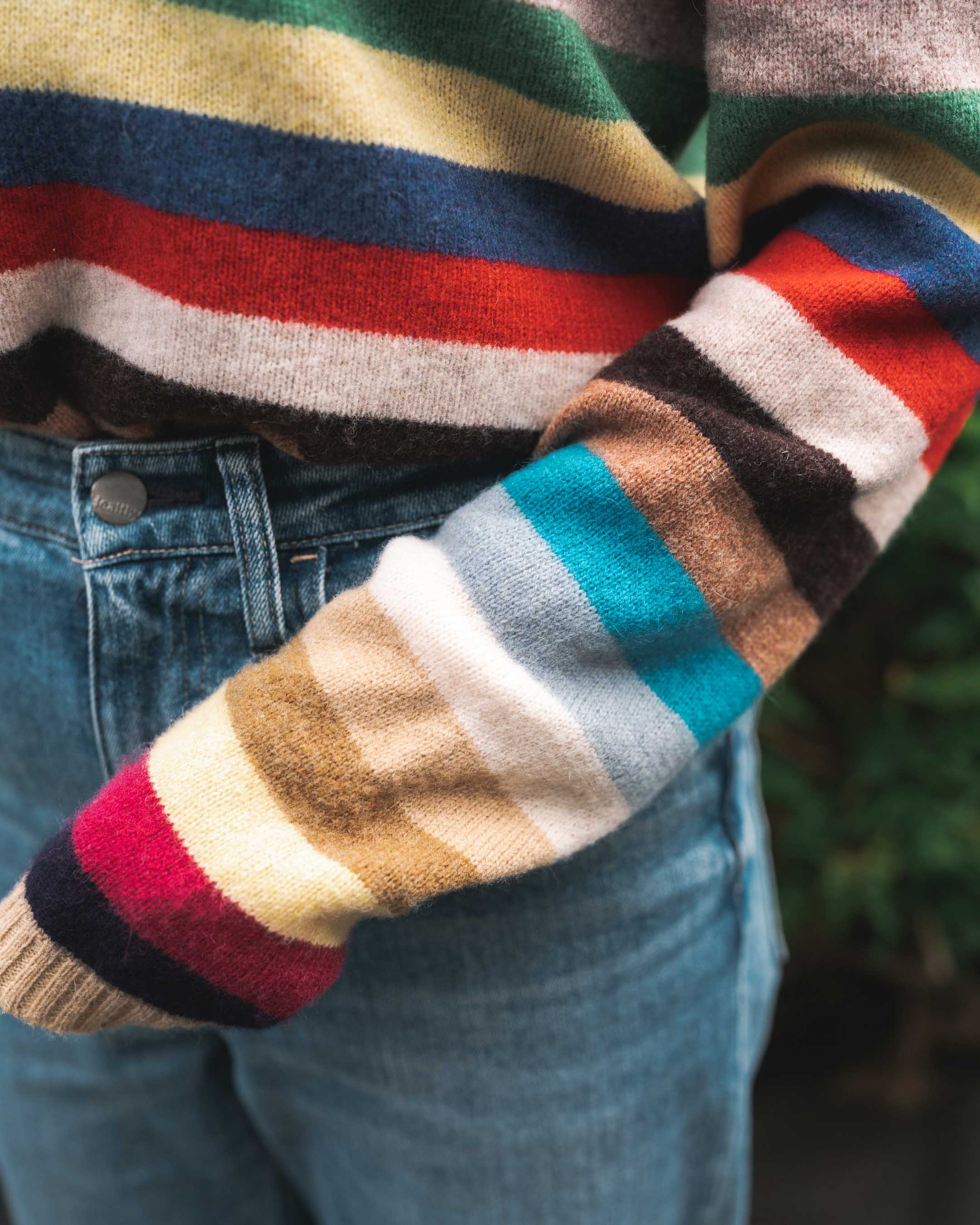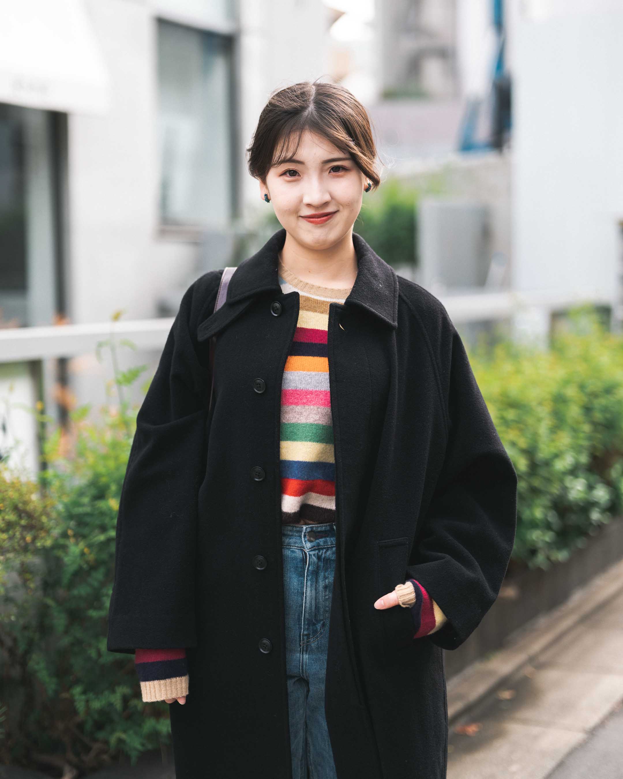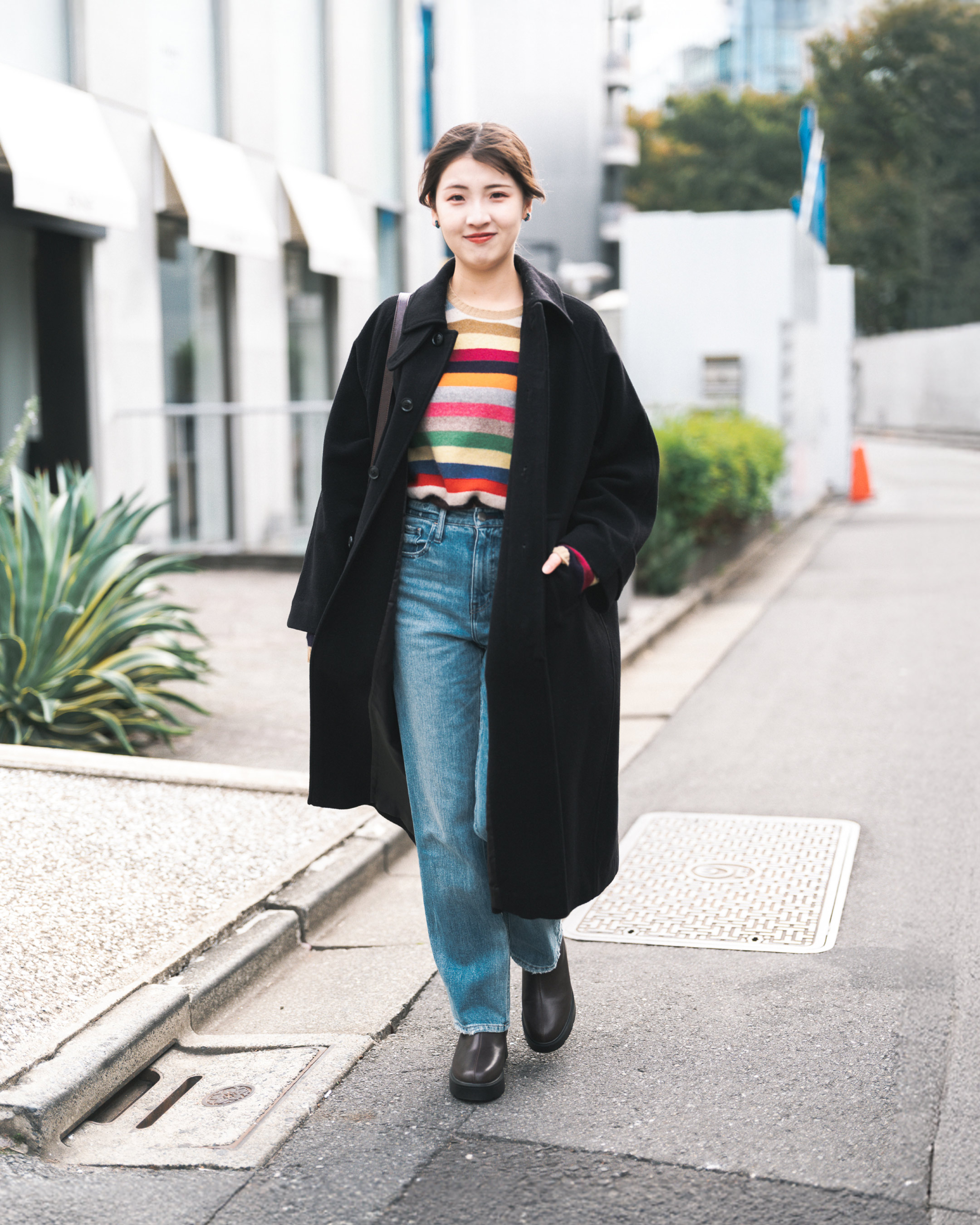 18色のカラフルなセーターが主役のあったか冬カジュアル。