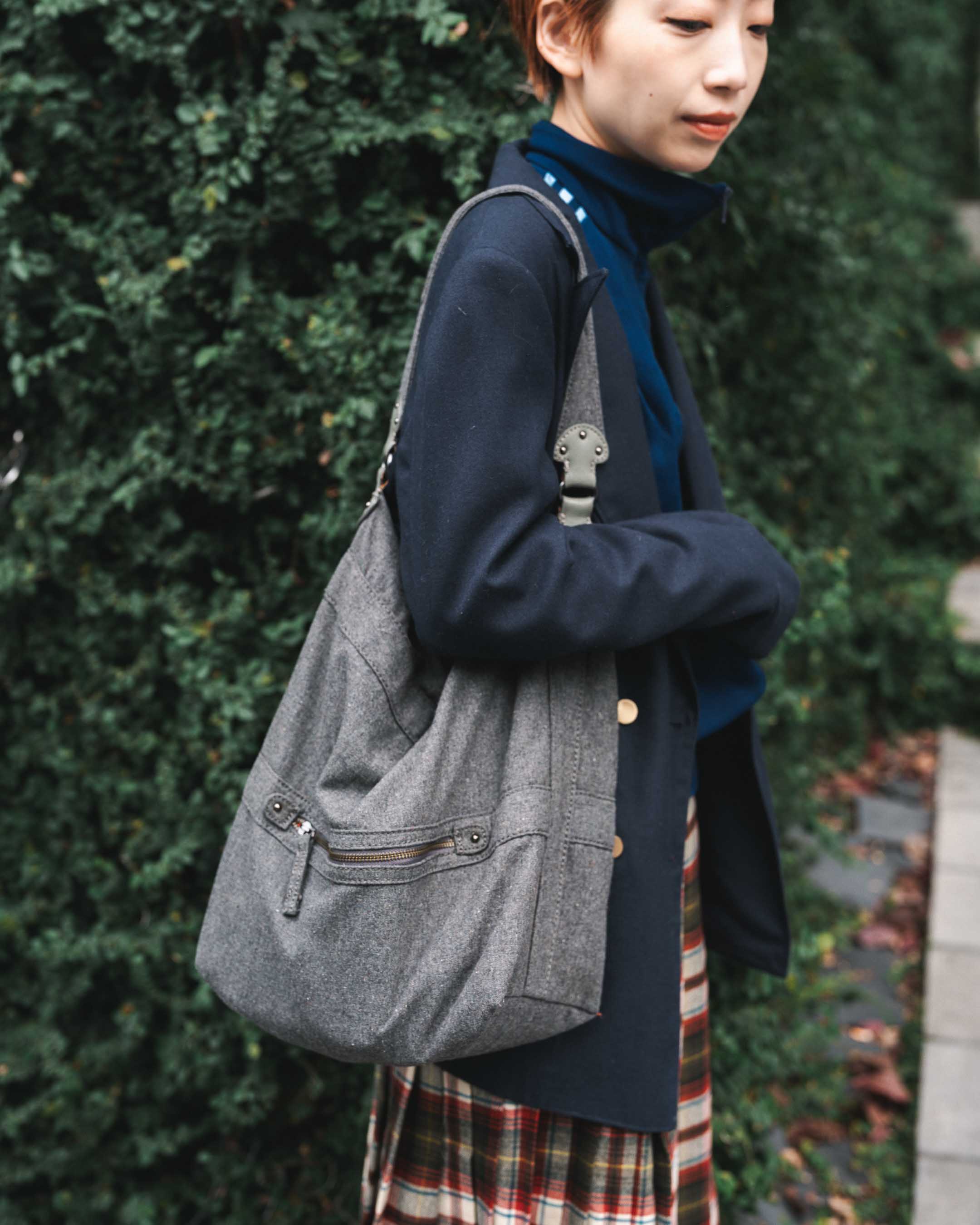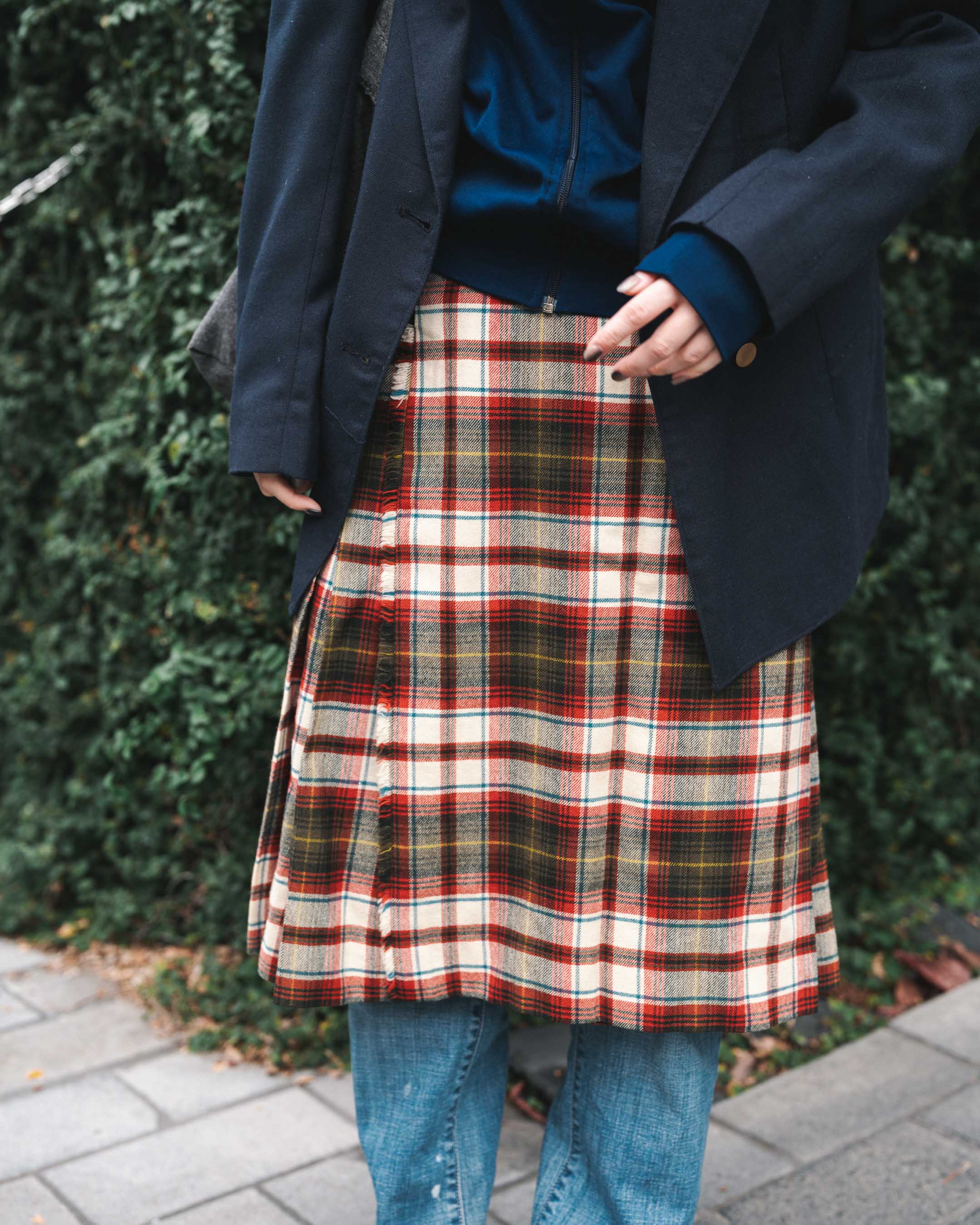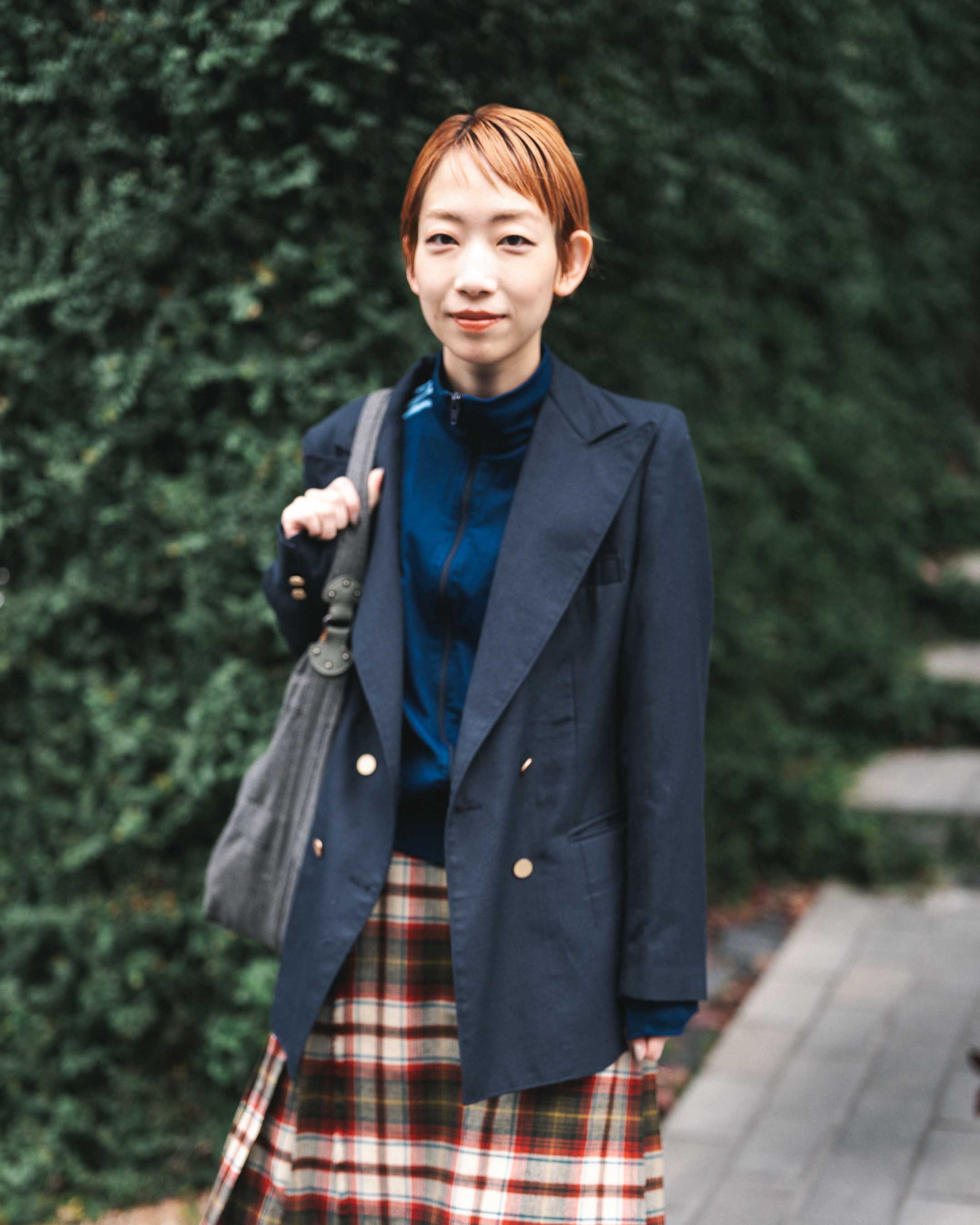 ジャージ×チェックスカートが可愛い!古着mixレイヤードコーデ。