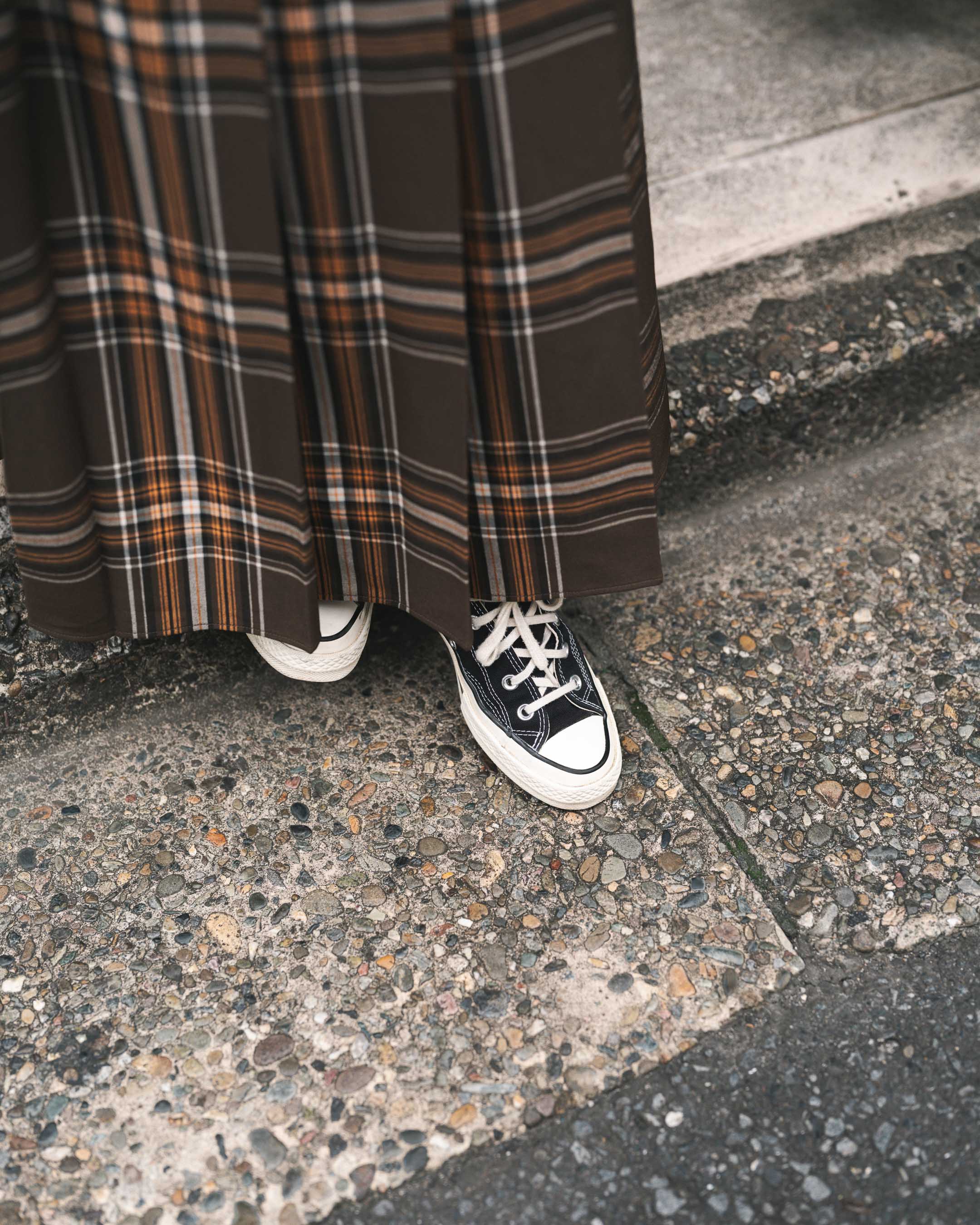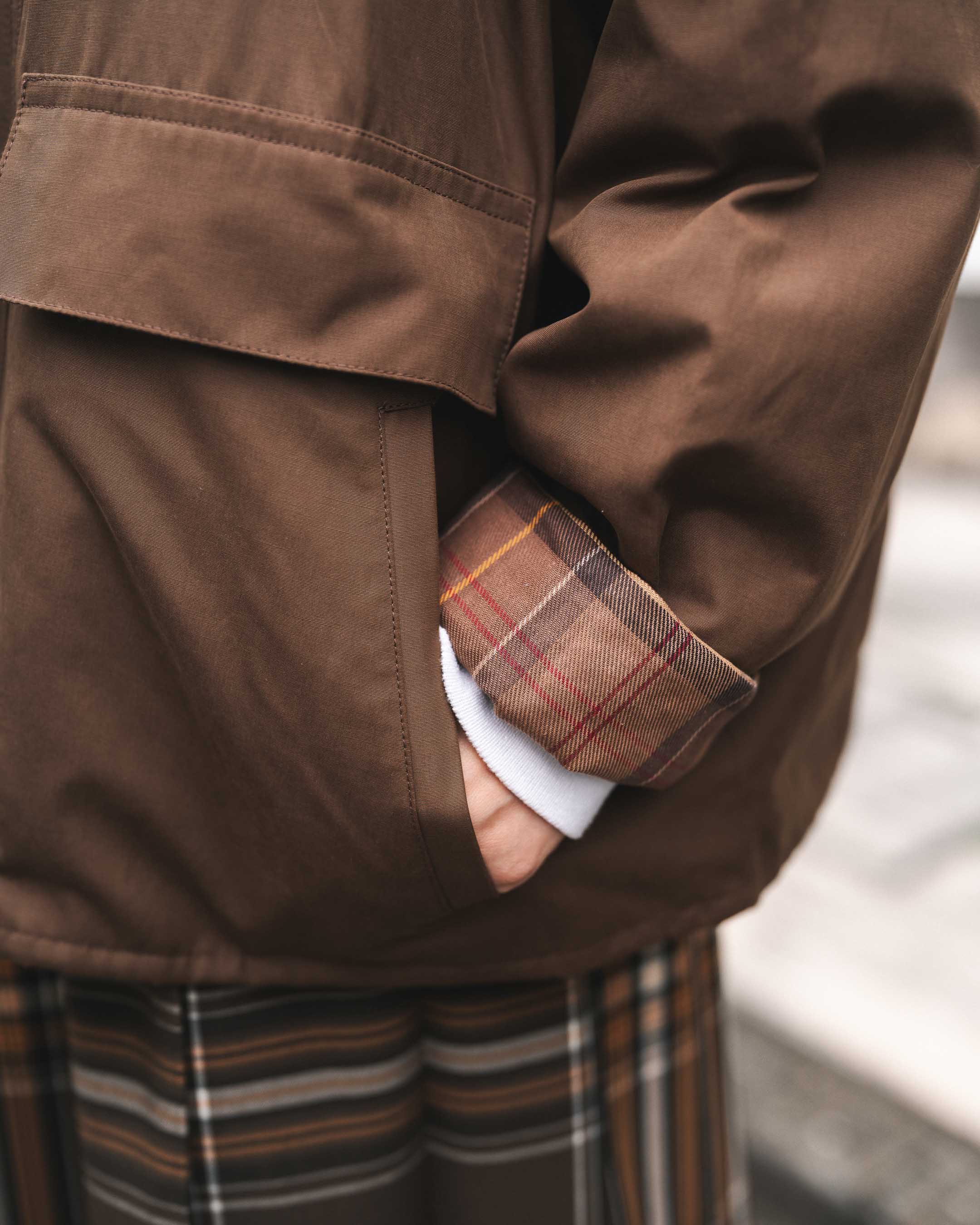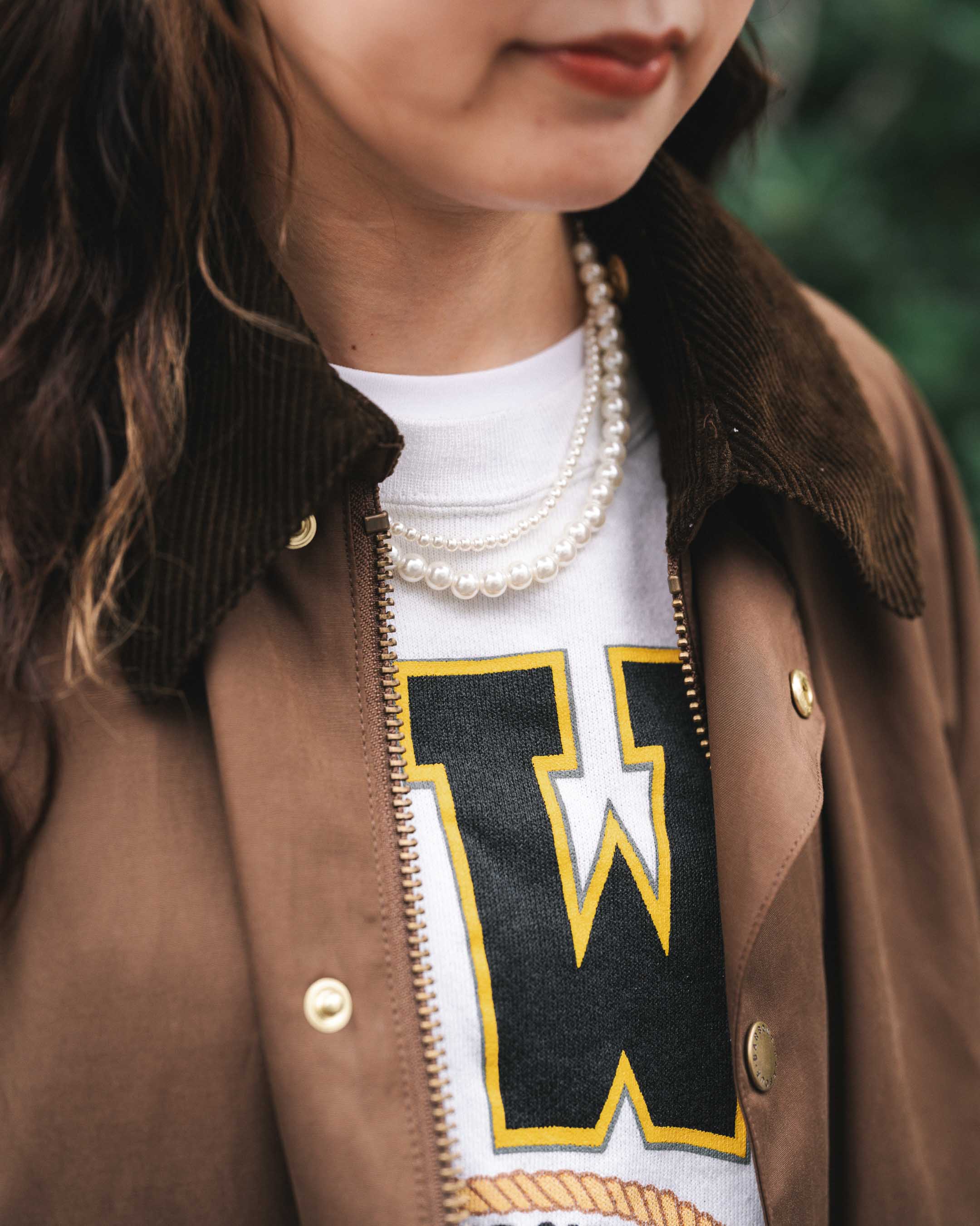 カジュアルアイテムを取り入れたブラウンカラーコーデ。
