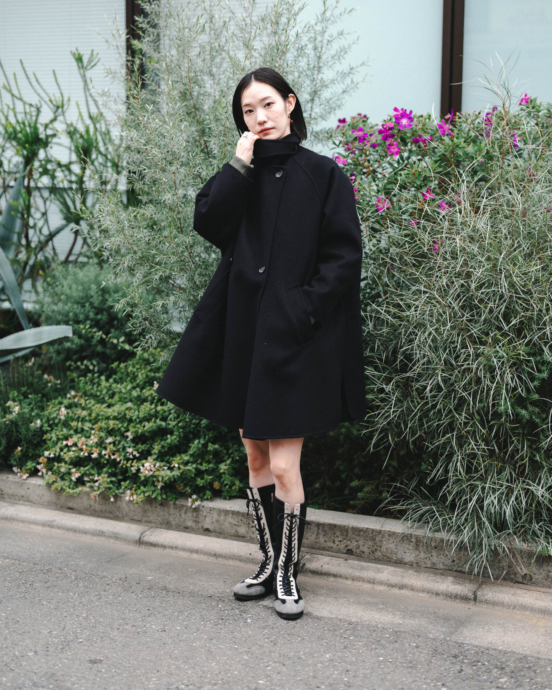 ブラックでまとめたレディーなコーデはレースアップのモノトーンブーツがポイント♪