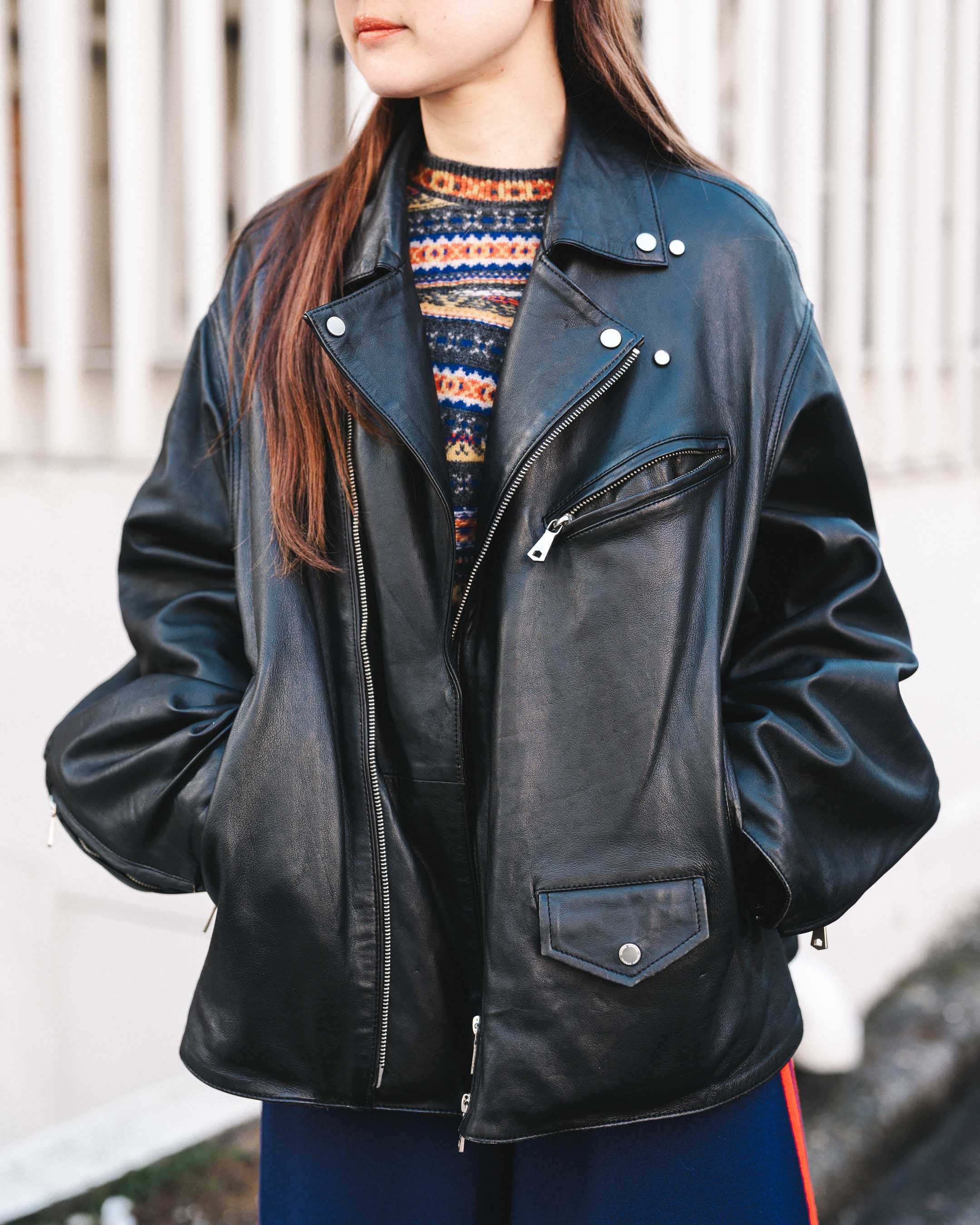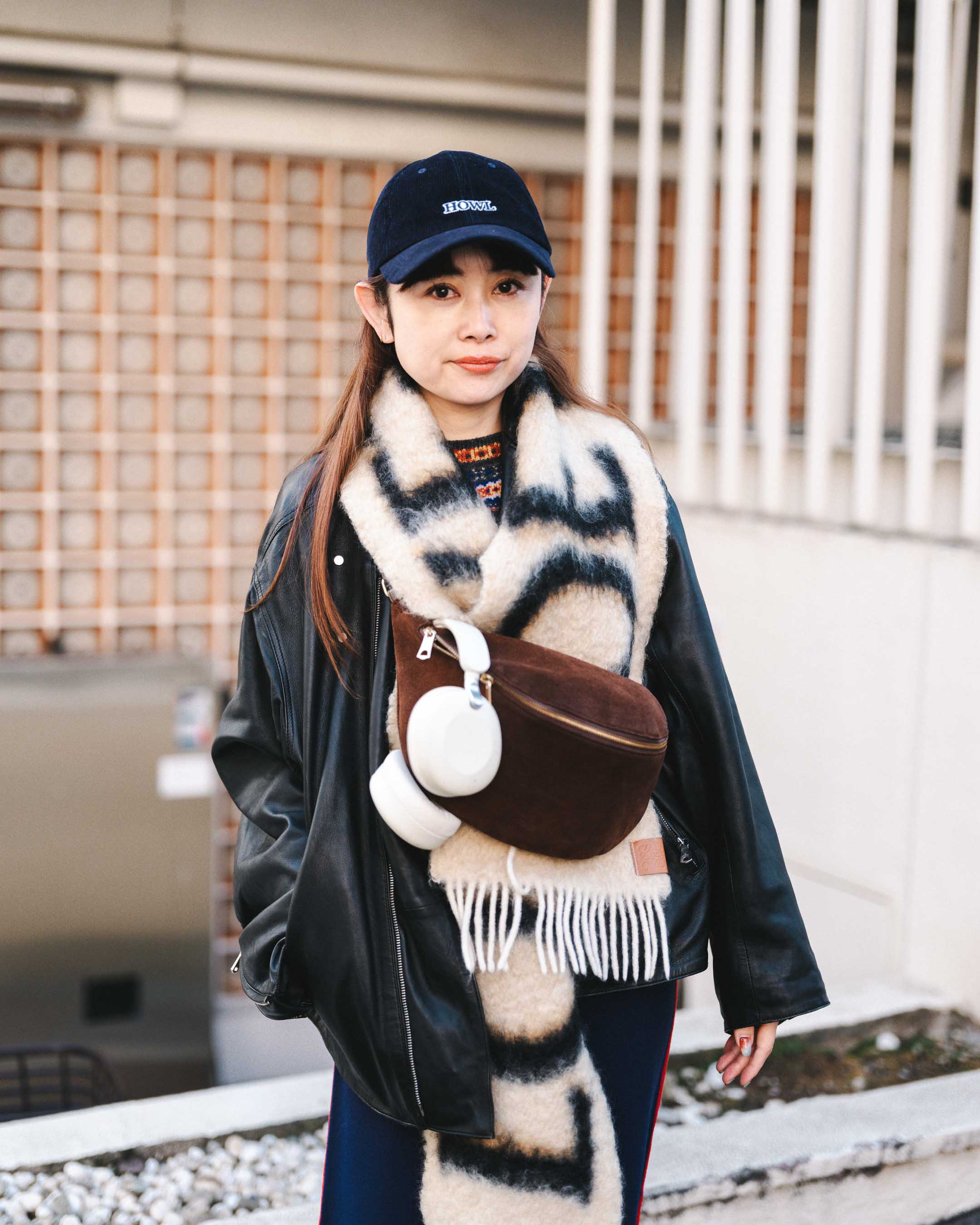 おおきめロゴマフラーがインパクト大のスポーツmix冬コーデ!