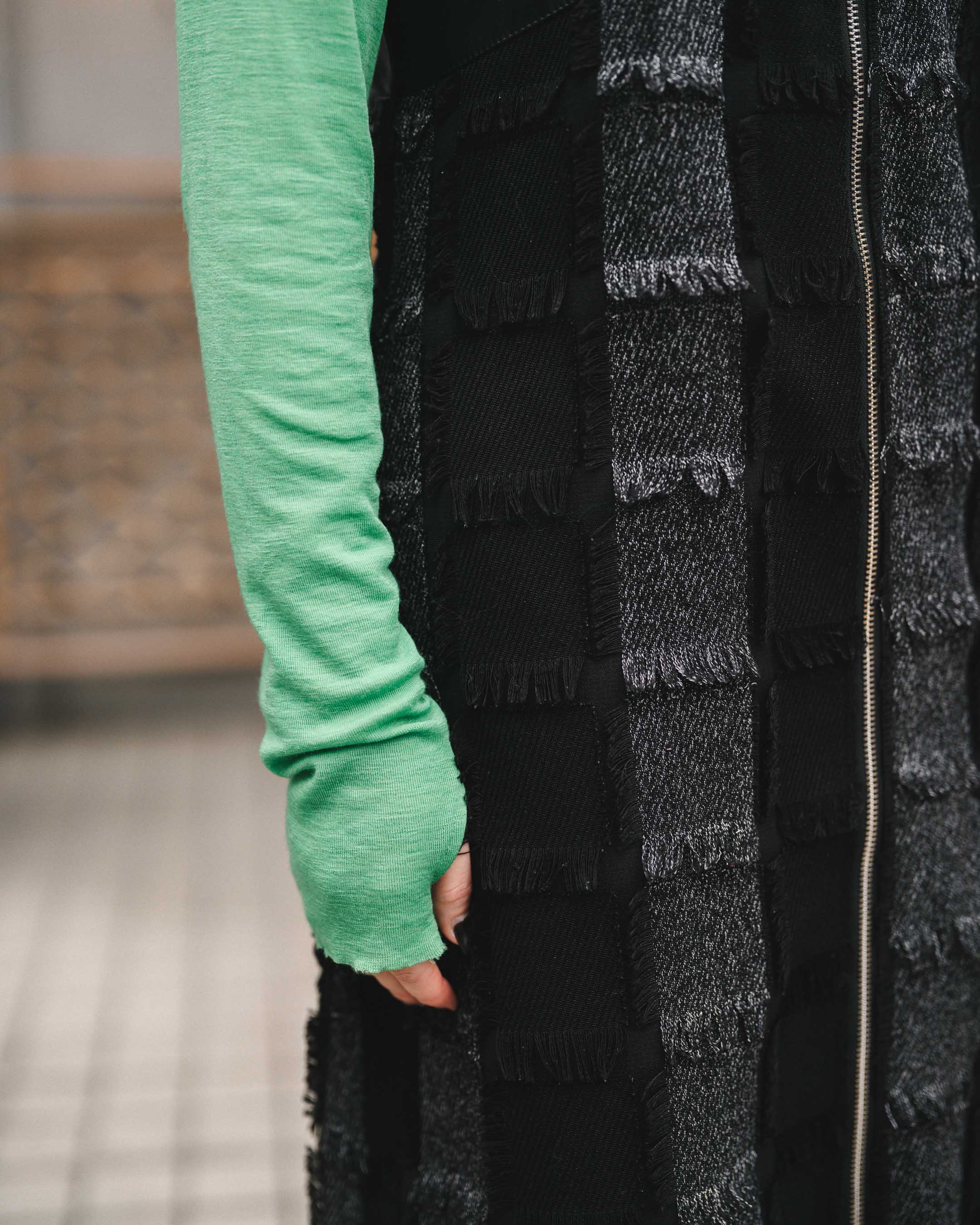 バイカラーのニットワンピが大人カワイイ!グリーンのニットで明るさも。