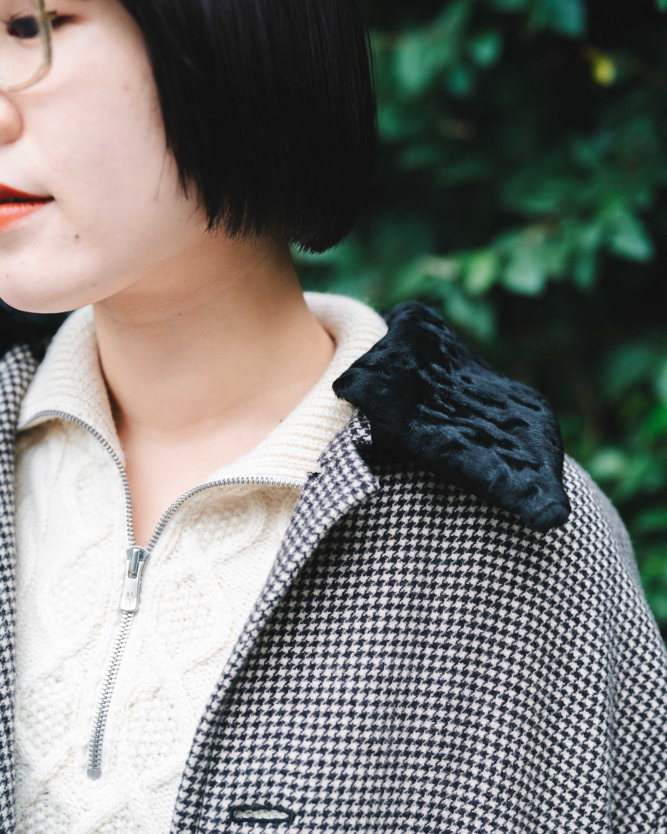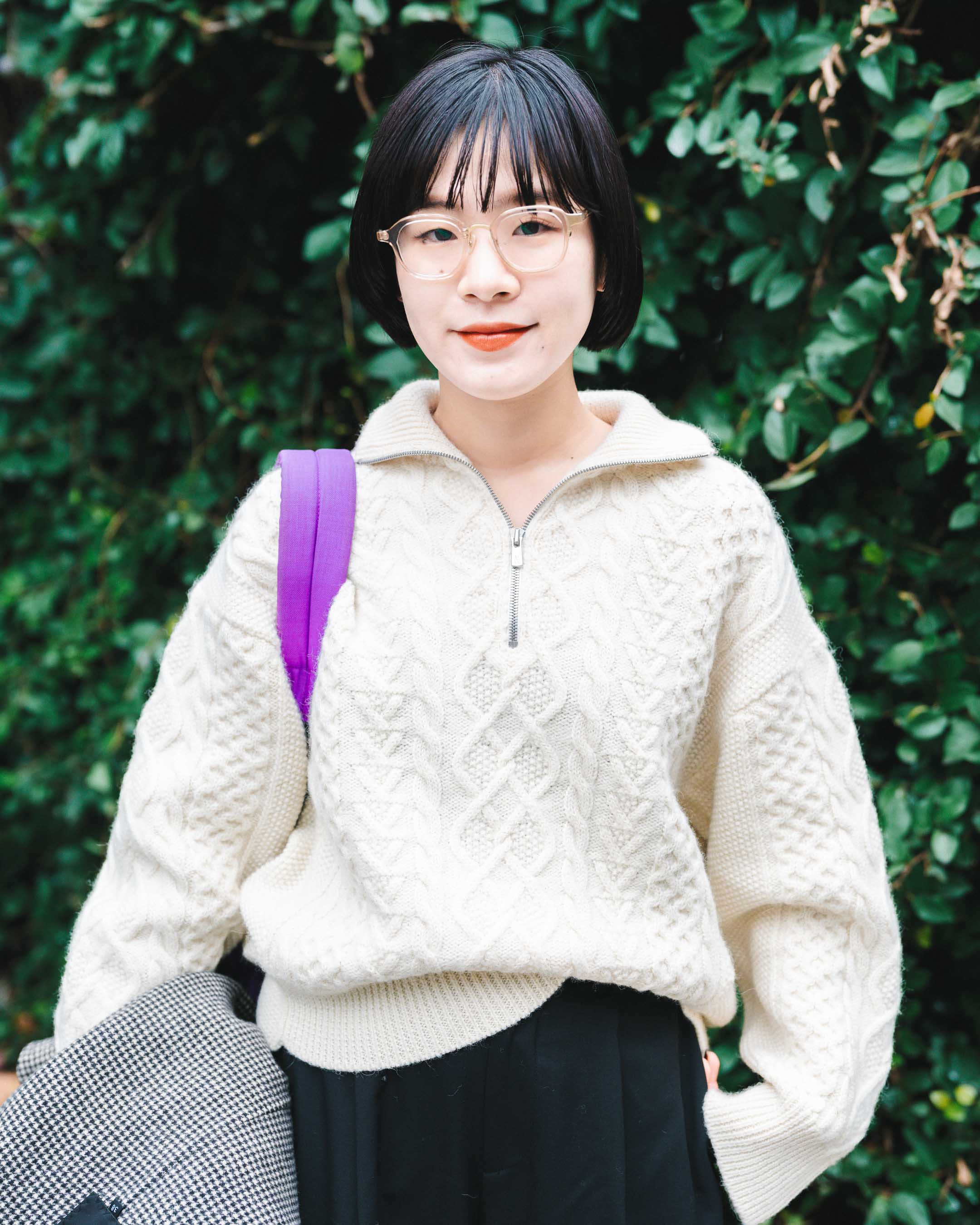 ハーフジップニットをメインに、カジュアルなアイテムと少しレディーなアイテムをミックスして。