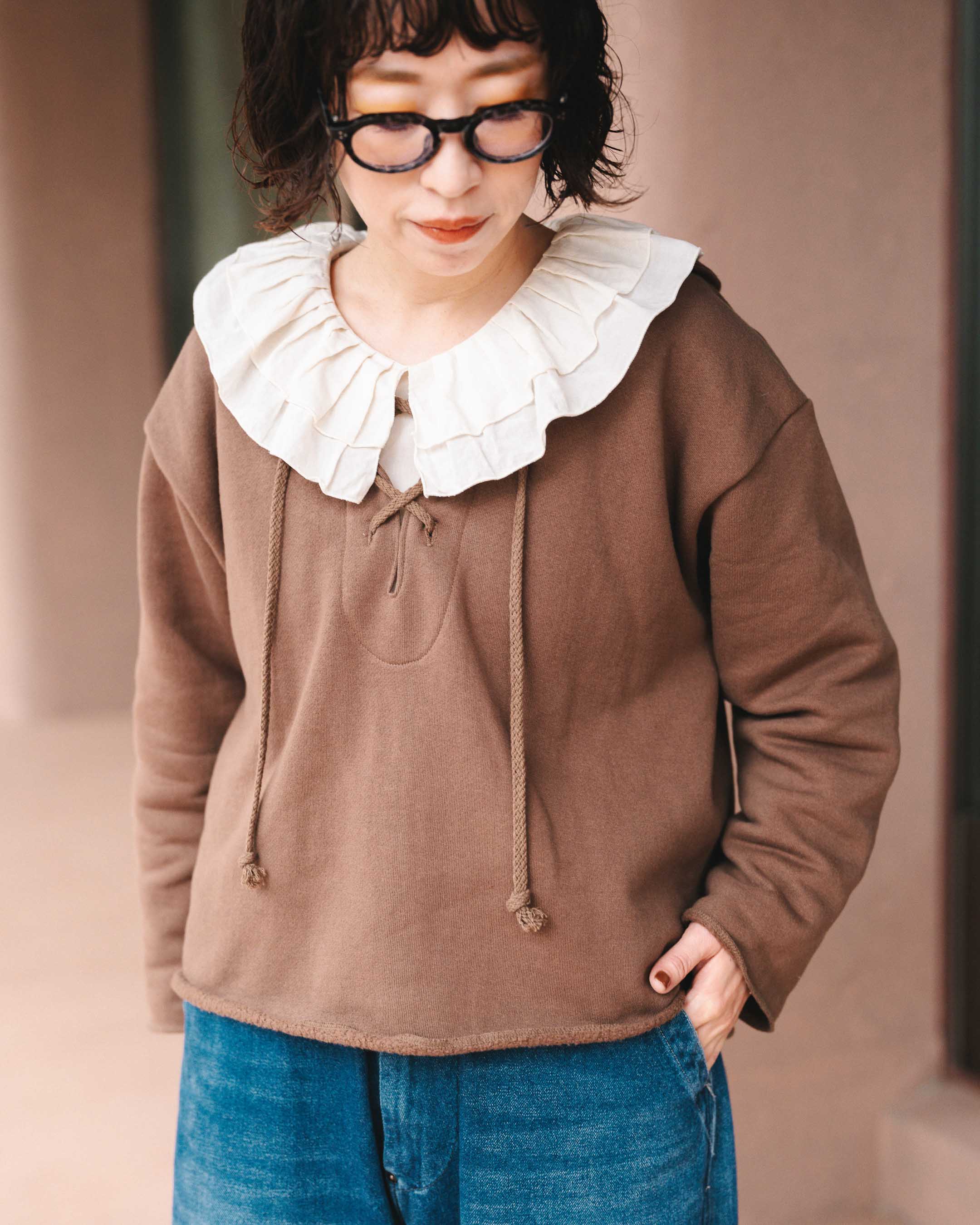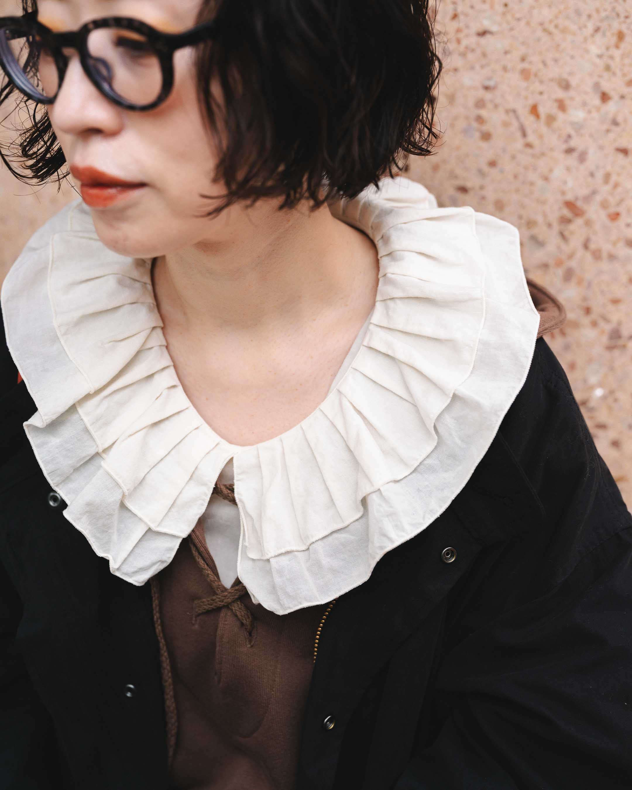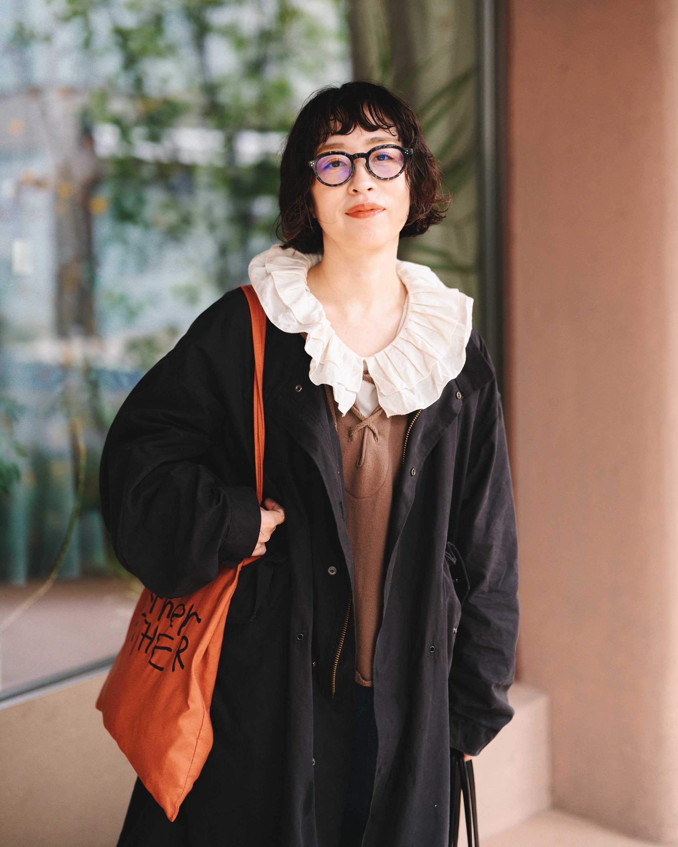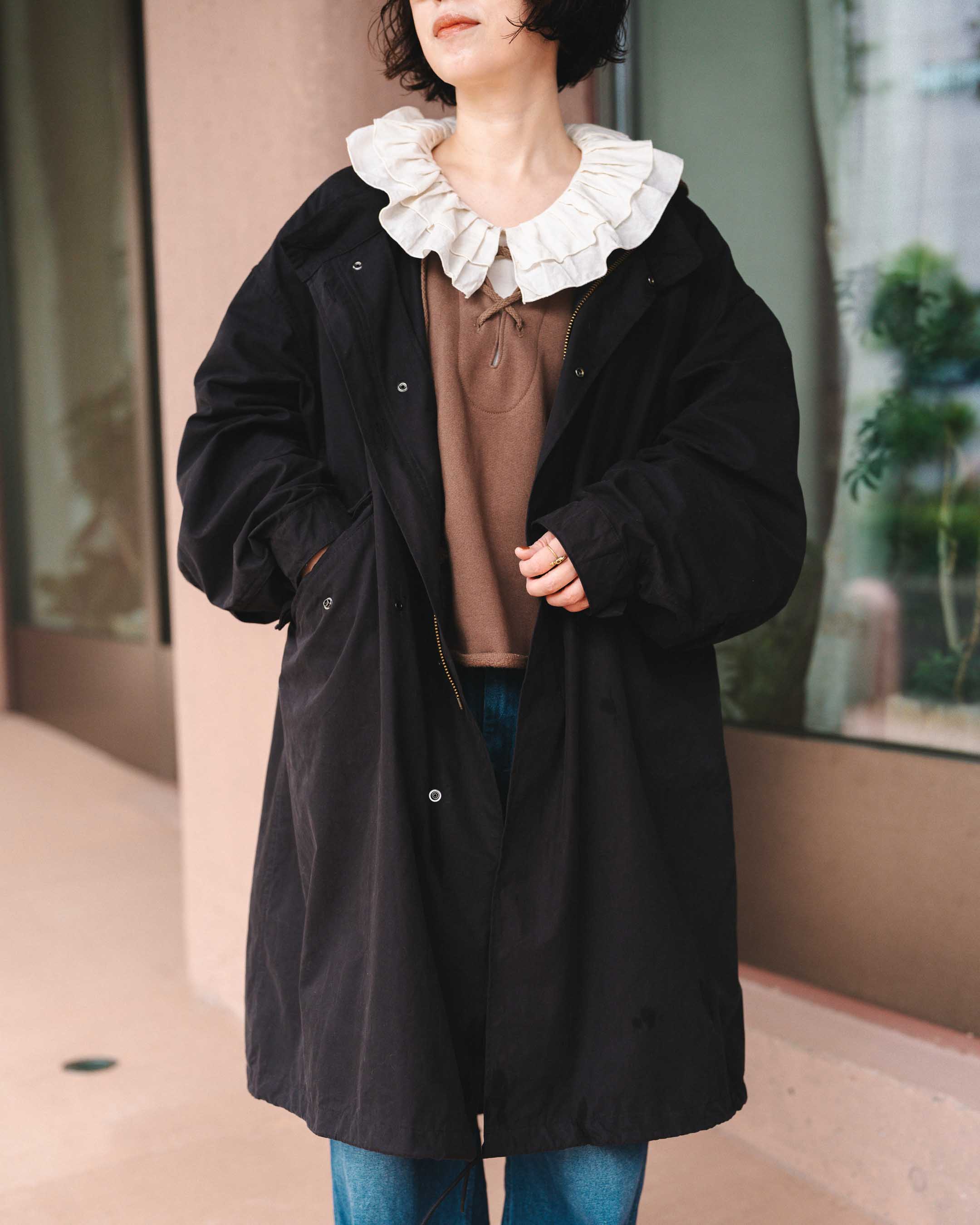 フリル襟で甘さを出した大人ナチュラルミリタリーコーデ!