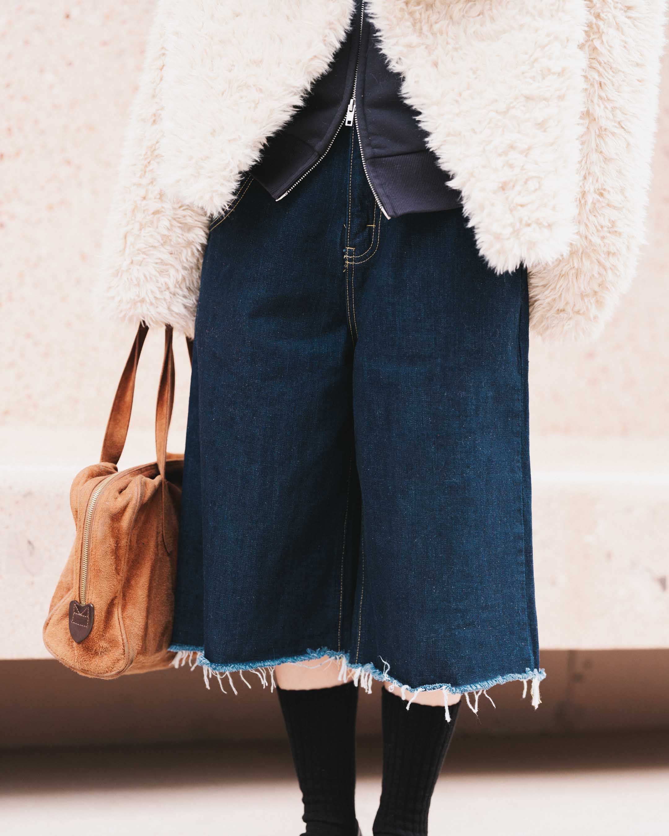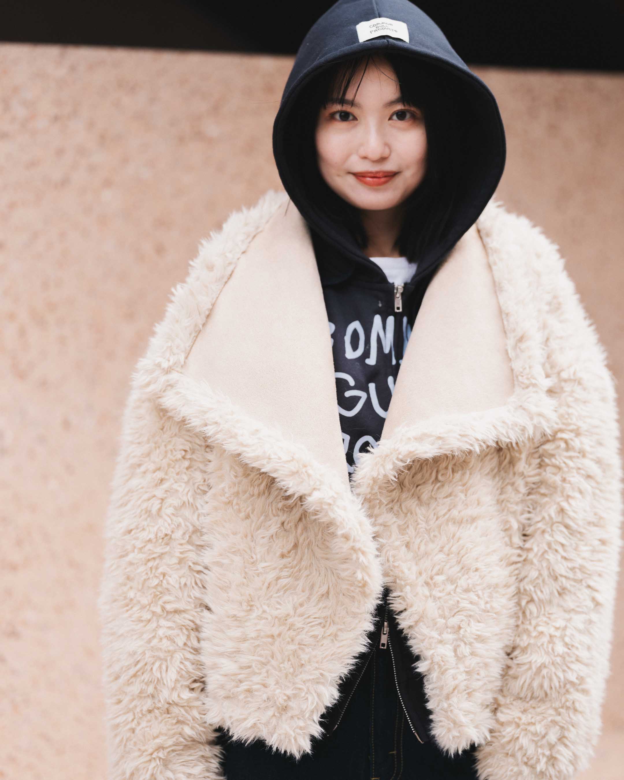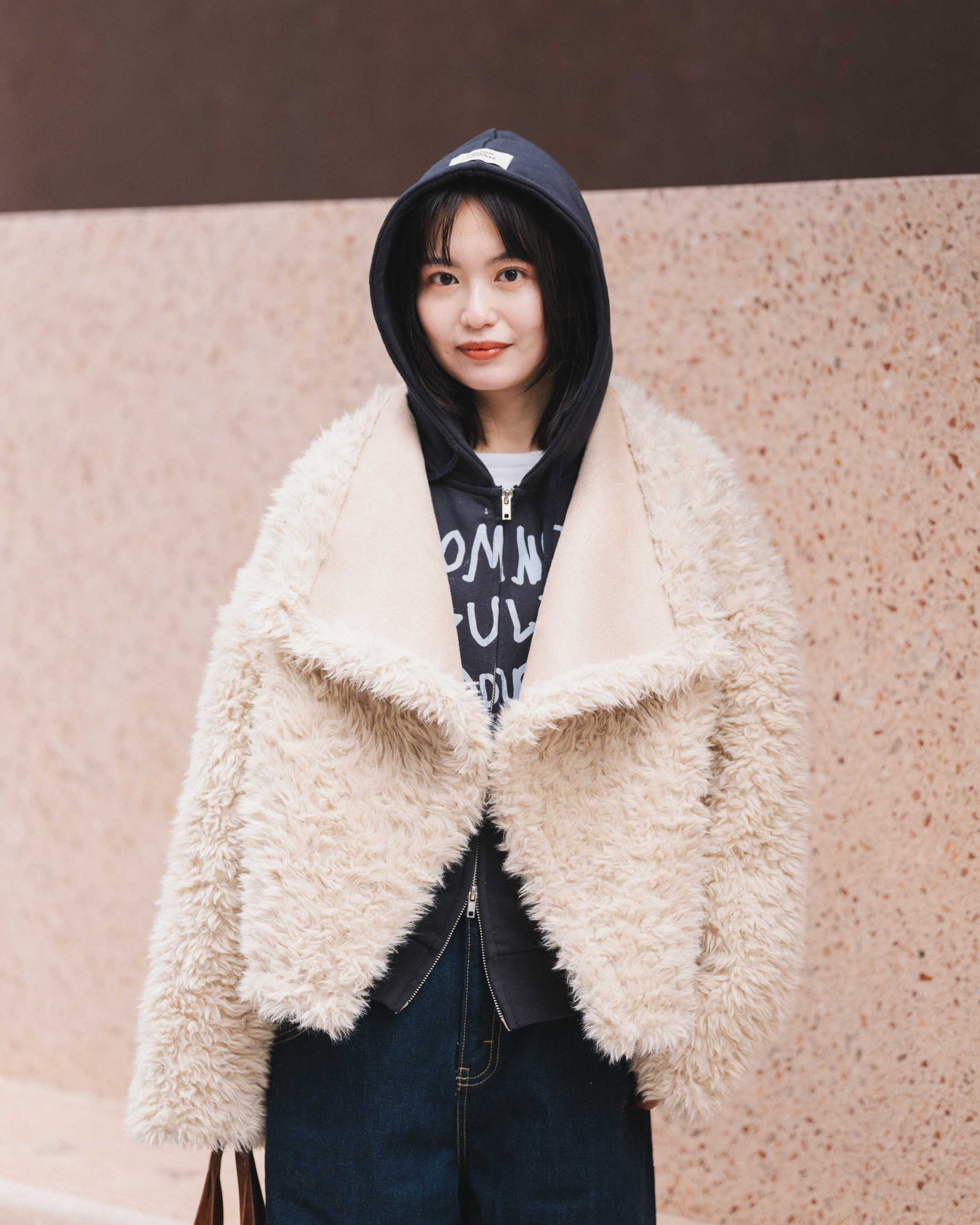 カジュアルに、でもカッコよく。ファーで柔らかさもプラスして。