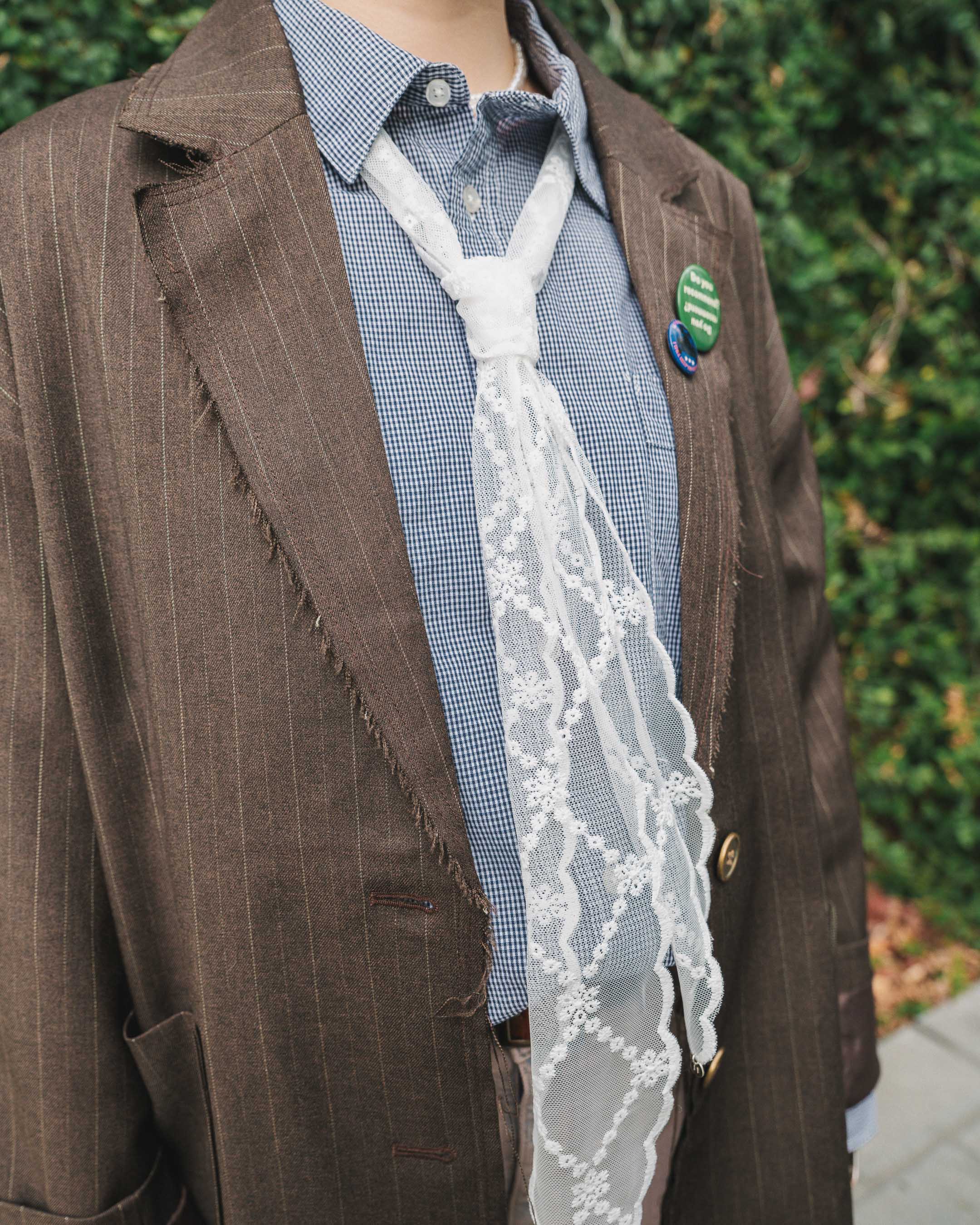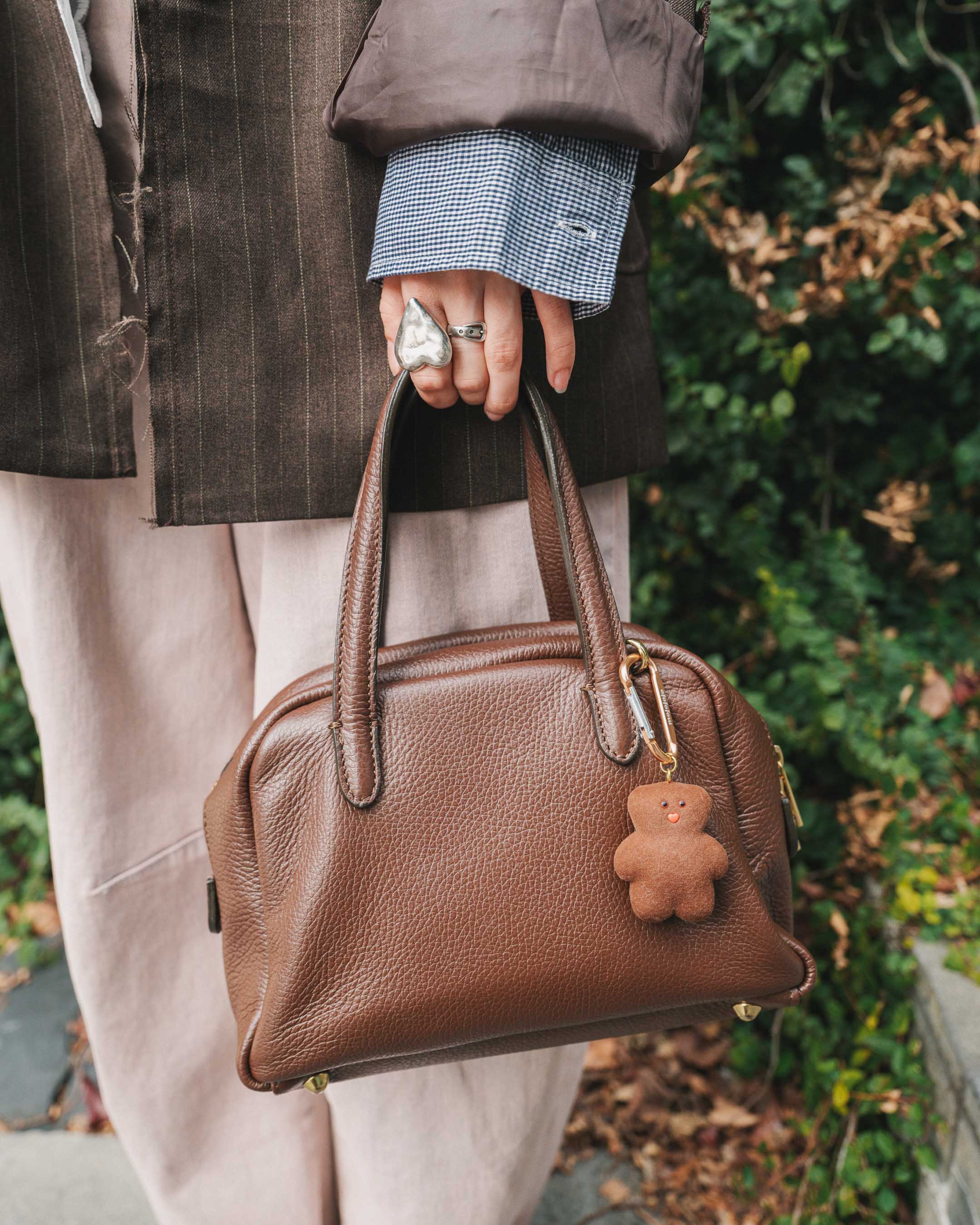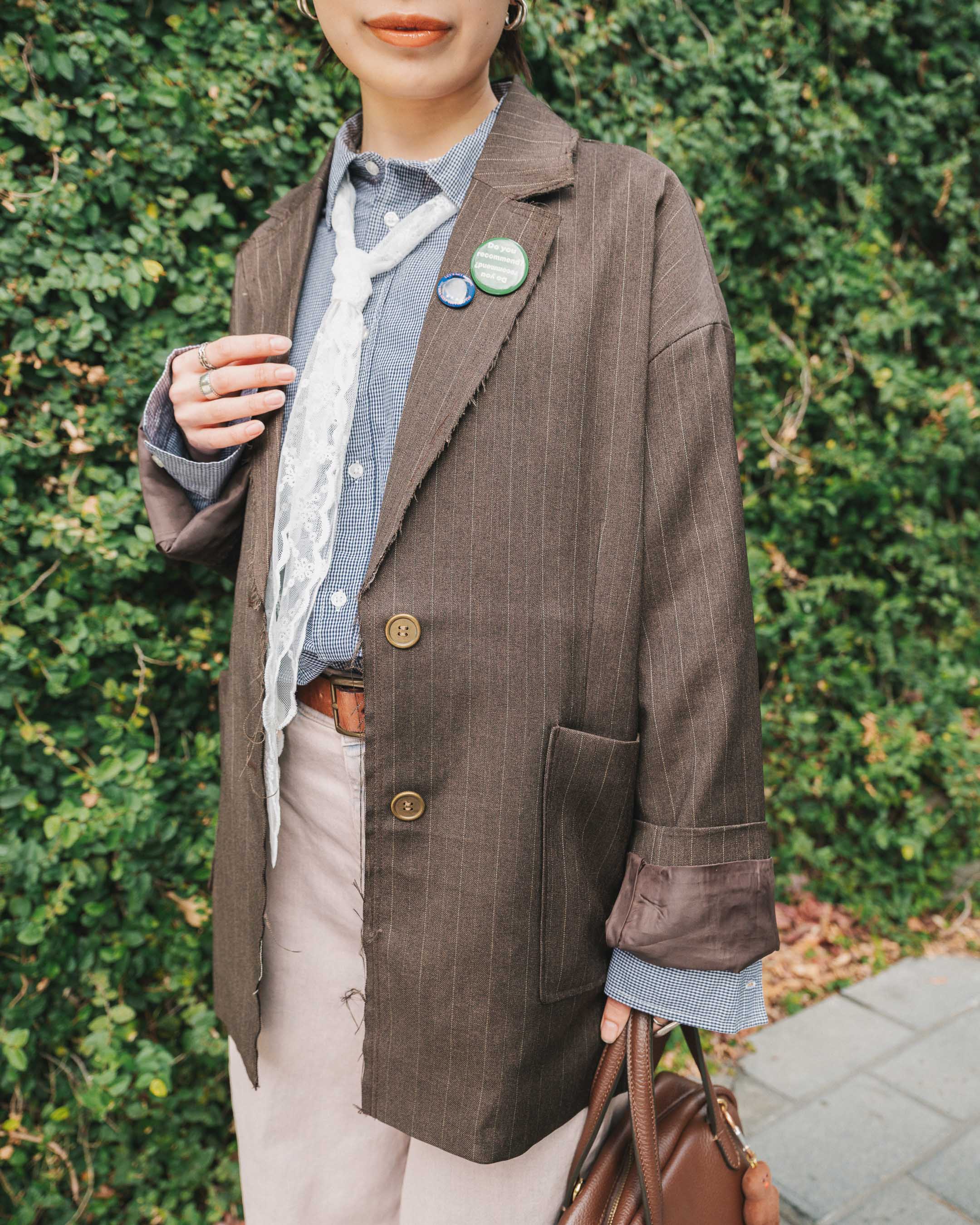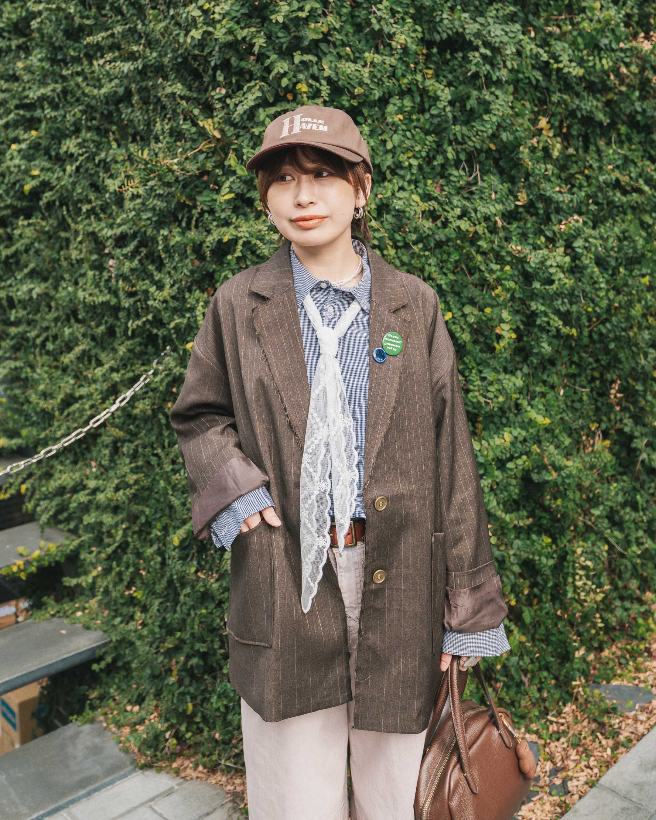 春らしくブラウンやピンクを取り入れて。遊び心のあるアイテムをON