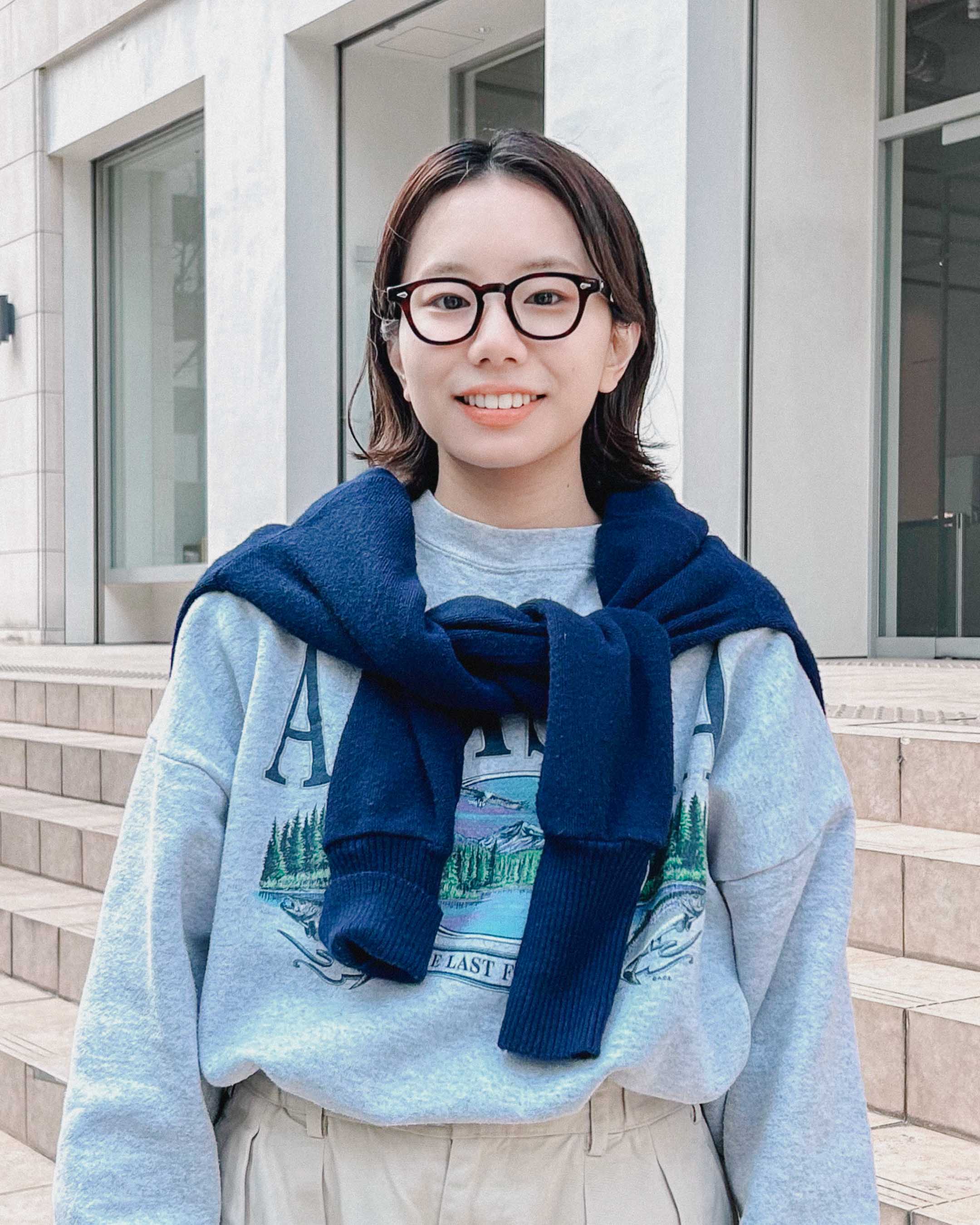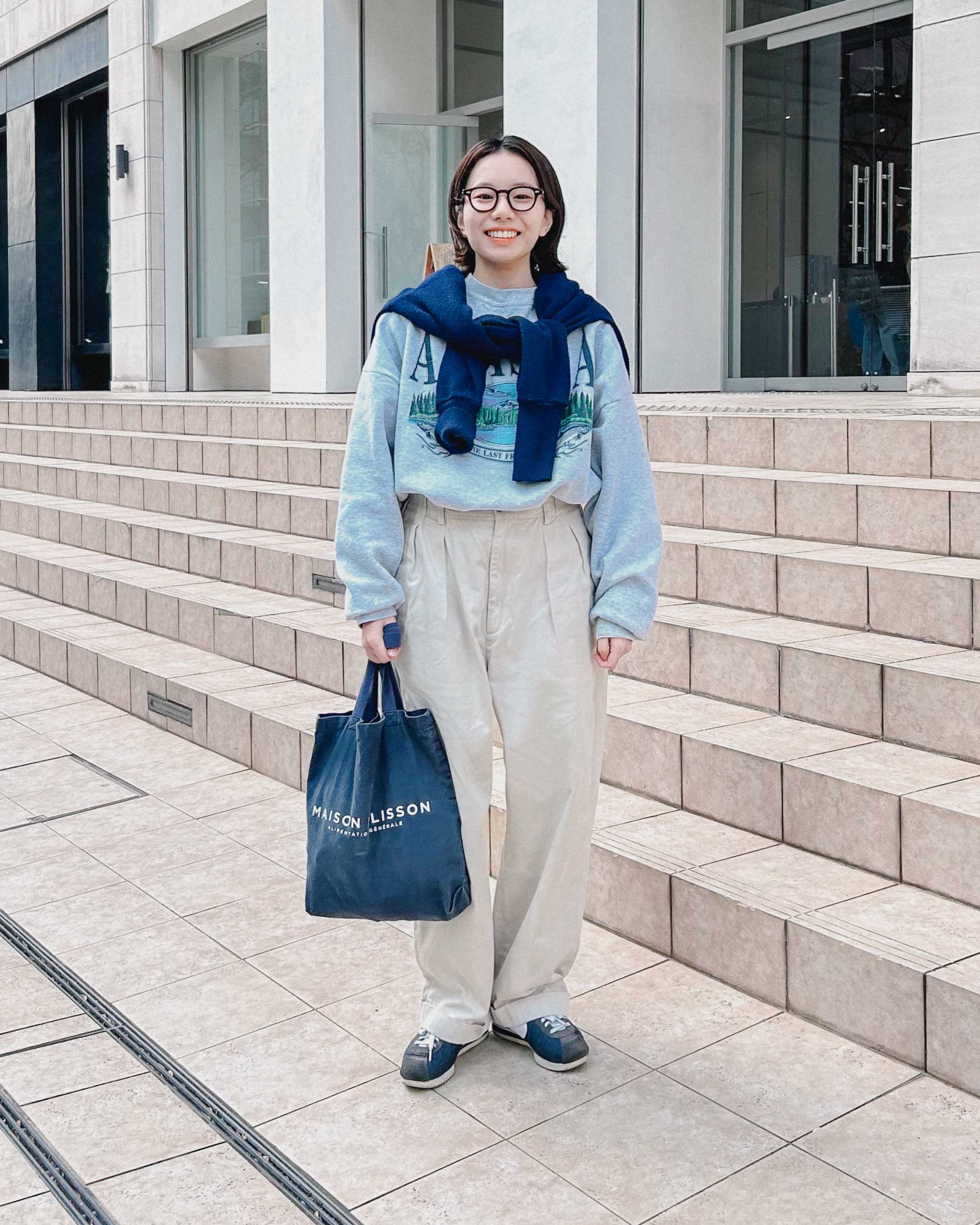 ネイビーをメインカラーにアイテムを合わせて、春を先取りした雰囲気のアイビールック。