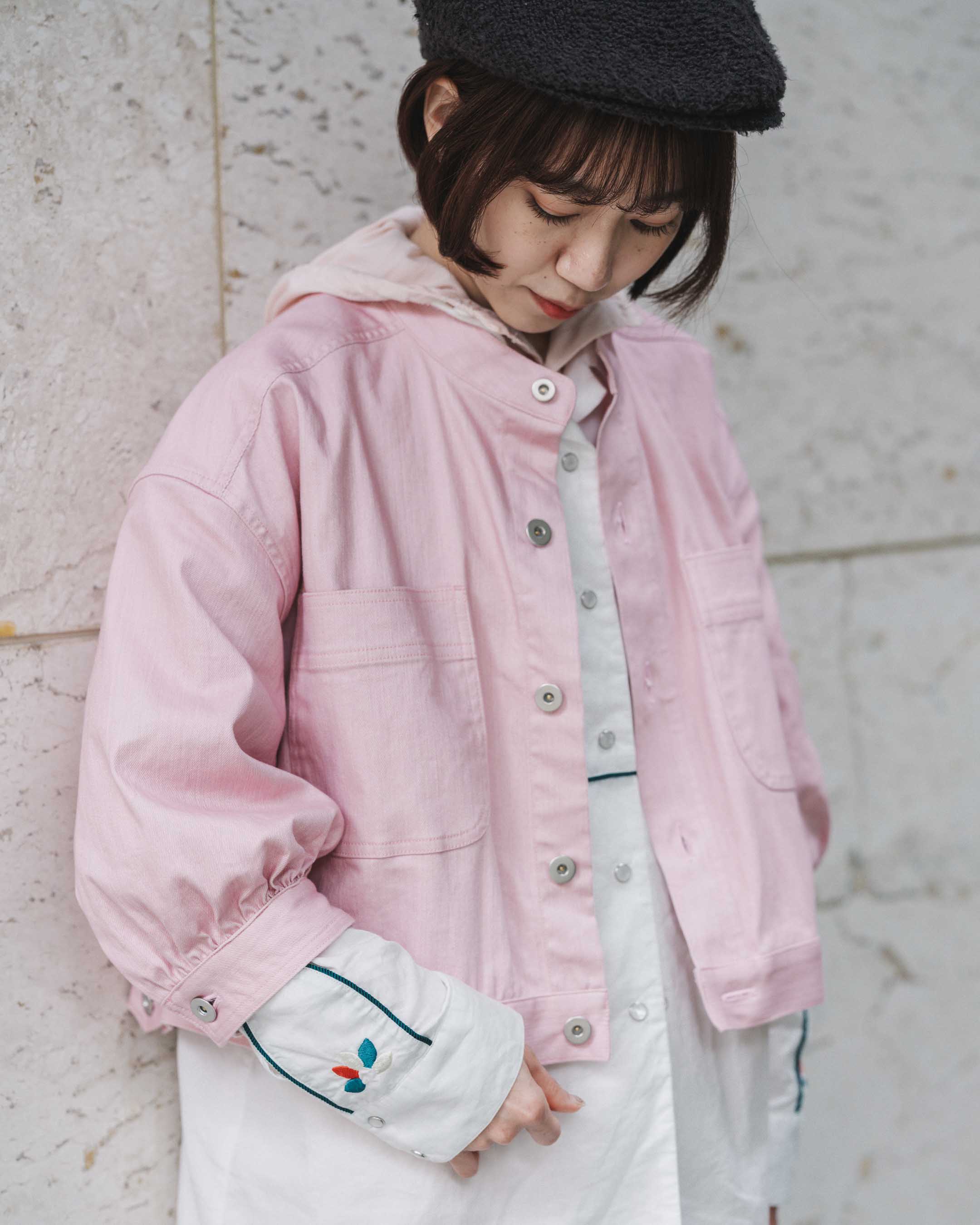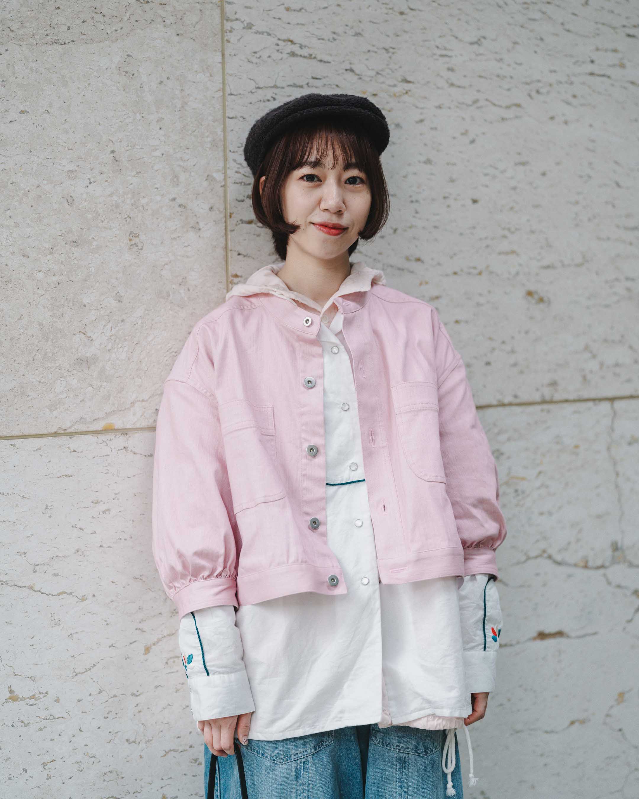 春らしいピンクのジャケットと、だぼっとがかわいいデニム!