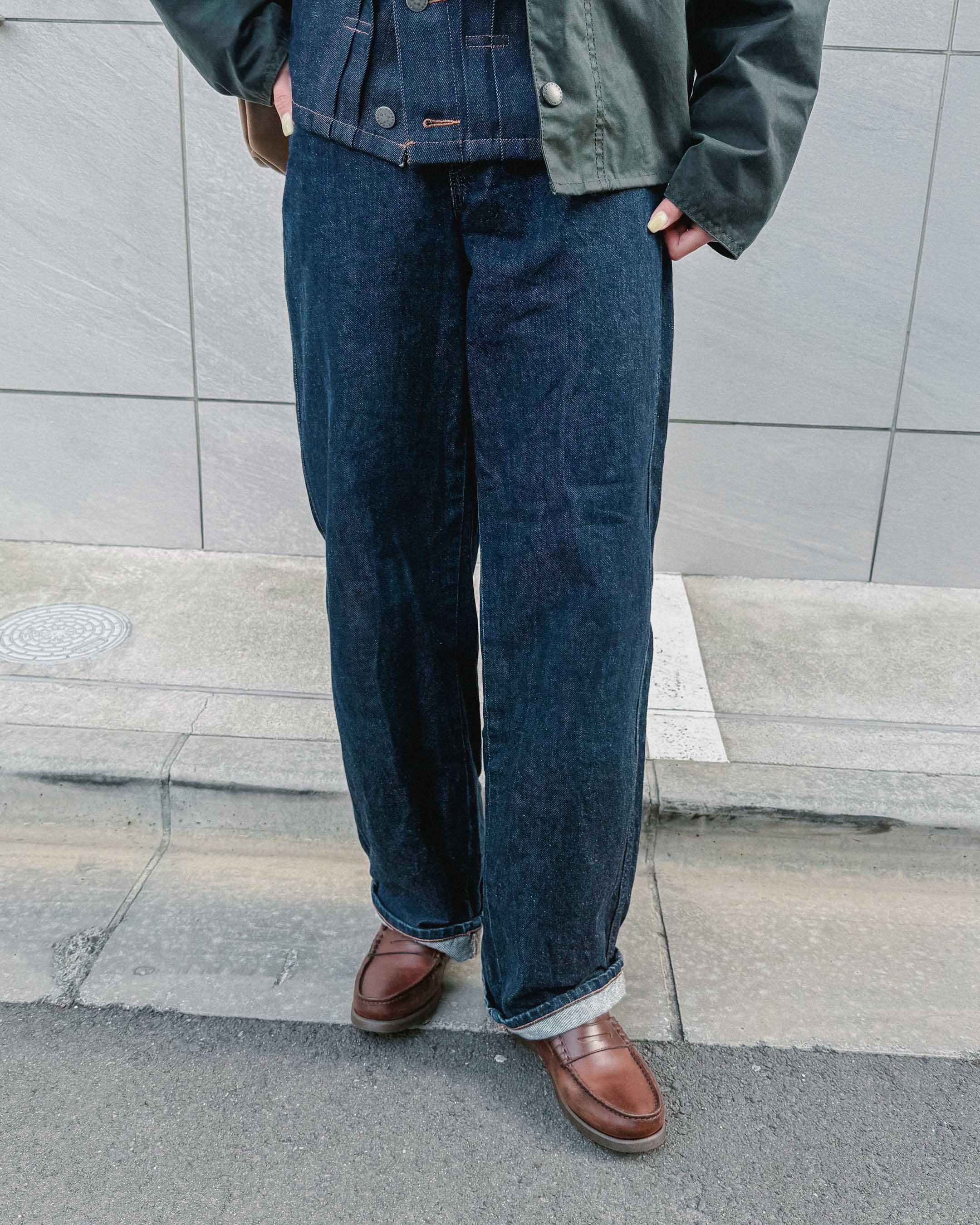 シンプルアイテムコーデは、デニム×デニムとアウターのレイヤードで遊ぶ。
