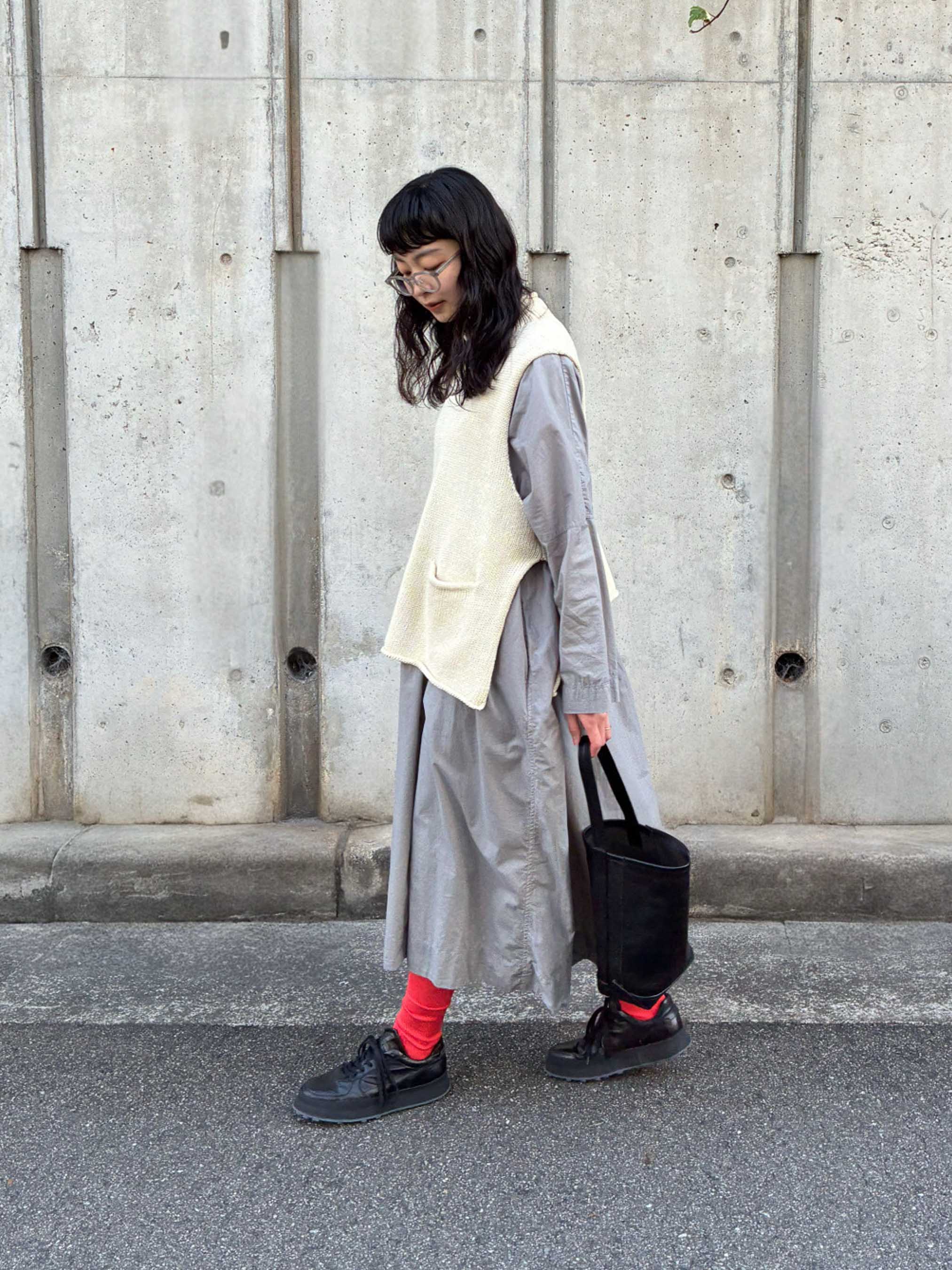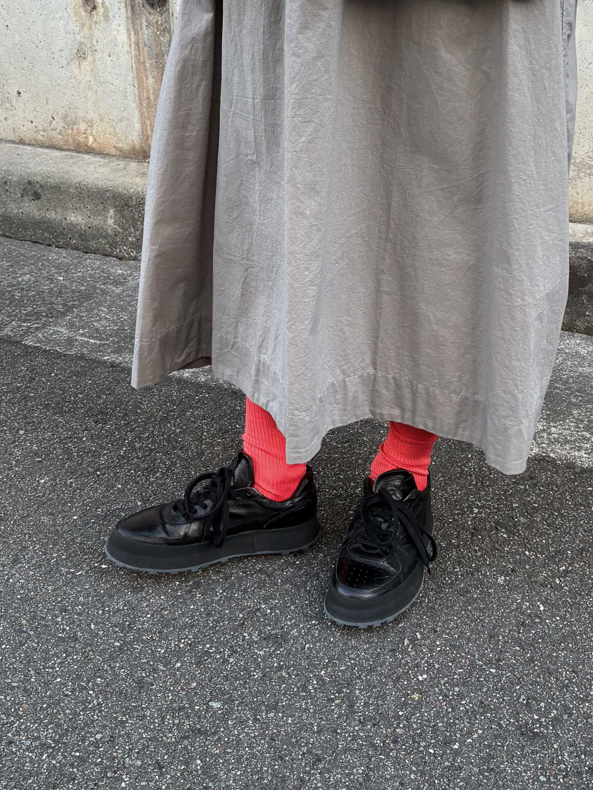 ナチュラル感のあるコーデは靴下のカラーをチラ見せして遊び心を。